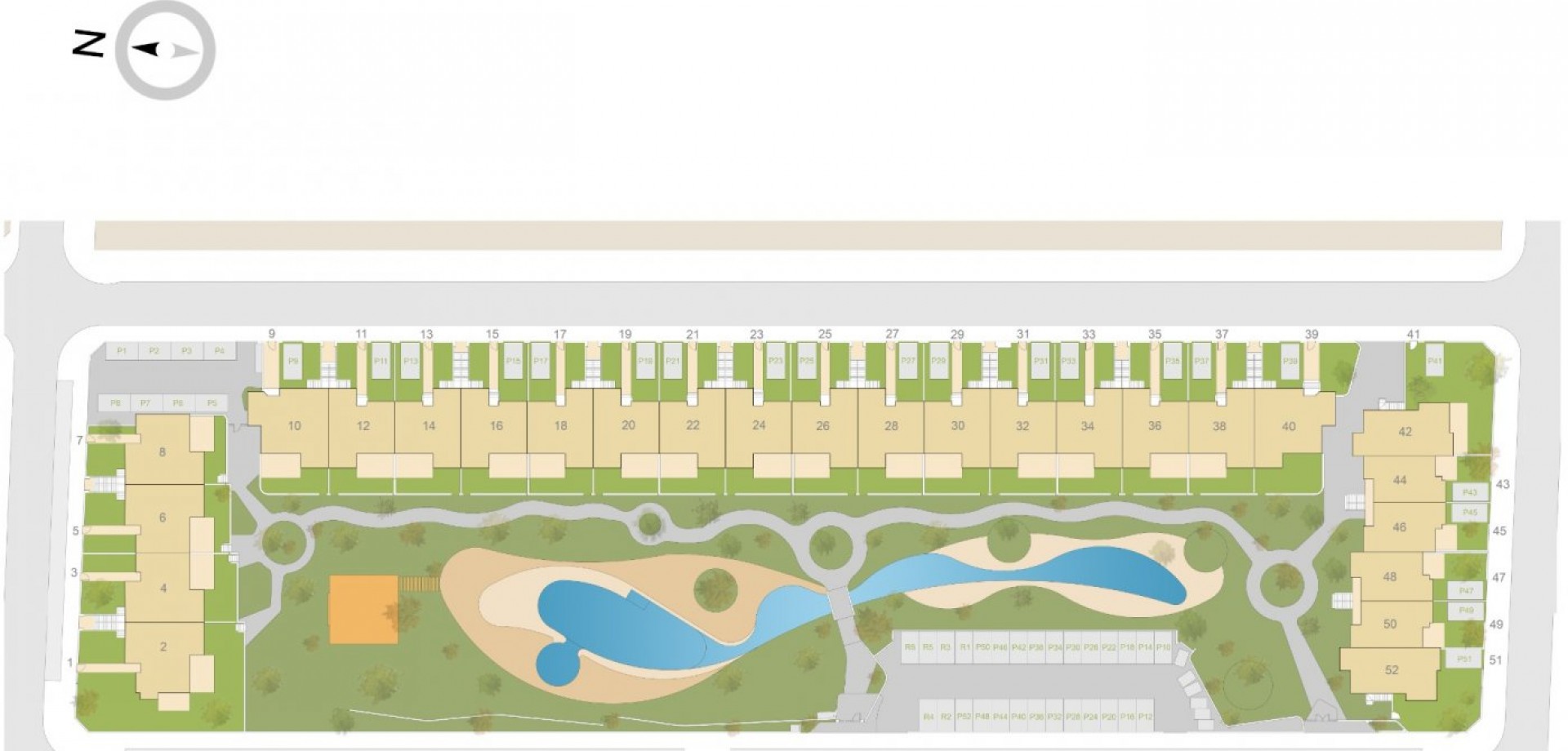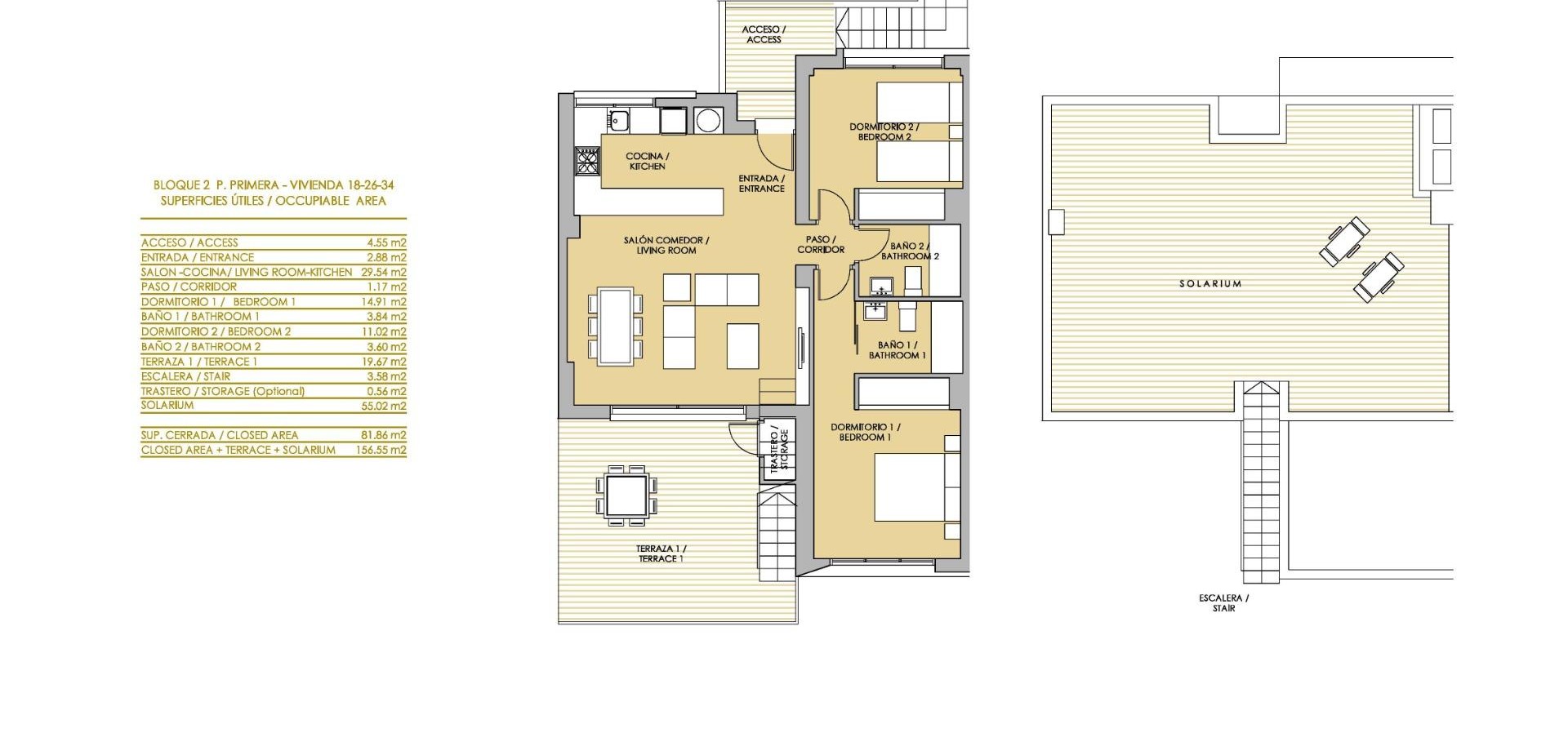 Le complexe, avec des installations communes et une piscine, se compose de bungalows de 2 et 3 chambres, au rez-de-chaussée avec un jardin privé et au dernier étage avec un solarium privé, une cuisine ouverte sur le salon, des placards, une terrasse.