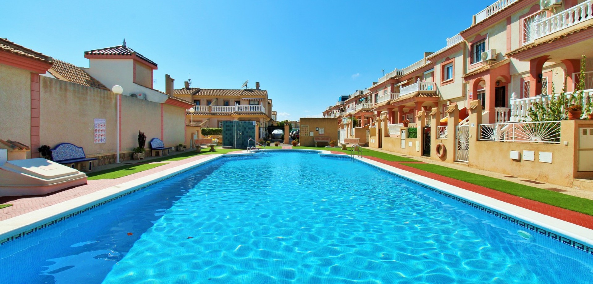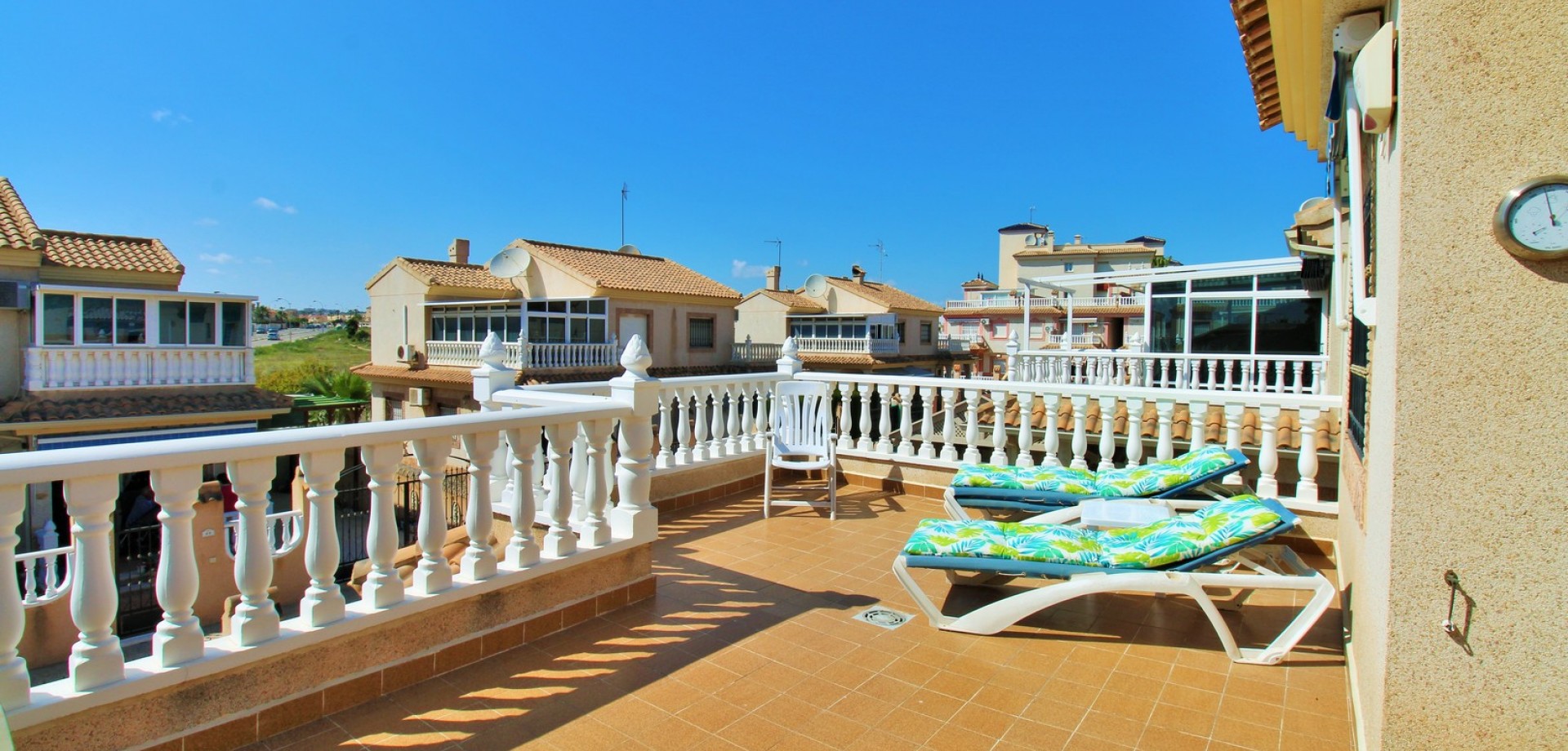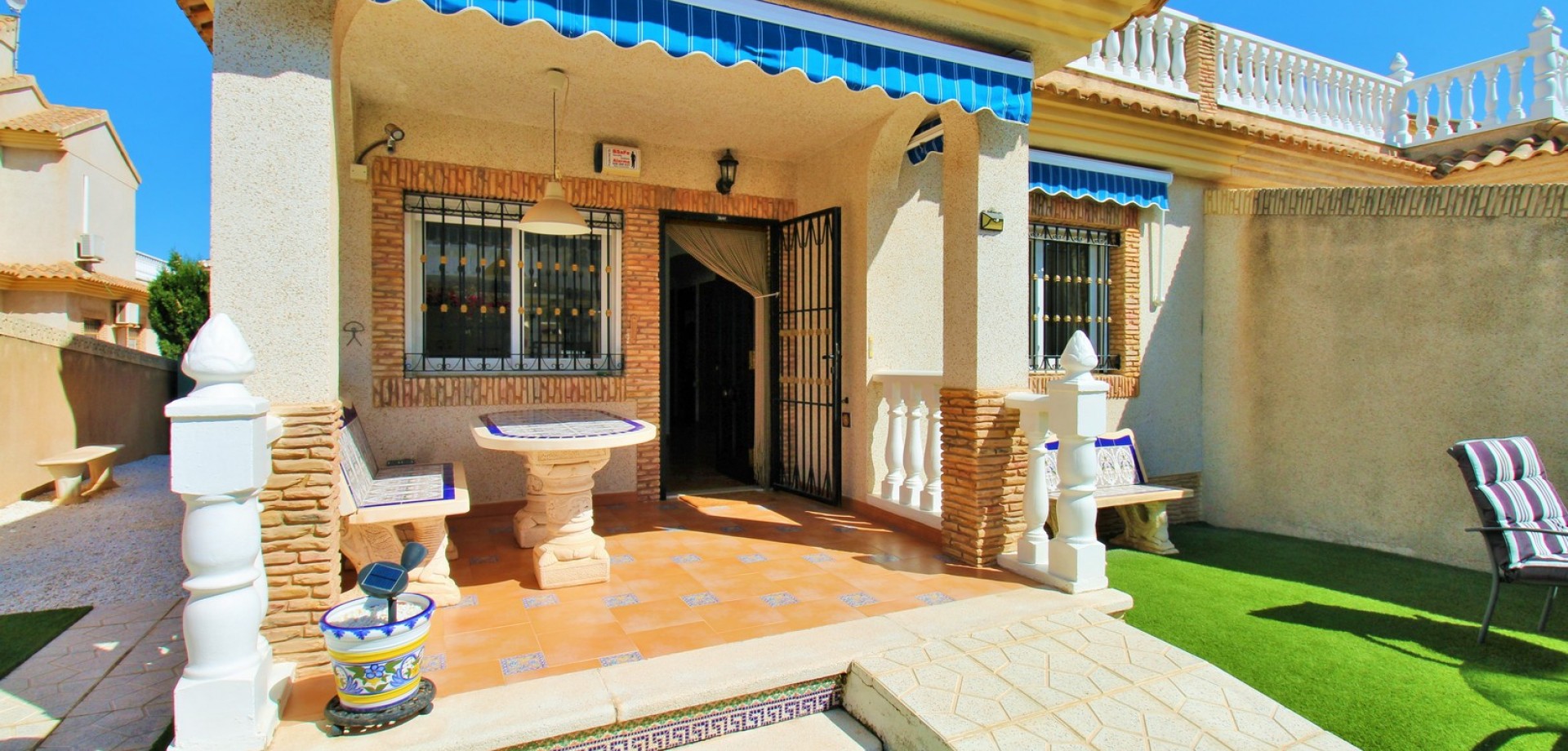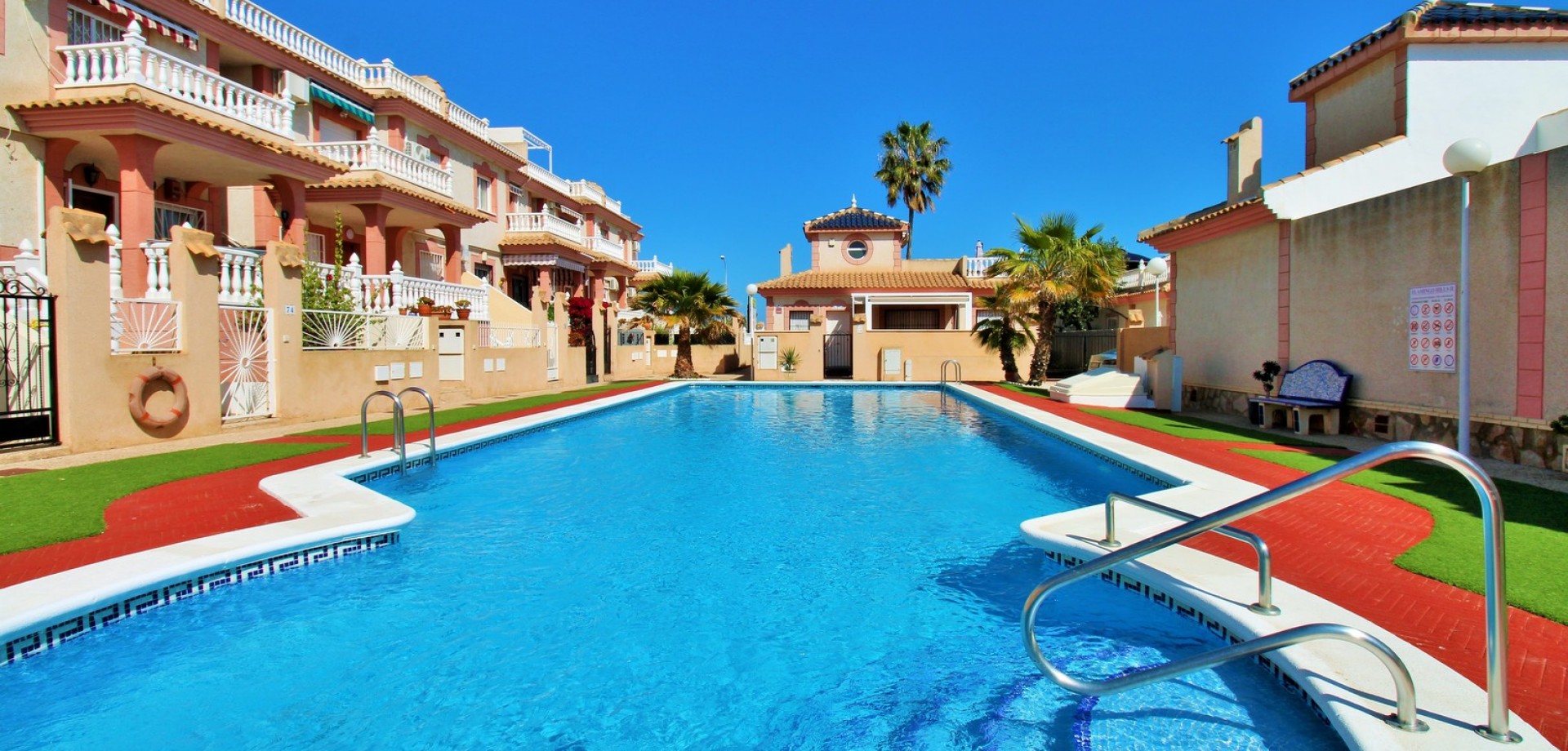 Située dans la très recherchée résidence Flamingo Hills II à Playa Flamenca, cette maison mitoyenne de 3 chambres et 2 salles de bains offre de beaux espaces extérieurs, une distribution pratique et un emplacement idéal à distance de marche de toutes les commodités. Nichée dans une rue communautaire privée, la propriété bénéficie d’un environnement calme tout en étant à proximité immédiate de nombreux bars, restaurants, supermarchés et du célèbre centre commercial Zenia Boulevard. La maison dispose d’un jardin privé à l’avant avec entrée pour véhicule, idéal pour stationner ou profiter de l’extérieur, ainsi qu’une terrasse couverte parfaite pour se détendre. À l’intérieur, vous trouverez un lumineux salon-salle à manger, ainsi qu’une cuisine indépendante partiellement modernisée. Le rez-de-chaussée comprend également une chambre double avec placards intégrés et une salle de bain avec douche à l’italienne, idéale pour les invités. Un espace de rangement sous l’escalier apporte un confort supplémentaire. À l’étage, il y a deux autres chambres doubles avec placards intégrés et une seconde salle de bain familiale. Depuis le palier, vous accédez à un grand solarium privé, parfait pour se détendre, recevoir ou profiter de repas en extérieur. La propriété fait partie d’une résidence bien entretenue avec accès à une belle piscine communautaire située à proximité. Vendue entièrement meublée avec électroménager, cette propriété est idéale comme résidence principale ou secondaire.
