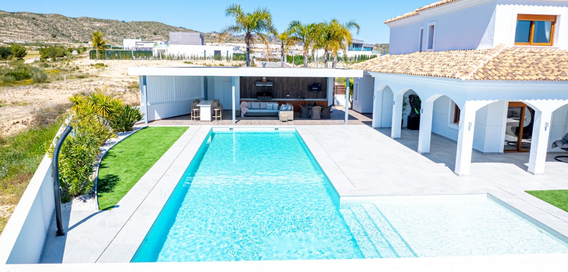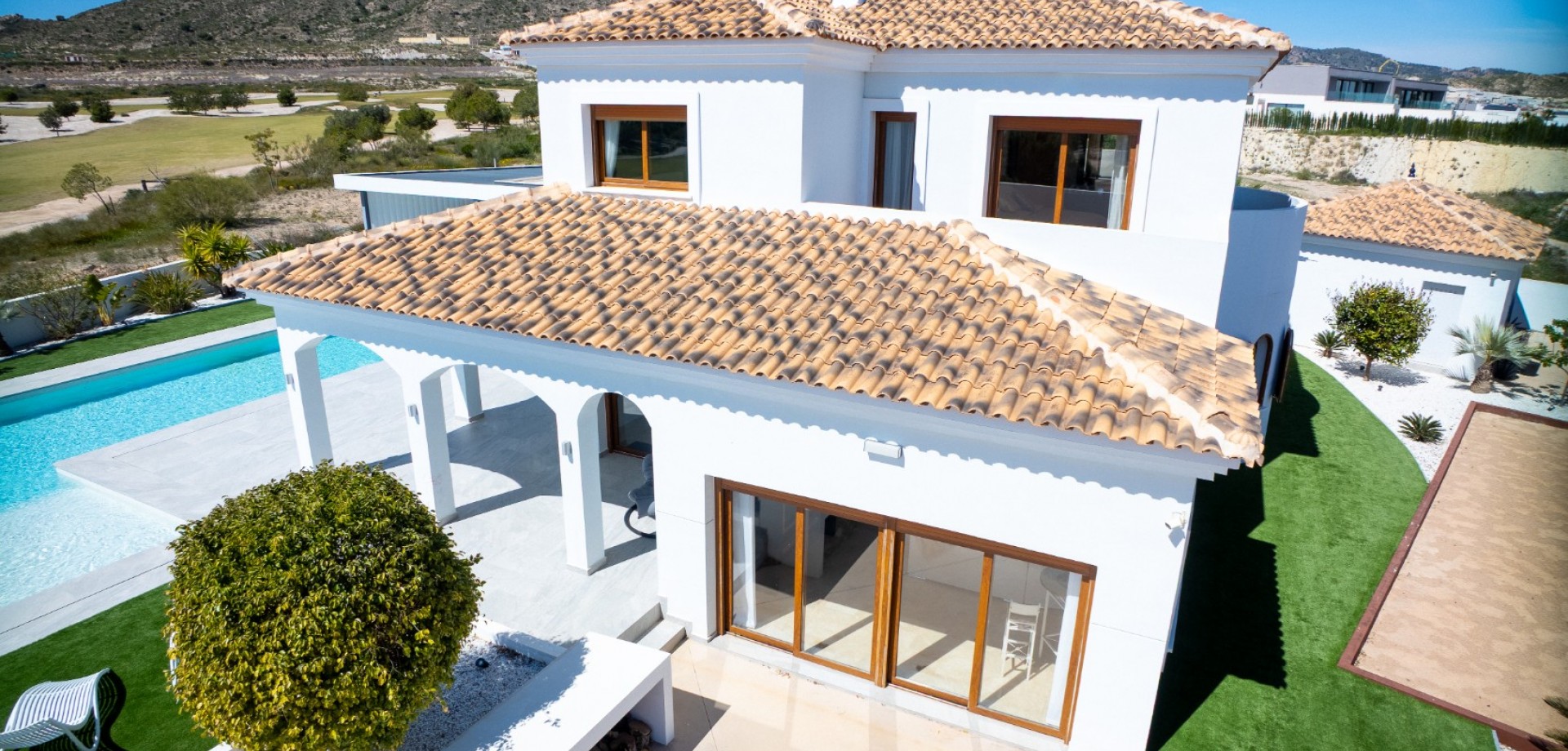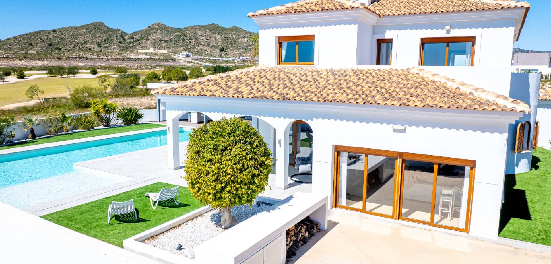 Villa de luxe à vendre à Altaona Golf – Première ligne golf, vue 360º, 4 chambres, piscine privée Découvrez cette exceptionnelle villa à vendre à Altaona Golf, l’une des propriétés les mieux situées du resort. Cette villa en première ligne de golf à Altaona Golf à vendre offre des vues panoramiques à 360º sur le golf et les montagnes, ce qui en fait une opportunité unique. Située sur un terrain spacieux de 1.034 m², cette villa de luxe à vendre à Altaona Golf Murcia se distingue par son intimité, son orientation et son emplacement privilégié. Si vous recherchez une villa à Altaona Golf avec vue sur le golf, cette propriété est sans équivalent. Emplacement privilégié – Première ligne de golf Cette villa à vendre à Altaona Golf resort est idéalement située en première ligne de golf, offrant des vues dégagées, du calme et une grande intimité. Les propriétés comme cette villa première ligne golf Altaona Golf sont rares. Extérieur – Piscine, chill-out et cuisine extérieure L’extérieur de cette villa à Altaona Golf avec piscine privée à vendre est conçu pour profiter pleinement du style de vie méditerranéen: Grande piscine privée Superbe cuisine extérieure en bois d’acacia de haute qualité Espace chill-out élégant Terrain de 1.034 m² avec vue 360º Cette villa à Altaona Golf avec piscine et cuisine extérieure est idéale pour profiter toute l’année. Intérieur – Élégance et style espagnol Cette villa 4 chambres à vendre à Altaona Golf propose une distribution unique pleine de charme: Chambre au rez-de-chaussée avec salle de bain Grand salon sur deux niveaux Salle à manger, coin lecture, espace détente et télévision Architecture espagnole avec mobilier haut de gamme Ce n’est pas seulement une maison — cette propriété à vendre à Altaona Golf a une âme, une élégance et un véritable caractère méditerranéen. Chambres et terrasses – Vue golf et intimité À l’étage, cette villa à Altaona Golf avec 4 chambres offre: 3 chambres avec salles de bain en suite Suite parentale avec salle de bain récemment rénovée Dressing impressionnant Plusieurs terrasses et balcons Superbes vues sur le golf Si vous recherchez une villa à Altaona Golf avec terrasse et vue golf, cette propriété dépasse toutes les attentes. Caractéristiques principales de cette villa à vendre à Altaona Golf 4 chambres / 4 salles de bain Première ligne de golf Vue 360º (golf et montagnes) Piscine privée Cuisine extérieure (bois d’acacia) Espace chill-out Grand garage Climatisation centralisée Placards intégrés Vendue entièrement meubléeGarage privé + espace de rangement Buanderie Salle de bain extérieure supplémentaire pour la zone piscine Une opportunité unique à Altaona Golf Murcia Cette villa à vendre à Altaona Golf Murcia est bien plus qu’une maison — c’est un style de vie. Une combinaison exceptionnelle de localisation, de vues et de qualité. Si vous recherchez: villa à vendre à Altaona Golf villa première ligne golf Altaona Murcia villa de luxe Altaona Golf avec piscine propriété à vendre à Altaona Golf resort …c’est la propriété que vous attendiez. Nous vous invitons à visiter cette magnifique villa à vendre à Altaona Golf et à découvrir son exclusivité en personne.