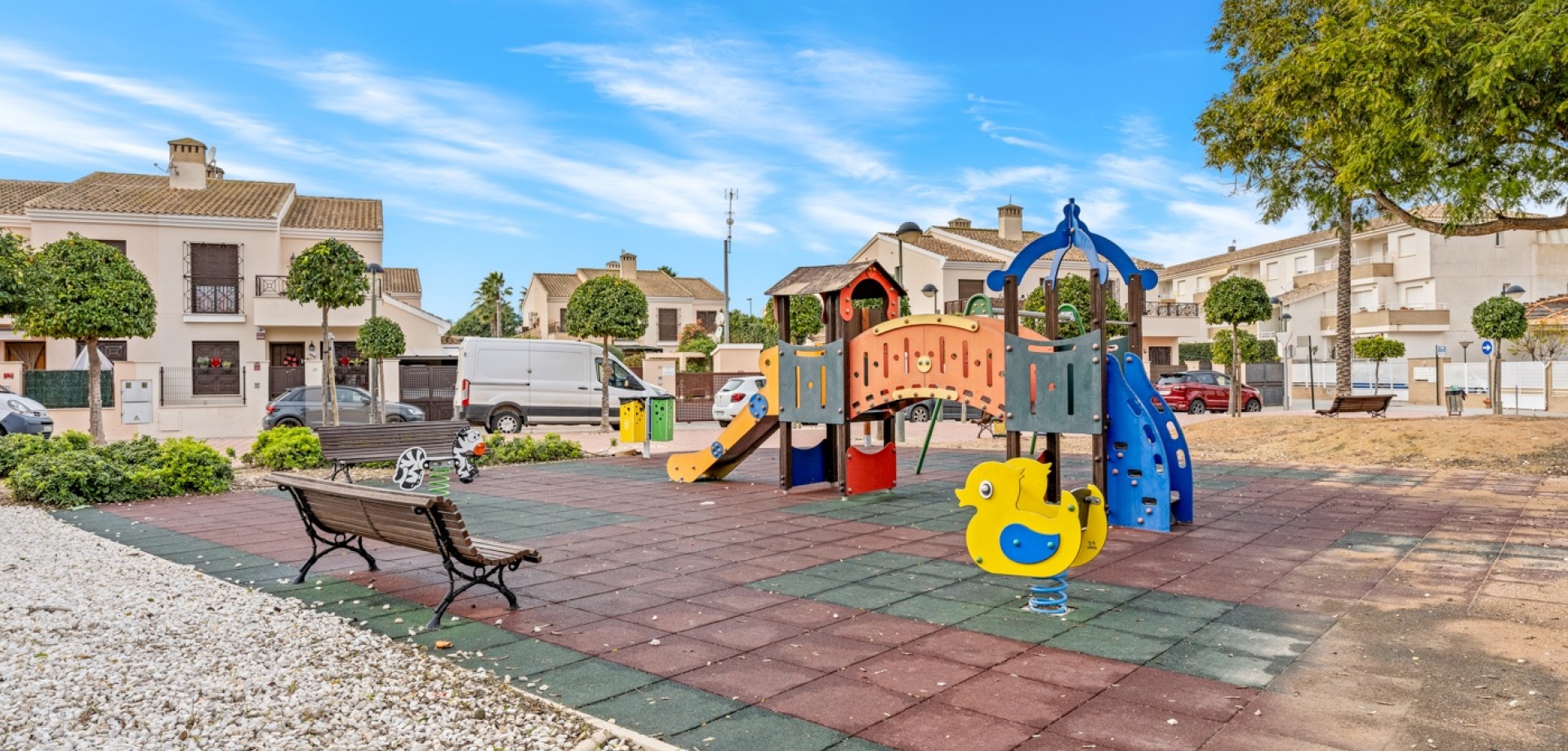 Ce superbe appartement en duplex, parfaitement entretenu, offre confort, espace et une agréable luminosité grâce à son orientation plein sud . Il comprend 3 chambres et 2 salles de bains et a été méticuleusement entretenu ; idéal comme résidence principale, secondaire ou investissement. Le vaste séjour s'ouvre harmonieusement sur une terrasse exposée plein sud , où vous pourrez profiter du soleil toute l'année. La cuisine séparée est fonctionnelle et parfaitement indépendante du séjour. Au rez-de-chaussée se trouvent une chambre avec placards intégrés et une salle de bains. Un escalier mène à l'étage, qui comprend deux autres chambres très spacieuses , chacune avec placards intégrés , et une seconde salle de bains. Cette configuration garantit intimité et confort à toute la famille ou aux invités. La résidence dispose de places de parking privées. Vivre à San Cayetano San Cayetano est un village paisible et charmant de la région de Murcie , prisé des Espagnols comme des propriétaires étrangers. On y trouve toutes les commodités nécessaires, notamment des supermarchés, des restaurants, des cafés, un centre médical et des installations sportives, accessibles à pied ou à vélo. Grâce à sa situation centrale, vous êtes : à environ 15 minutes des plages de Mar Menor à proximité de plusieurs complexes de golf à environ 30 minutes de la ville de Murcie et de l'aéroport San Cayetano est réputée pour son ambiance conviviale , sa bonne accessibilité et son excellent rapport qualité-prix, ce qui en fait un lieu attractif pour vivre ou investir en Espagne. Charges de copropriété : 55,56 € / 3 mois Taxe foncière / IBI : 285 € par an
