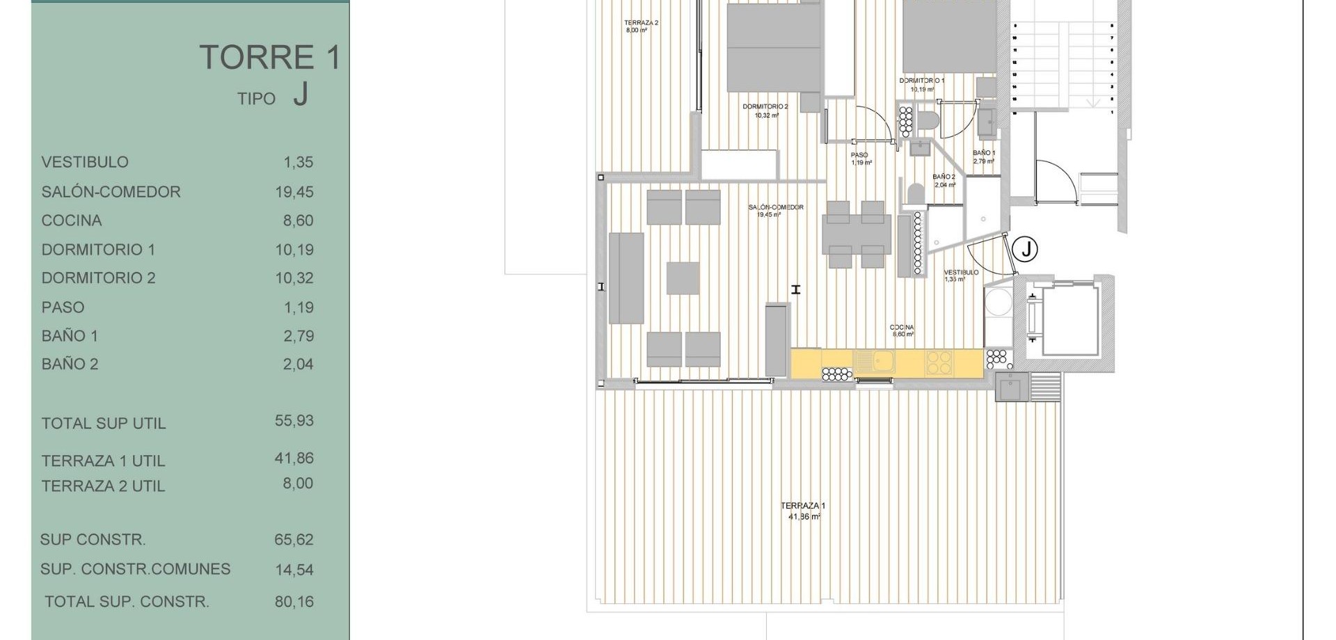 Appartements neufs et modernes près de la plage et du port de plaisance à Guardamar del Segura Complexe résidentiel exclusif dans un emplacement privilégié en bord de mer Découvrez ce nouveau complexe résidentiel exclusif à Guardamar del Segura, l'une des villes côtières les plus attrayantes de la Costa Blanca. Le projet se compose de deux immeubles élégants comprenant chacun 31 logements, tous dotés de 2 chambres et 2 salles de bains (dont une attenante), conçus dans un style méditerranéen moderne qui allie architecture contemporaine et environnement naturel. Situé près de l'Avenida del Puerto, le complexe résidentiel se trouve à seulement 1,6 km de la plage et à environ 2 km du port de plaisance et du centre-ville, offrant un équilibre parfait entre tranquillité, nature et accès facile à tous les services essentiels. Des logements élégants conçus pour le confort et la lumière Ces appartements de haute qualité sont conçus pour maximiser la lumière naturelle et l'espace, créant ainsi des intérieurs lumineux et accueillants. Les logements présentent des agencements modernes, idéaux tant pour une résidence principale que pour des séjours de vacances. Chaque logement comprend une cuisine entièrement équipée avec appareils électroménagers, la climatisation centralisée déjà installée et un système aérothermique économe en énergie pour l'eau chaude. Des places de parking en option, en sous-sol ou en surface, ainsi que des débarras sont également disponibles. Des espaces communs exceptionnels pour un mode de vie sain Le complexe offre un large éventail d'équipements communs haut de gamme conçus pour la détente, le bien-être et la vie sociale. Les résidents peuvent profiter d'une grande piscine pour adultes et enfants entourée de jardins paysagers, ainsi que d'un espace spa avec sauna et salle de sport. Parmi les autres équipements, on trouve des espaces de coworking, un club social, des aires de jeux pour enfants, des zones de yoga et de détente, ainsi que des espaces extérieurs bio-sains. La communauté est entièrement clôturée et dotée d'une vidéosurveillance, garantissant intimité et sécurité à tout moment. Guardamar del Segura : un environnement naturel unique Guardamar del Segura est réputée pour son cadre naturel exceptionnel, située à l'embouchure du fleuve Segura. La région combine plus de 12 km de plages de sable fin avec des dunes protégées, des forêts de pins et des parcs verdoyants. Ce paysage unique offre un environnement paisible tout en proposant une gamme complète de commodités, de restaurants et d'options de loisirs. Excellentes liaisons et distances Plage : 1,6 km Port de plaisance de Guardamar : 2 km Golf de La Marquesa : 9 km Torrevieja : 15 km Aéroport d'Alicante : 32 km Votre maison idéale sur la Costa Blanca Ce complexe résidentiel est parfait pour ceux qui recherchent une maison moderne près de la mer, entourée par la nature et dotée d'excellentes installations. Contactez-nous dès aujourd'hui pour recevoir plus d'informations ou organiser une visite et réserver votre nouvelle propriété à Guardamar del Segura.