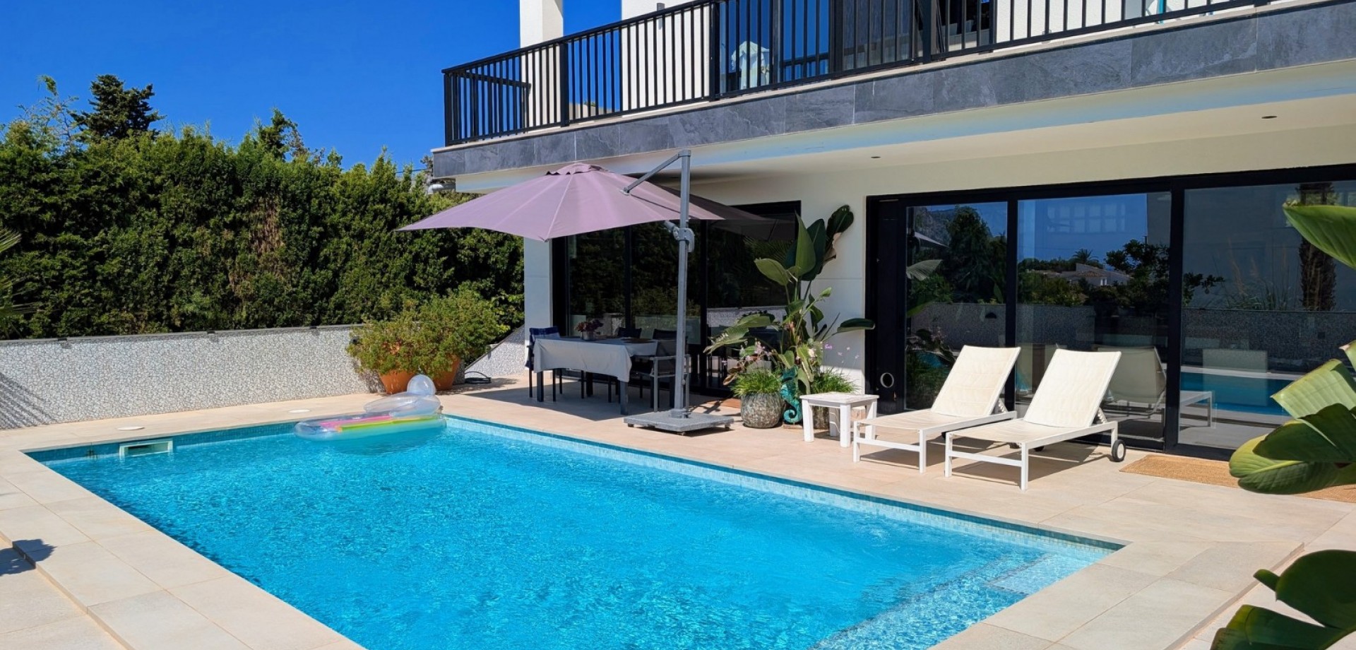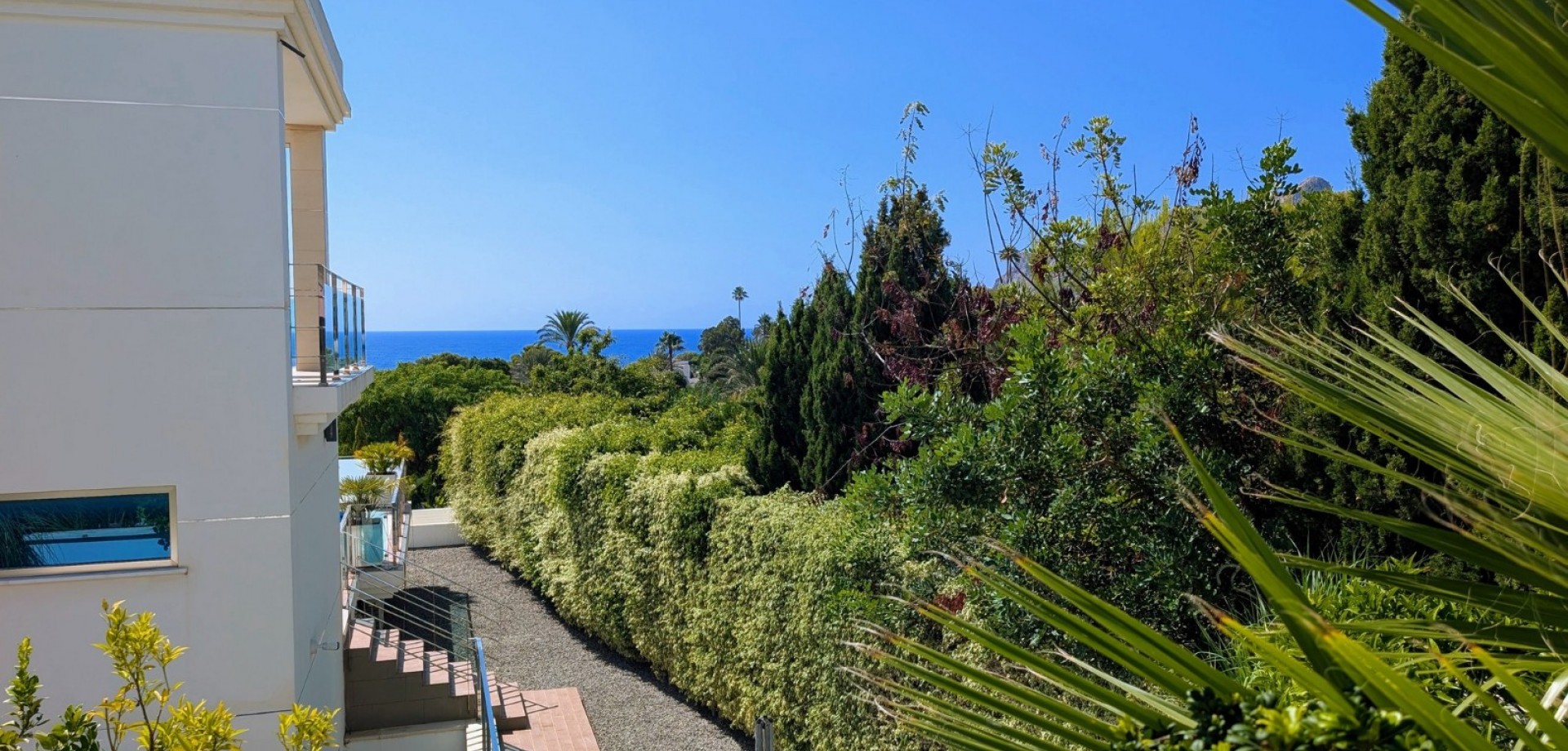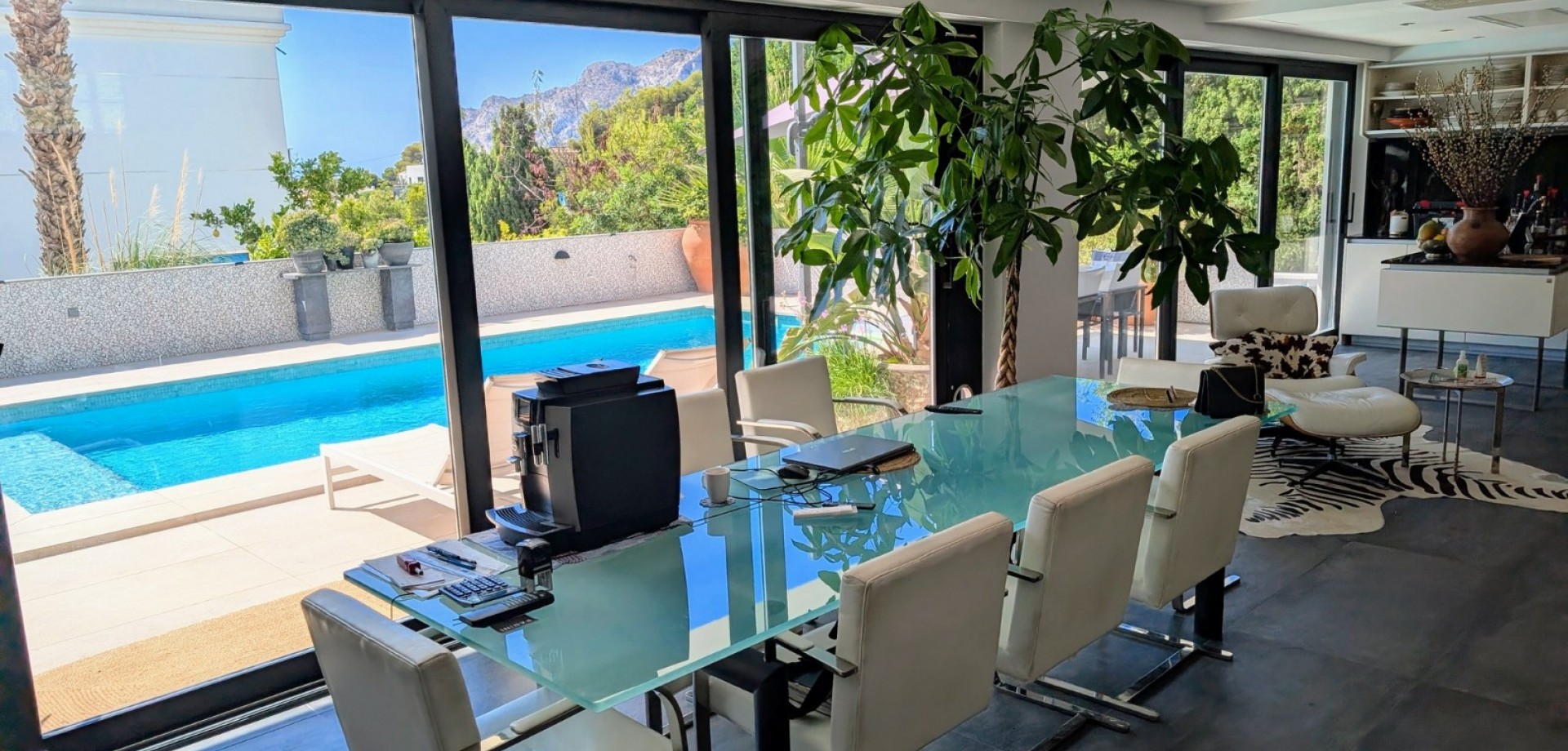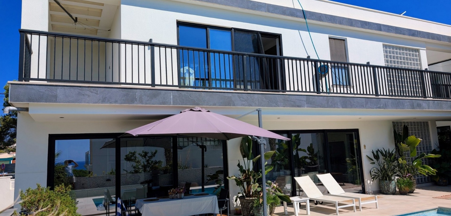 Deze luxe, exotische, moderne villa met uitzicht op zee ligt in de populaire wijk La Calalga in Calpe. De villa is verdeeld over drie verdiepingen en ligt op een perceel van 800 m2 met een gemakkelijk te onderhouden volgroeide tropische tuin. Je komt de woning binnen op een ruime parkeerplaats met een zeil carport buiten de ingang van de garage. De villa is prachtig ontworpen met gebruik van glas waar mogelijk om het licht en de binnen/buiten woonervaring te maximaliseren. Je komt binnen in de belangrijkste woonverdieping, een lichte hal met een gastentoilet en een muur van opbergkasten leidt je langs de trap naar de prachtige keuken / eetkamer / familie kamer met volledige hoogte glazen deuren en ramen met uitzicht op het terras bij het zwembad en een stenen muur om de kamer de "wow"-factor te geven. De designkeuken is volledig uitgerust met room- en lichthouten kasten, zwart granieten werkbladen en roestvrijstalen apparatuur. Aan de andere kant van de entreehal is de woonkamer, een prachtige ruime kamer met een moderne open haard en glazen deuren over de volle hoogte die leiden naar de tropische zomerkeuken en het zwembadterras. Het terras bij het zwembad is toegankelijk vanuit zowel de woonkamer als de keuken en er zijn twee overdekte terrassen en een trap naar beneden naar de tuin. Via de lichte en heldere trap vanuit de entreehal bereik je de slaapverdieping, aan de linkerkant zijn er twee tweepersoonsslaapkamers, waarvan een met uitzicht op zee, beide met kledingkasten en en-suite doucheruimtes. Aan de rechterkant is de ouderslaapkamer, een grote kamer met veel kastruimte, een televisie, glazen deuren naar het balkon, uitzicht op zee en een grote en-suite badkamer met douche en extra opslagruimte. Via de trap vanuit de entreehal bereik je de halve kelder, hier vind je een grote wasruimte met een grote berging die toegang geeft tot de enorme garageruimte. Aan het eind van de gang is de wellnessruimte, die een grote slaapkamer 4 zou kunnen zijn, met een sauna, massage-/behandeltafel en een doucheruimte. De villa wordt aan drie kanten omringd door een gemakkelijk te onderhouden tuin met volwassen planten, palmen en fruitbomen, allemaal met automatische besproeiing.- Belangrijkste punten:- 3 slaapkamers, mogelijkheid tot 4- 4 badkamers- Gastentoilet- Woonkamer- Keuken/Familiekamer- Wasserij- Veel bergruimtes- Eigenaar heeft ruimte overgelaten voor een te installeren lift- Overdekt terras aan het einde van de eerste verdieping kan worden veranderd in een kantoor met uitzicht op zee- Centraal airconditioningsysteem door aerothermie- Fotovoltaïsch systeem dat elektriciteit produceert met 12 zonnepanelen- Ingebouwd geluidssysteem- Gecentraliseerd stofzuigsysteem- Locatie is Partida Calalga: - Op loopafstand van Bassetes watersportcentrum, La Fustera strand of Playa de la Fossa strand- Op loopafstand van een ruime keuze aan restaurants- 14 minuten rijden naar een golfbaan- 19 minuten rijden naar de snelweg toegang in Benissa- Als je op zoek bent naar een buitengewone villa met een eigentijds ontwerp, een gunstige ligging, energie-efficiëntie en een prachtige binnen / buiten levensstijl, zoek dan niet verder.