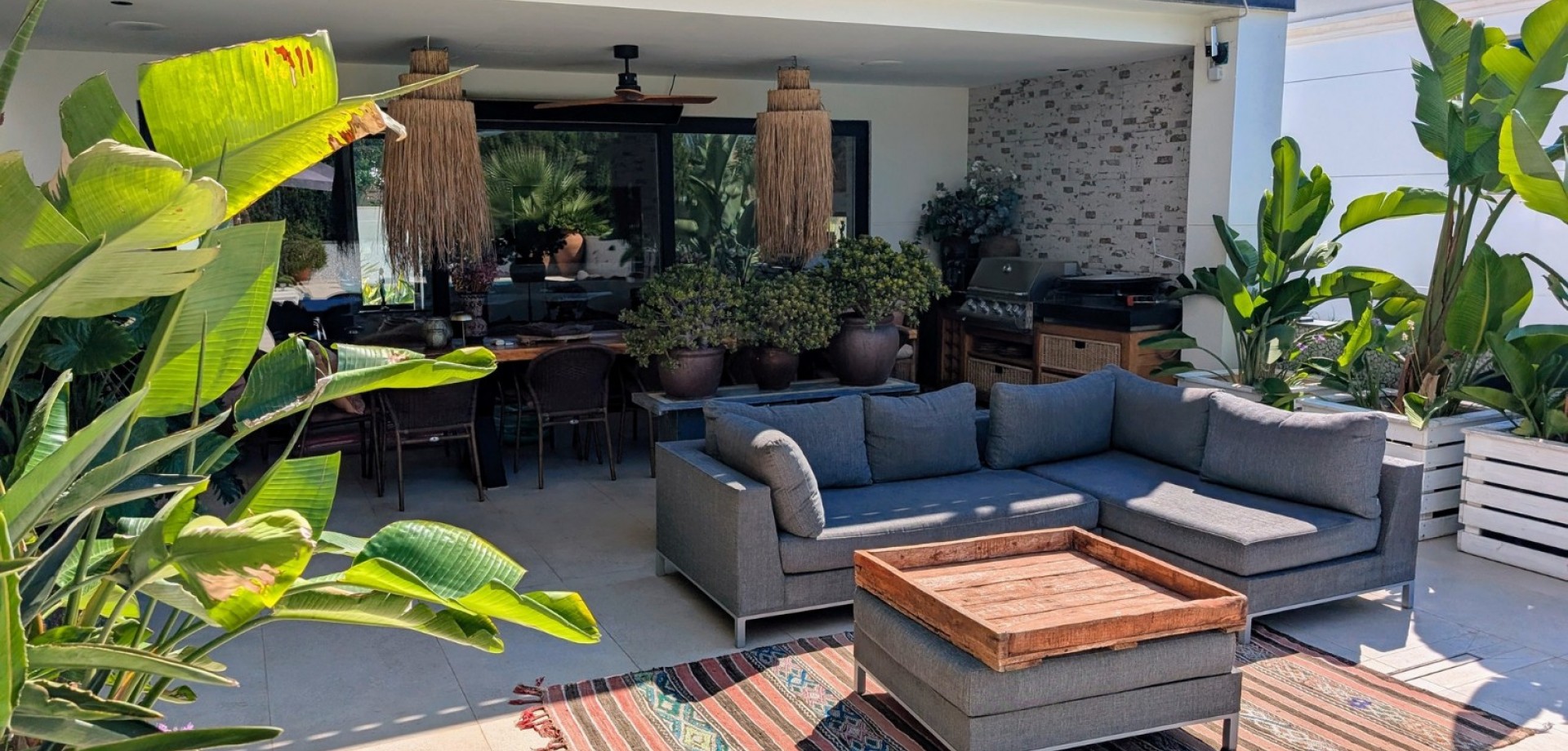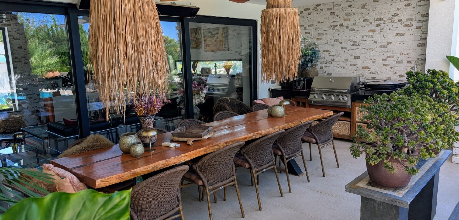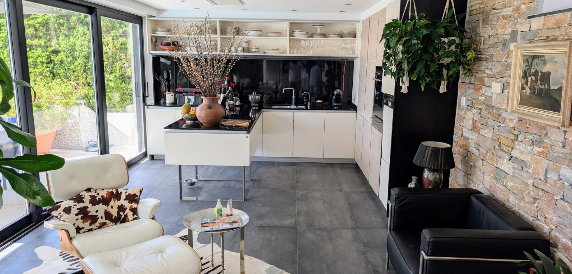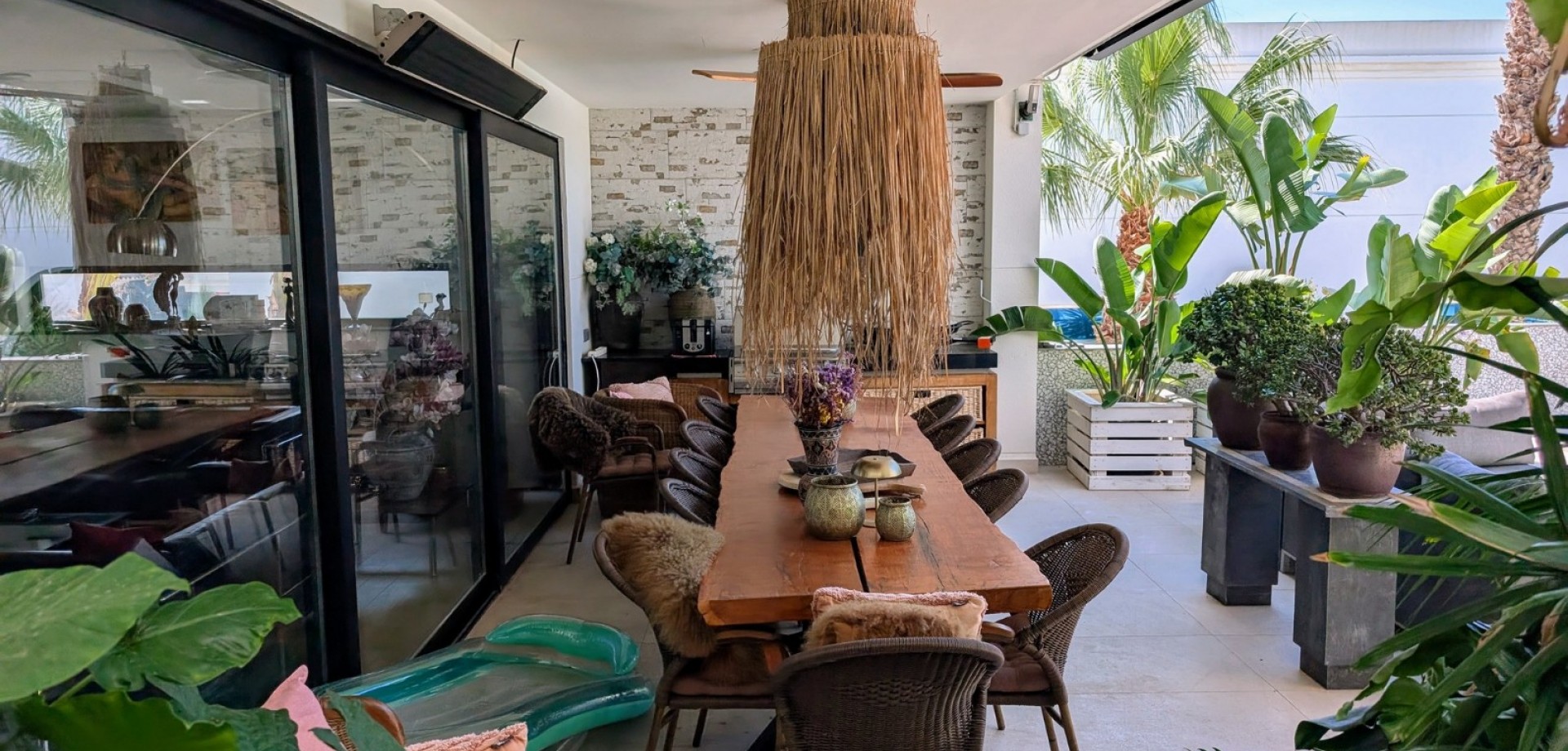Deze luxe, exotische, moderne villa met uitzicht op zee ligt in de populaire wijk La Calalga in Calpe. De villa is verdeeld over drie verdiepingen en ligt op een perceel van 800 m2 met een gemakkelijk te onderhouden volgroeide tropische tuin. Je komt de woning binnen op een ruime parkeerplaats met een zeil carport buiten de ingang van de garage. De villa is prachtig ontworpen met gebruik van glas waar mogelijk om het licht en de binnen/buiten woonervaring te maximaliseren. Je komt binnen in de belangrijkste woonverdieping, een lichte hal met een gastentoilet en een muur van opbergkasten leidt je langs de trap naar de prachtige keuken / eetkamer / familie kamer met volledige hoogte glazen deuren en ramen met uitzicht op het terras bij het zwembad en een stenen muur om de kamer de "wow"-factor te geven. De designkeuken is volledig uitgerust met room- en lichthouten kasten, zwart granieten werkbladen en roestvrijstalen apparatuur. Aan de andere kant van de entreehal is de woonkamer, een prachtige ruime kamer met een moderne open haard en glazen deuren over de volle hoogte die leiden naar de tropische zomerkeuken en het zwembadterras. Het terras bij het zwembad is toegankelijk vanuit zowel de woonkamer als de keuken en er zijn twee overdekte terrassen en een trap naar beneden naar de tuin. Via de lichte en heldere trap vanuit de entreehal bereik je de slaapverdieping, aan de linkerkant zijn er twee tweepersoonsslaapkamers, waarvan een met uitzicht op zee, beide met kledingkasten en en-suite doucheruimtes. Aan de rechterkant is de ouderslaapkamer, een grote kamer met veel kastruimte, een televisie, glazen deuren naar het balkon, uitzicht op zee en een grote en-suite badkamer met douche en extra opslagruimte. Via de trap vanuit de entreehal bereik je de halve kelder, hier vind je een grote wasruimte met een grote berging die toegang geeft tot de enorme garageruimte. Aan het eind van de gang is de wellnessruimte, die een grote slaapkamer 4 zou kunnen zijn, met een sauna, massage-/behandeltafel en een doucheruimte. De villa wordt aan drie kanten omringd door een gemakkelijk te onderhouden tuin met volwassen planten, palmen en fruitbomen, allemaal met automatische besproeiing.- Belangrijkste punten:- 3 slaapkamers, mogelijkheid tot 4- 4 badkamers- Gastentoilet- Woonkamer- Keuken/Familiekamer- Wasserij- Veel bergruimtes- Eigenaar heeft ruimte overgelaten voor een te installeren lift- Overdekt terras aan het einde van de eerste verdieping kan worden veranderd in een kantoor met uitzicht op zee- Centraal airconditioningsysteem door aerothermie- Fotovoltaïsch systeem dat elektriciteit produceert met 12 zonnepanelen- Ingebouwd geluidssysteem- Gecentraliseerd stofzuigsysteem- Locatie is Partida Calalga: - Op loopafstand van Bassetes watersportcentrum, La Fustera strand of Playa de la Fossa strand- Op loopafstand van een ruime keuze aan restaurants- 14 minuten rijden naar een golfbaan- 19 minuten rijden naar de snelweg toegang in Benissa- Als je op zoek bent naar een buitengewone villa met een eigentijds ontwerp, een gunstige ligging, energie-efficiëntie en een prachtige binnen / buiten levensstijl, zoek dan niet verder.