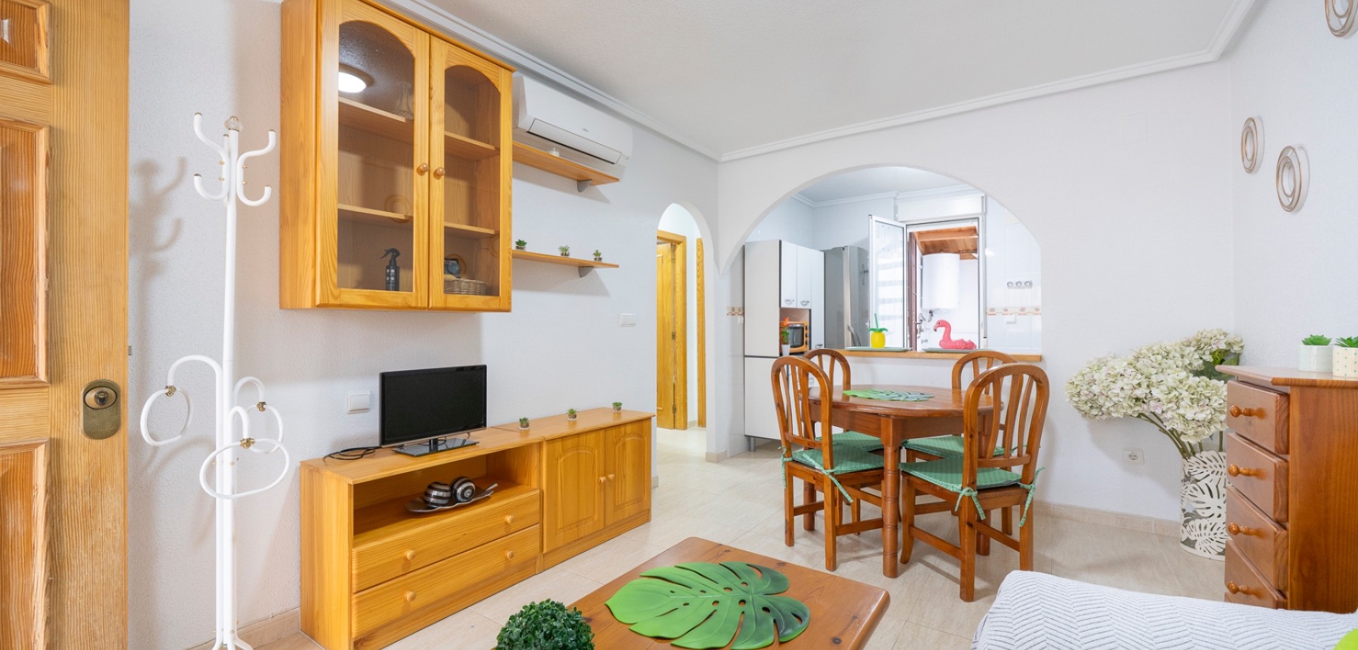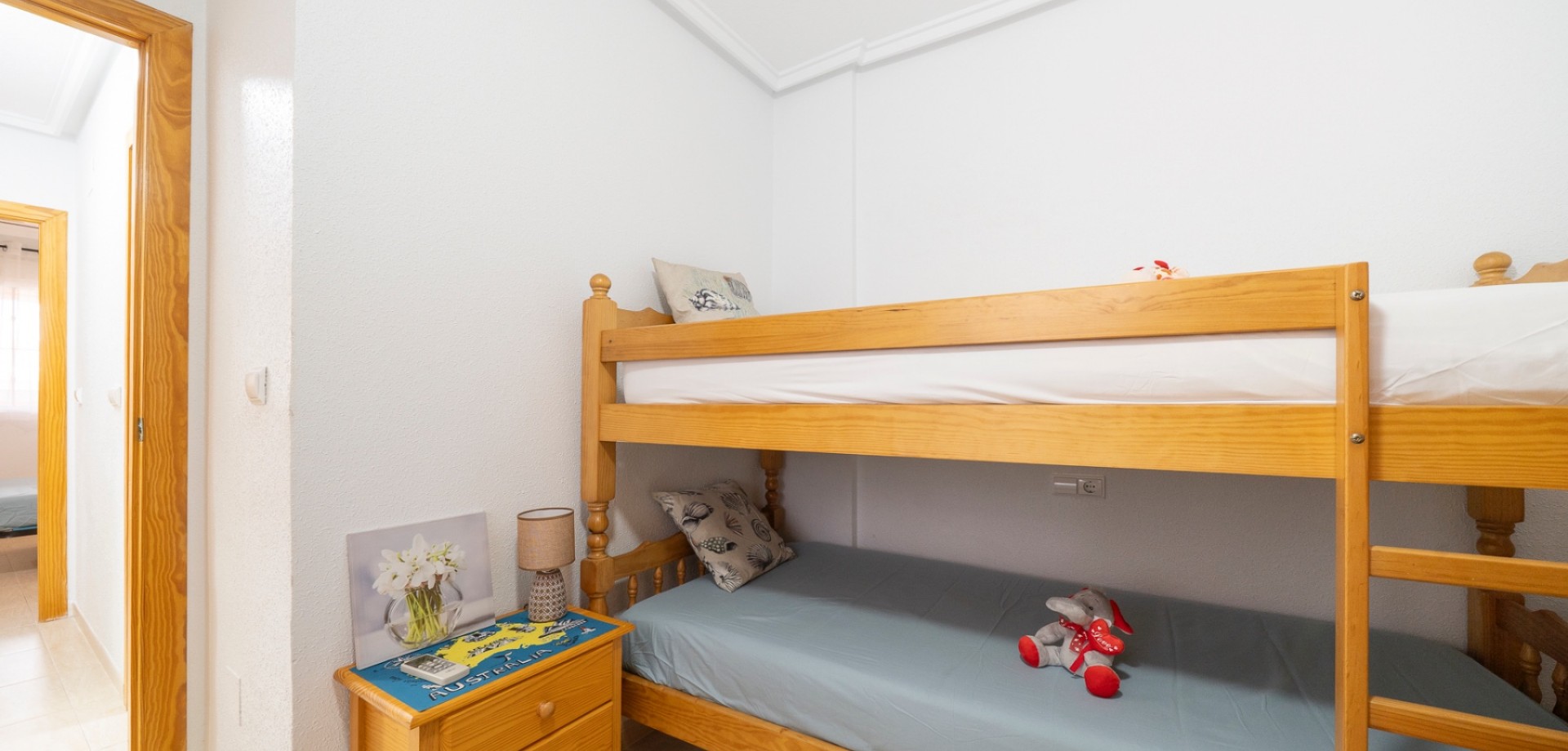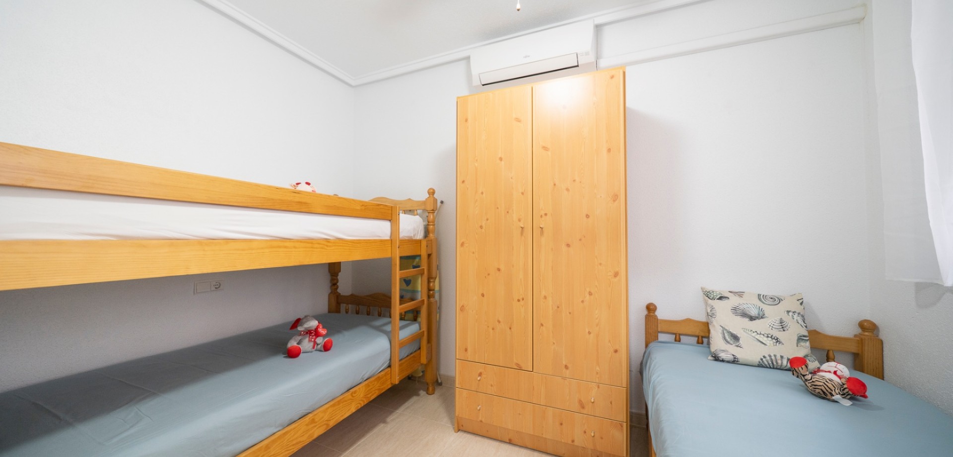 Op de hoofdverdieping beschikt de woning over twee slaapkamers en één badkamer, met een praktische indeling. De woning wordt gemeubileerd verkocht en is voorzien van airconditioning.