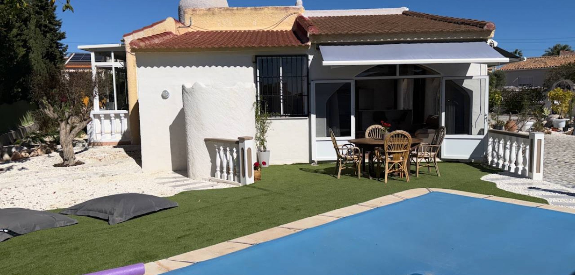 Ontdek deze prachtig gepresenteerde villa op het zuidoosten, gelegen op een ruim privéperceel van 800 m² met een woonoppervlakte van 223 m². De woning combineert perfect privacy met gemak en is gelegen in een rustige woonwijk op loopafstand van het centrum, winkels en lokale voorzieningen – ideaal voor permanent wonen aan de Costa Blanca.