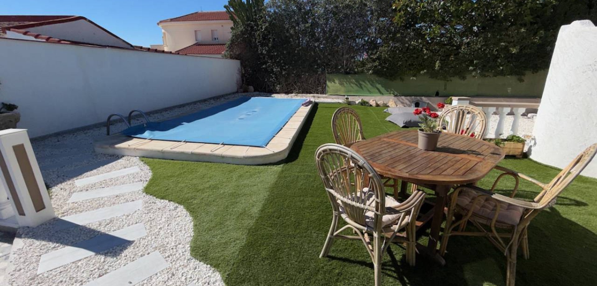 Vrij uitzicht op de tuin en het zwembad