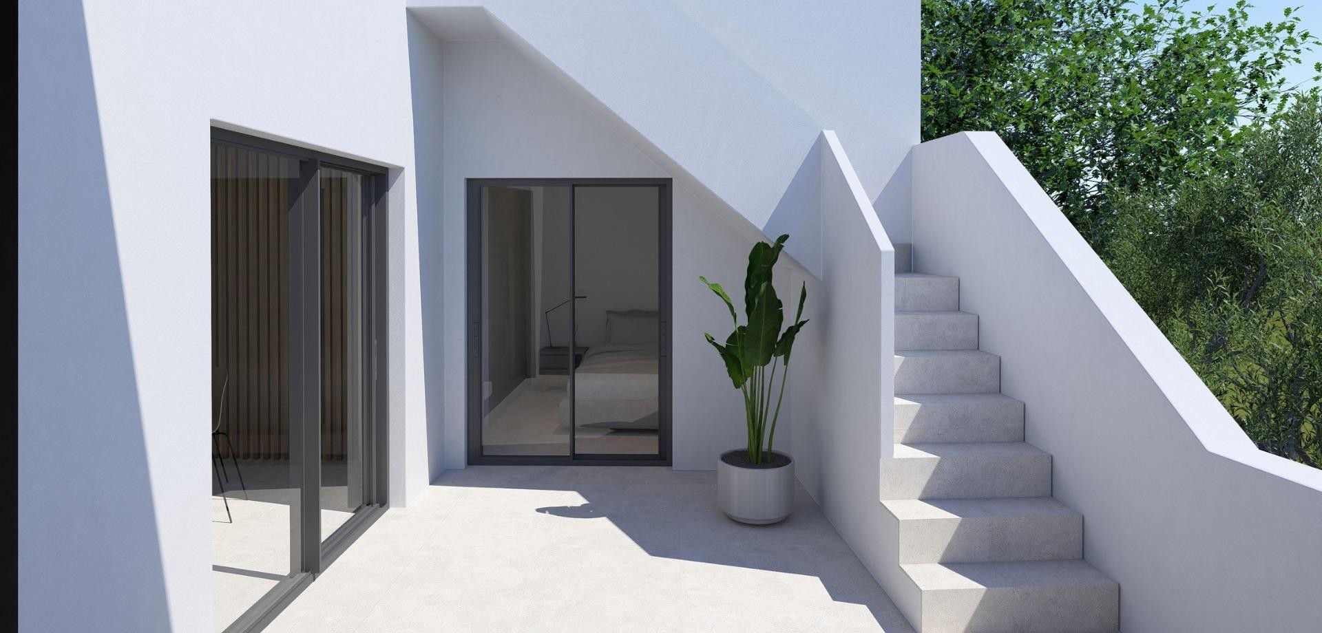 Moderne nieuwbouwwoningen met privézwembad in El Alba Resort Torre Pacheco Eigentijdse woningen in een groeiende mediterrane resortgemeenschap Dit nieuwbouwproject bestaat in de eerste fase uit slechts 4 exclusieve woningen, gelegen in El Alba Mediterranean Resort in Torre Pacheco. Deze moderne woningen zijn ontworpen op één niveau en bieden een perfecte combinatie van comfort, functionaliteit en mediterraan buitenleven. El Alba Resort is een opkomende woonwijk, omgeven door open landschappen en golfbanen, op korte afstand van de stad Roldan, waar u supermarkten, restaurants, banken en dagelijkse voorzieningen vindt. Het resort beschikt al over een sociale club met zwembad en restaurant, en er wordt momenteel een winkelgebied ontwikkeld, wat de locatie nog aantrekkelijker en waardevoller maakt. Wonen op één niveau met privétuin en solarium Elke woning heeft 2 slaapkamers en 2 badkamers, waarvan één ensuite, met een open keuken die in verbinding staat met een lichte woonkamer. De indeling is zorgvuldig ontworpen om het natuurlijke licht te maximaliseren en een naadloze verbinding tussen binnen- en buitenruimtes te creëren. Alle woningen zijn voorzien van: Volledig uitgeruste keuken met apparatuur Badkamers met meubilair, spiegel, verlichting en doucheschermen Inbouwkasten met lades in de slaapkamers Voorbereiding voor airconditioning LED-verlichting binnen en buiten Drie fotovoltaïsche zonnepanelen met een capaciteit van 1,5 kW per woning De buitenruimtes zijn ontworpen om het hele jaar door van te genieten, met een privétuin met zwembad, een terras en een groot privésolarium met een zomerkeuken, ideaal om buiten te eten en te ontspannen in de zon. Kwaliteitskenmerken ontworpen voor comfort en efficiëntie Deze woningen zijn gebouwd met een elegant en functioneel interieur, waarbij de nadruk ligt op energie-efficiëntie en modern wonen. Er is een eigen parkeerplaats op het perceel, wat zorgt voor gemak en veiligheid. De combinatie van zonnepanelen, hoogwaardige isolatie en slim ontwerp zorgt voor een energiezuinige woning die ideaal is voor permanent wonen, vakantiegebruik of verhuurinvestering. Uitstekende locatie in de buurt van golfbanen, stranden en luchthavens Centrum van Roldan 2 km Stranden van Mar Menor 15 km Stranden van de Middellandse Zee 20 km La Torre Golf Resort 5 km Terrazas de la Torre Golf 6 km Luchthaven Murcia Corvera 18 km Cartagena 30 km Deze strategische locatie biedt gemakkelijke toegang tot golfbanen, stranden, voorzieningen en vervoersverbindingen, terwijl u kunt genieten van een rustige woonomgeving. Een slimme investering aan de Costa Calida Deze herenhuizen in El Alba Mediterranean Resort bieden een uitstekende kans om een moderne woning met privézwembad te kopen in een snelgroeiend gebied van Torre Pacheco. Neem vandaag nog contact met ons op voor meer informatie of om een bezichtiging van deze exclusieve nieuwbouwwoningen te regelen.