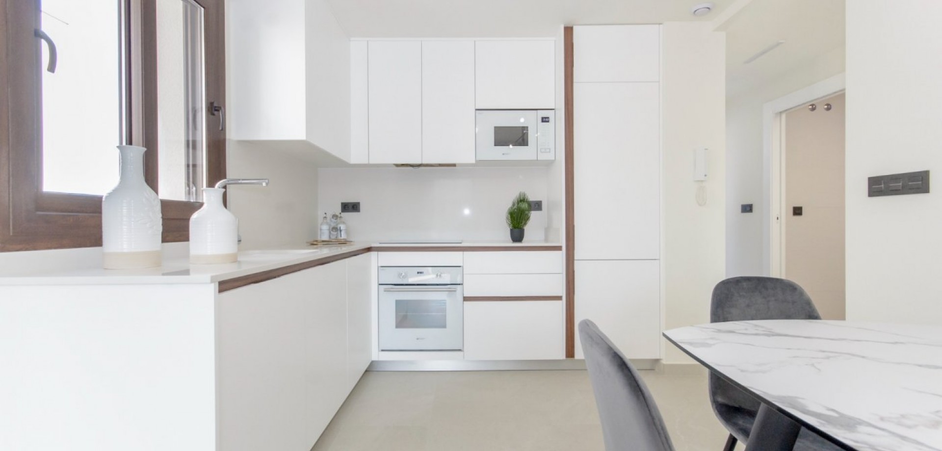 NIEUWBOUW COMPLEX VAN BUNGALOW APPARTEMENTEN IN LOS BALCONES, TORREVIEJA Nieuwbouw wooncomplex met prachtig uitzicht op het roze zoutmeer in Los Balcones. Complex bestaat uit 104 bungalow appartementen met 2 en 3 slaapkamers, bovenste verdieping bungalow heeft prive solariums met een panoramisch uitzicht op het zoutmeer en begane grond bungalows hebben grote terrassen met uitzicht op de groene omgeving. Deze bungalows delen prachtige groene zones en 2 grote zwembaden. Optionele ondergrondse parkeergarage en opslagruimten zijn beschikbaar. Deze residentie biedt een modern design, geselecteerde materialen, appartementen afgewerkt volgens de hoogste specificaties met alleen topkwaliteit materialen. De Residential zal worden gebouwd tegen een heuvel, op deze manier het uitzicht en ook de lucht is duidelijk en unieke kwaliteit. Los Balcones ligt net buiten Torrevieja met alle toegankelijke diensten, op slechts 5 minuten van Playa de Los Náufragos, supermarkten, de school en het winkelcentrum La Zenia Boulevard, en op een minuut van het universitair ziekenhuis van Torrevieja. Verder vindt u 4 golfbanen binnen een korte rit, waaronder de bekroonde Las Colinas Golf & Country Club. Complex gelegen op 40 minuten van Alicante luchthaven en 1 uur Murcia - Corvera luchthaven.