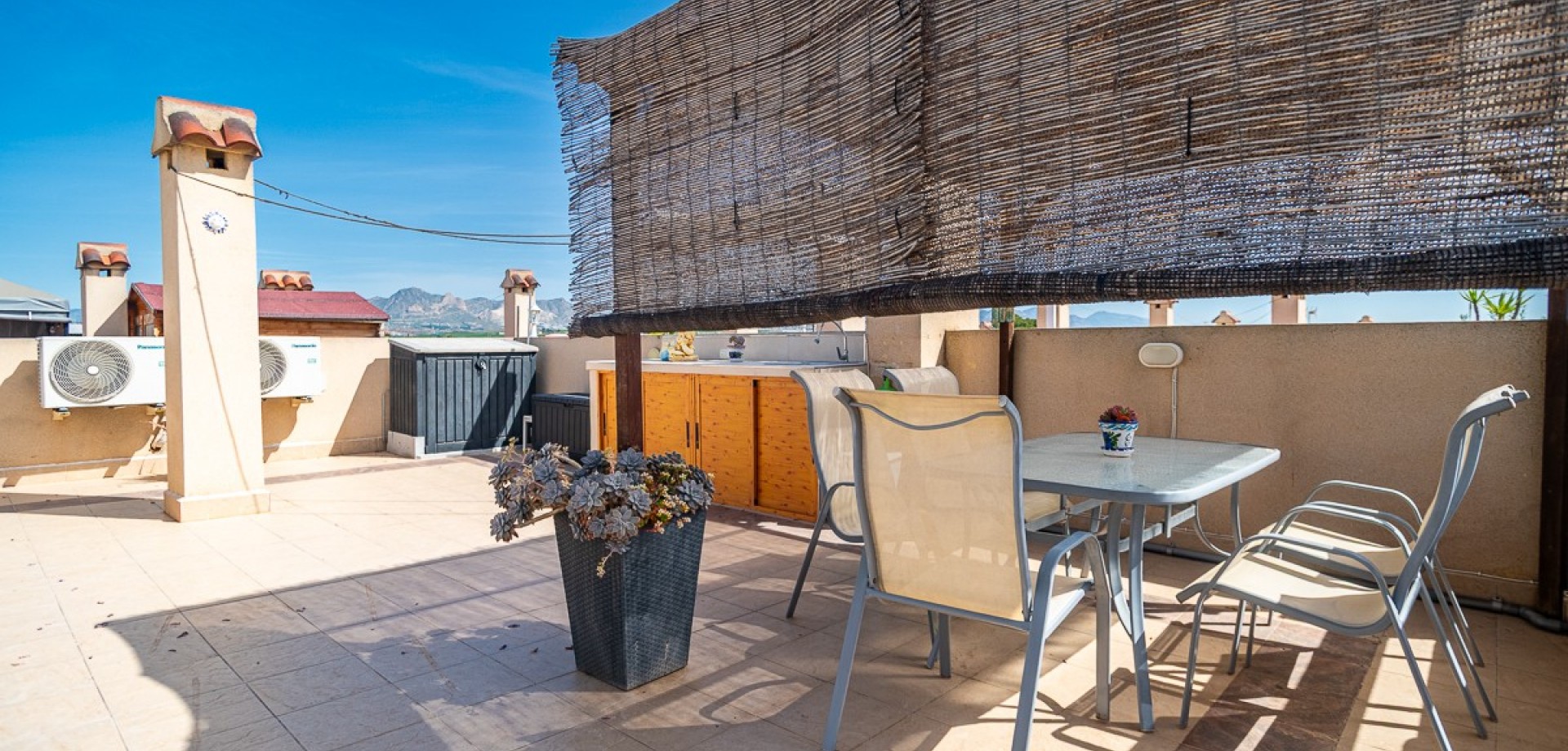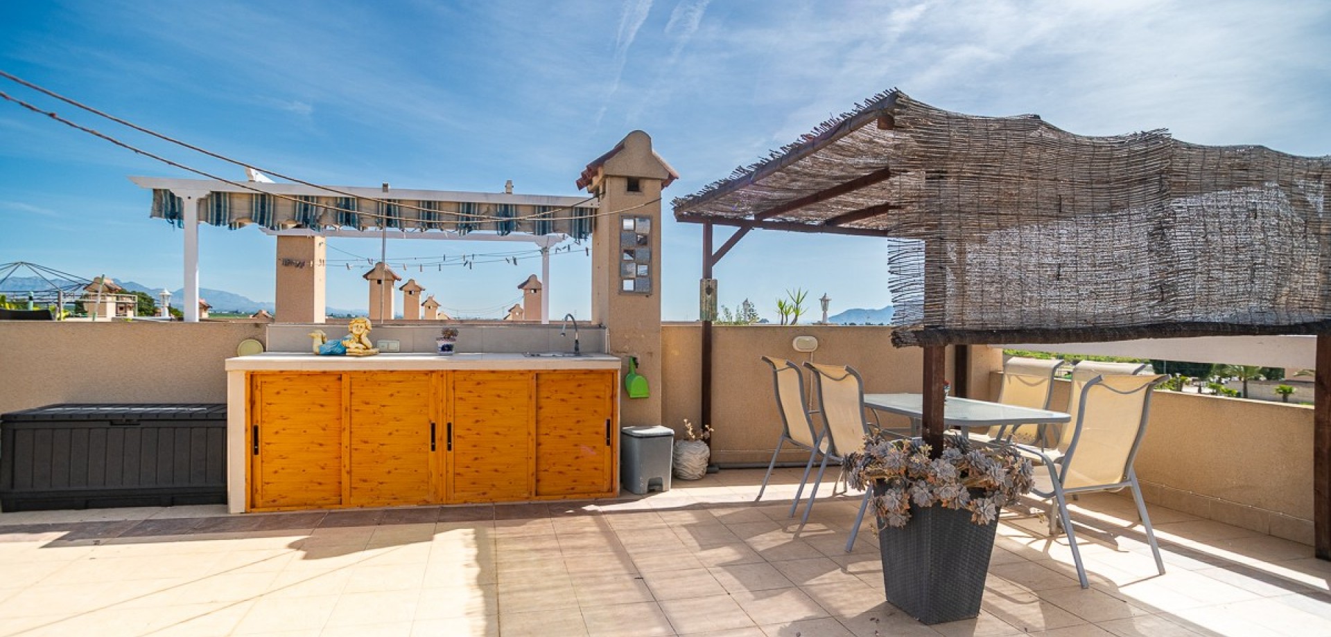 Op zoek naar een instapklaar appartement onder de Spaanse zon? Dan is dit gezellige appartement in La Matanza precies wat je zoekt. De woning beschikt over 2 comfortabele slaapkamers en 1 volledig vernieuwde badkamer, afgewerkt in een moderne stijl. De keuken is goed onderhouden en uitgerust met alle nodige toestellen, waardoor je hier meteen aan de slag kunt – of het nu voor dagelijks gebruik is of voor vakantieverhuur. Daarnaast is er airconditioning aanwezig, wat zorgt voor een aangenaam binnenklimaat, zowel in de warme zomermaanden als tijdens de mildere winters. Een absolute troef van dit appartement is het privé solarium met buitenkeuken. Hier geniet je volop van het mediterrane leven: ontbijten in de zon, gezellige diners met vrienden of gewoon ontspannen met een mooi uitzicht. Als extra pluspunt is er ook een gemeenschappelijk zwembad, ideaal om af te koelen en te genieten van de Spaanse levensstijl. La Matanza is een rustige en authentieke wijk in de gemeente Orihuela, gelegen in het binnenland van de Costa Blanca Zuid. Hier ervaar je het echte Spanje: rust, ruimte en natuur, weg van de drukte van de kust, maar toch op korte rijafstand van stranden, golfbanen en alle voorzieningen. De regio staat bekend om zijn prachtige landschappen, citrusboomgaarden en panoramische uitzichten. Tegelijk ben je binnen ongeveer 20–25 minuten aan de kust van Guardamar of Torrevieja, waar je kunt genieten van stranden, restaurants en winkels. La Matanza is ideaal voor wie op zoek is naar een ontspannen levensstijl in een authentieke omgeving, met alle comfort binnen handbereik.