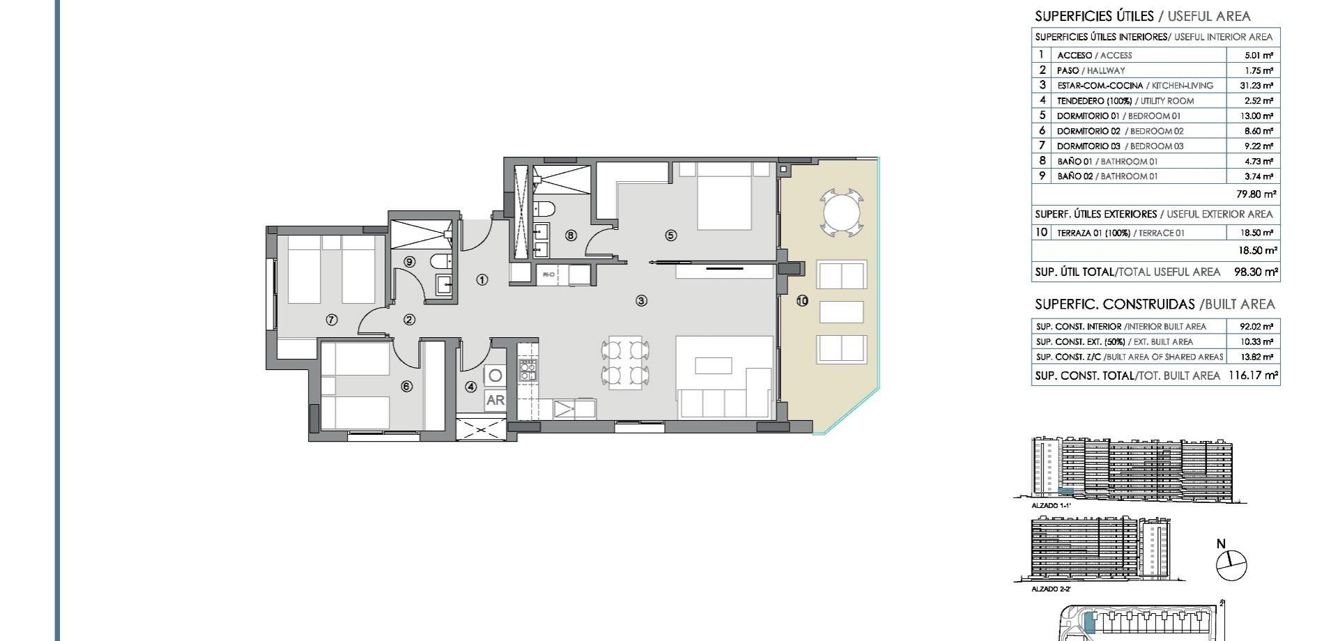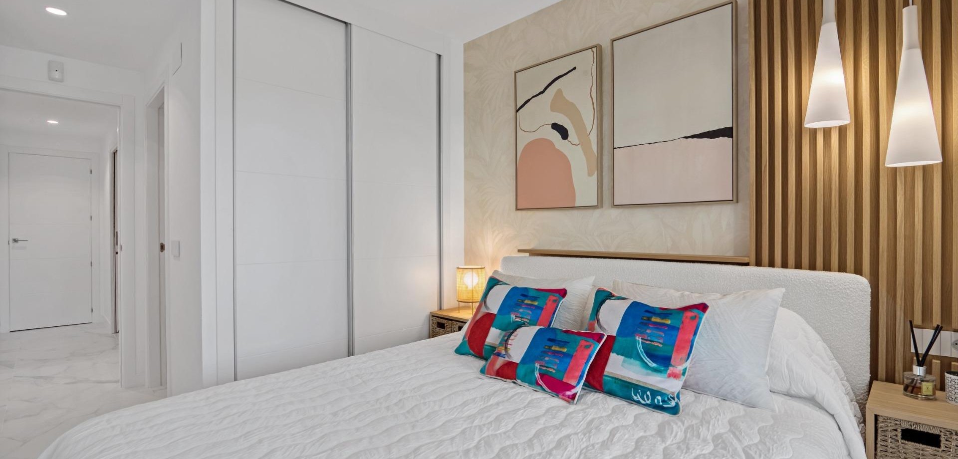 NEW BUILD RESIDENTIAL COMPLEX IN PUNTA PRIMA New Build residential complex of 220 apartments in Punta Prima, Torrevieja. Apartments with 2 and 3 bedrooms and 2 bathrooms, open plan kitchen with living room, fitted wardrobes, all of them with large terraces. Ground floor apartments with garden and penthouses with solarium. All homes are delivered with an underground parking space. The residential has garden areas with swimming pools and paddle tennis court. Children can enjoy their own children's pool, as well as a children's play area. Punta Prima, located just 5 km from Torrevieja, is characterized by good communication and health infrastructures, the proximity to Alicante airport, and the number of services open throughout the year. Just 10 km away we can find the golf courses of Villamartín, Campoamor, Las Ramblas, Las Colinas and Lo Romero, as well as the commercial centres of La Zenia and Habaneras.