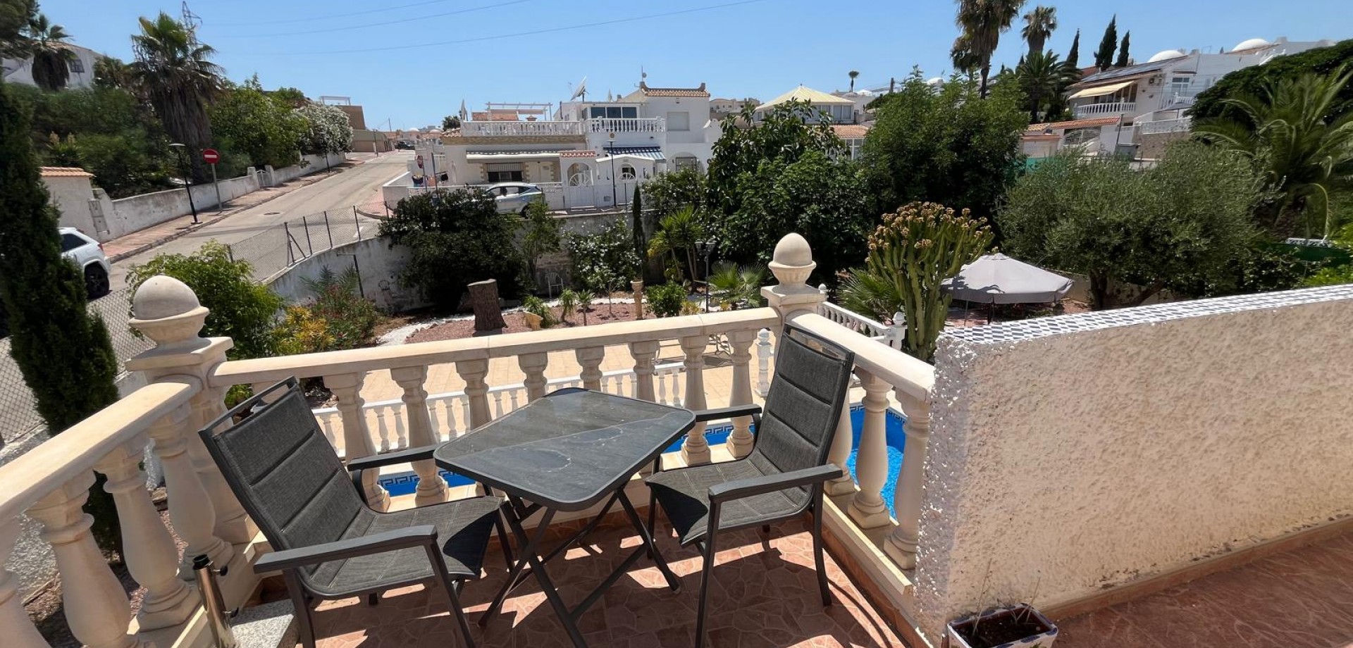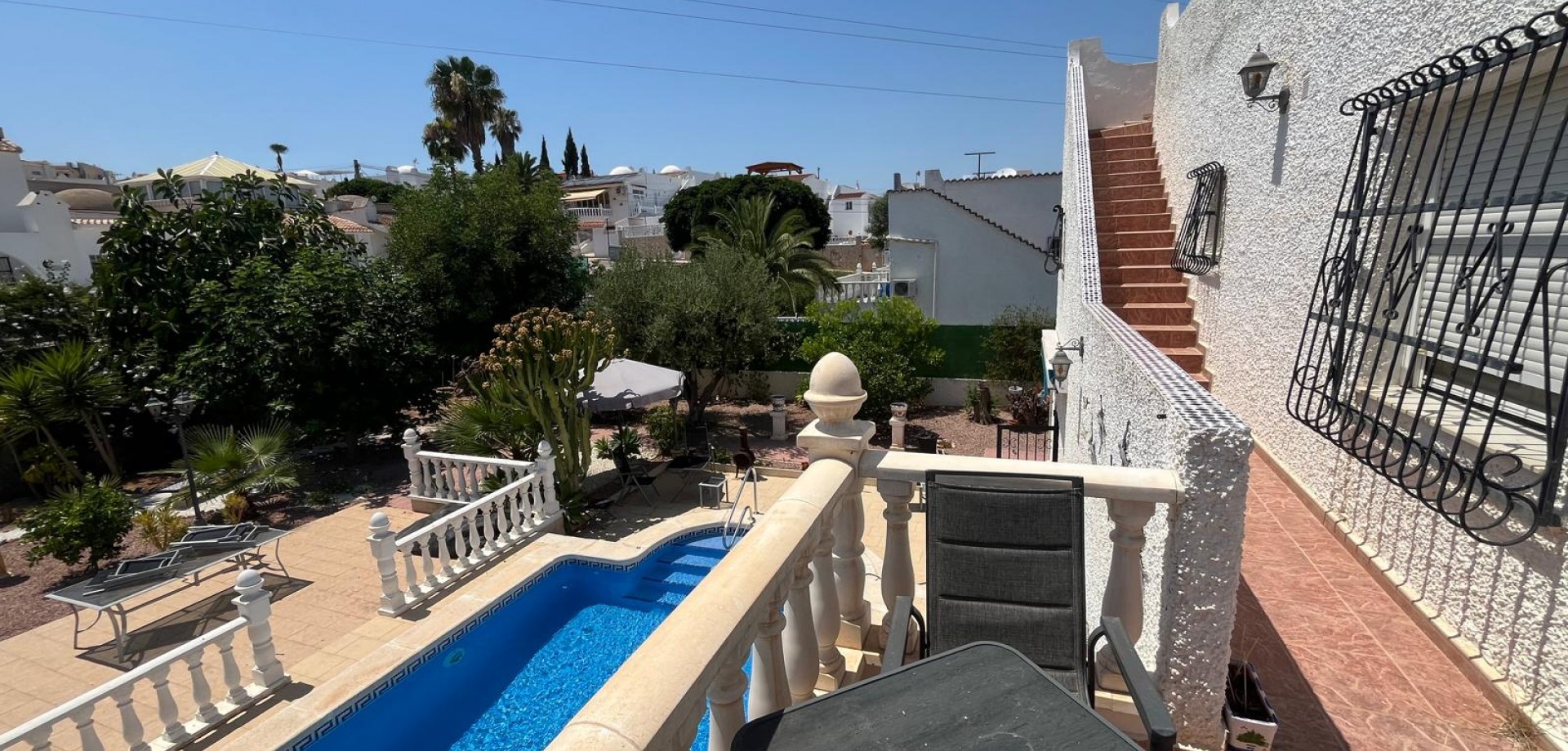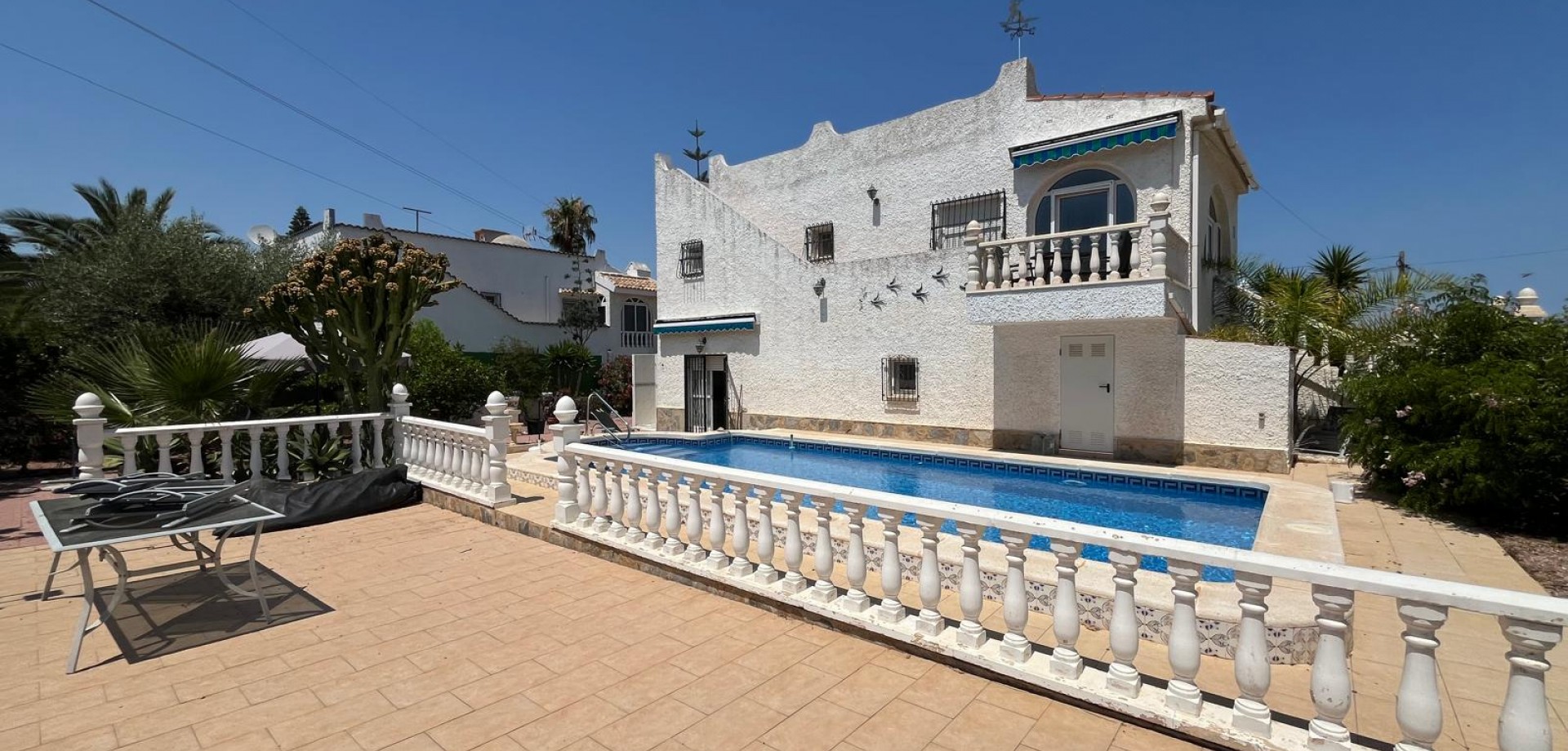 Large villa with granny flat in a quiet location Discover this impressive villa with granny flat, set on a generous plot of 700 m². With a living area of 146 m², this home offers plenty of space for the whole family. The villa has a total of three bedrooms and two bathrooms, ideal for comfort and privacy. In addition, there is a guest WC for the benefit of visitors. The two kitchens and two living rooms are perfect for socialising and family gatherings. Enjoy the warm days in your own large private pool or relax in the beautifully landscaped garden. A conservatory and solarium invite you to enjoy the outdoors all year round. The air conditioning ensures pleasant temperatures, while the storage room offers additional storage space. A car parking space is also available, making everyday life easier. This villa is in good condition and is waiting for you to discover it. Don't let this opportunity pass you by!
