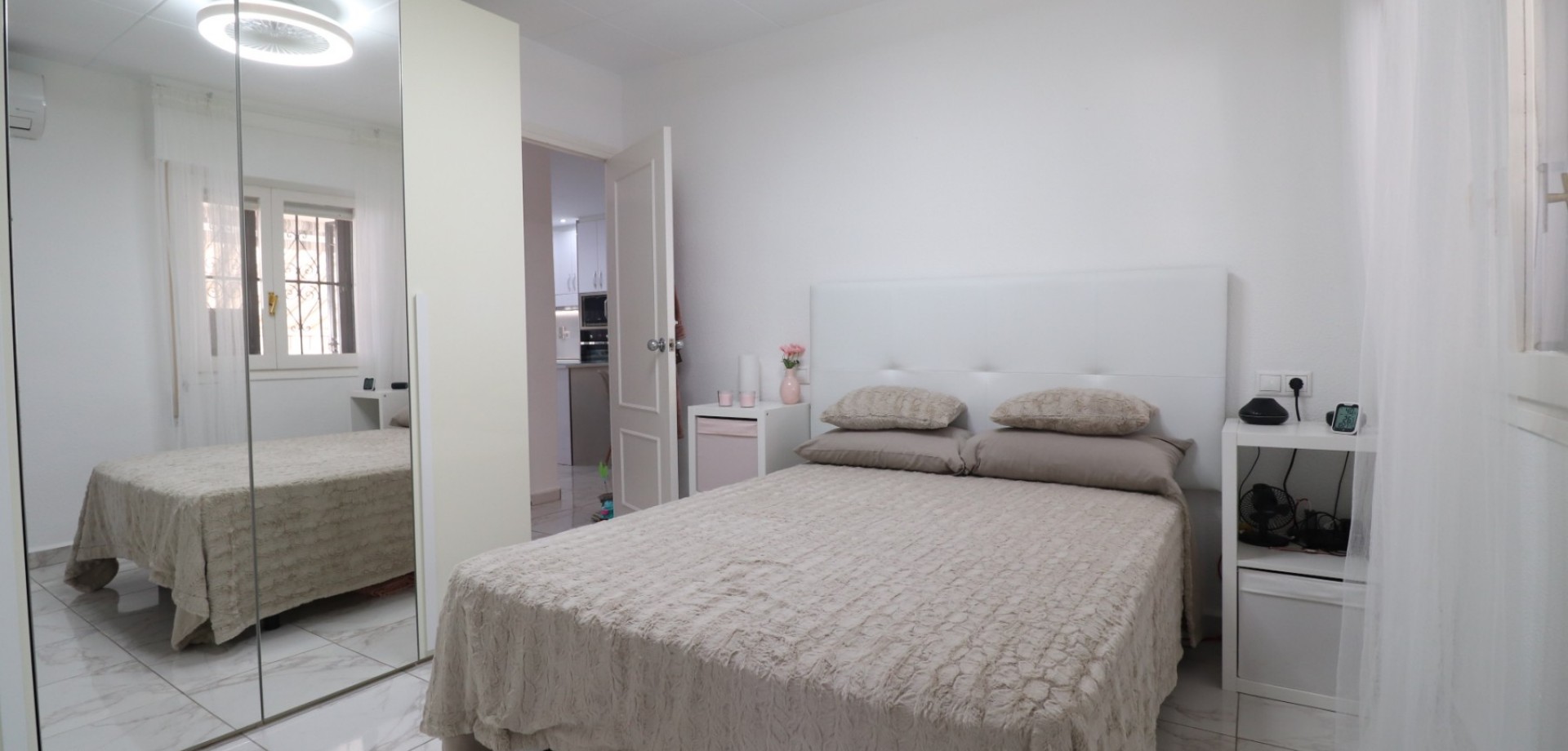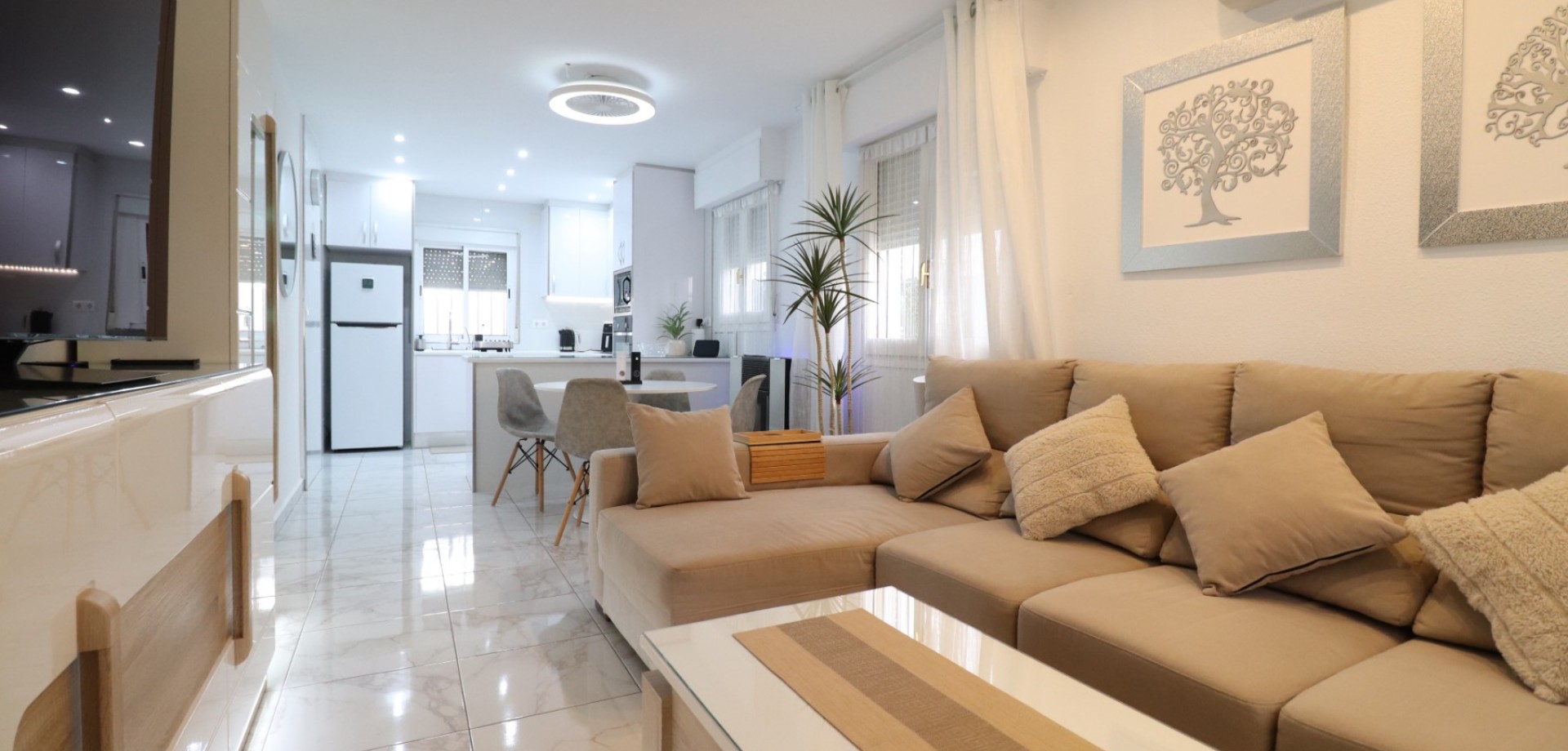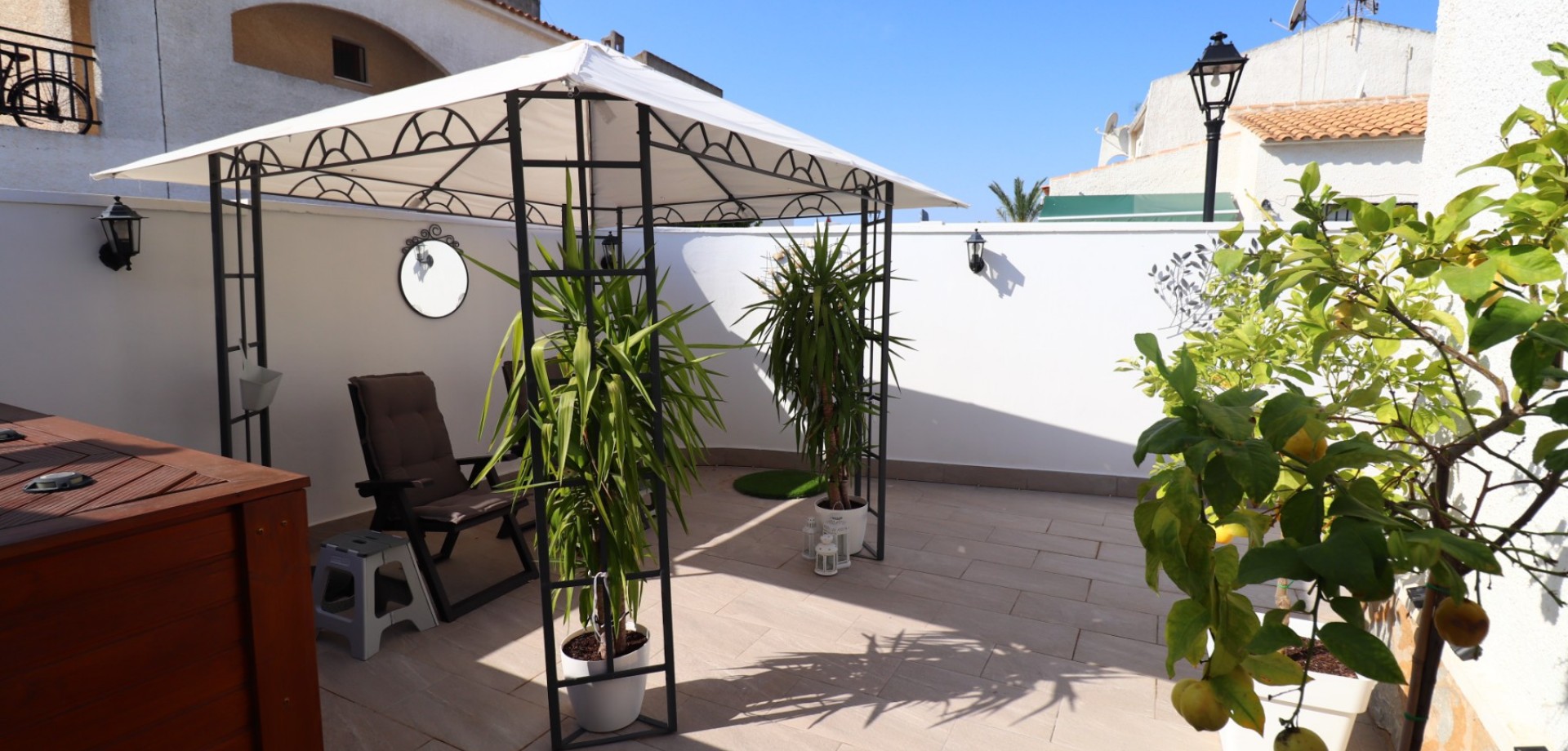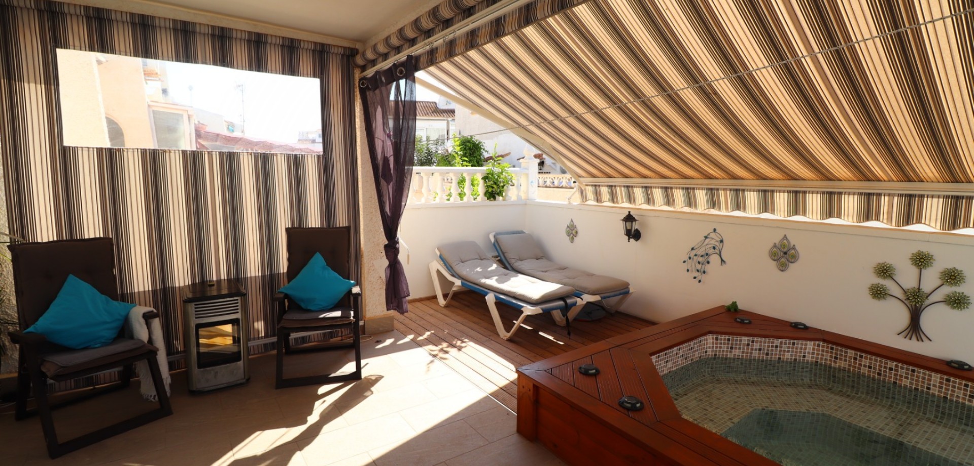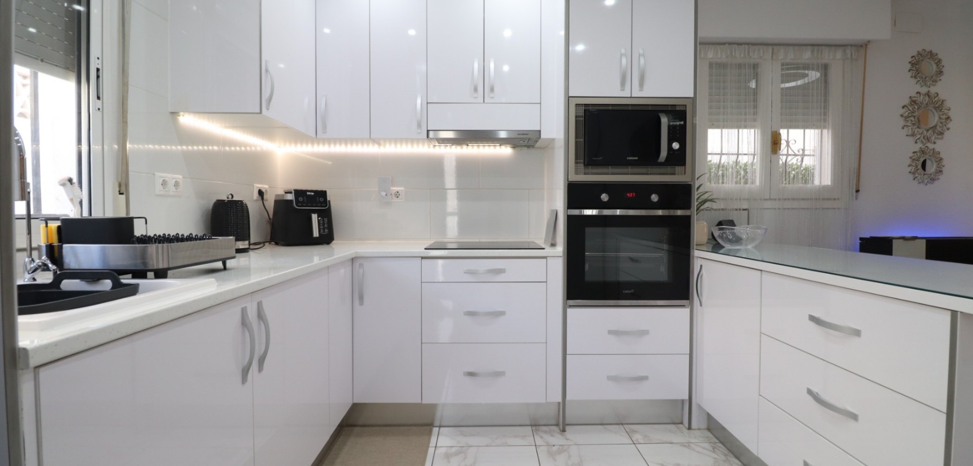 This South West Facing, Three Bedroom, Detached Villa in La Florida is located within a popular residential area, just a 2 minute walk to the nearby commercial centre with a variety of amenities. The well-known Emerald Isle entertainment venue—with bowls club, restaurant, and pool—is just a couple of minutes away, while La Zenia Boulevard, stunning beaches, and several golf courses can be reached within a 10 minute drive. Beautifully presented throughout, this single-level villa offers a 90m² build on a 210m² low-maintenance tiled plot. A covered entrance terrace leads into a bright lounge/dining room featuring a cosy pellet burner, and an open-plan fitted kitchen with breakfast bar and adjoining utility room with direct outside access. There are three double bedrooms, the master with fitted wardrobes, and two sleek modern shower rooms, one of which is en suite. The exterior space includes a private splash pool, perfect for cooling off, while residents also have access to two well-maintained communal pools. Additional features include air conditioning, making this a comfortable home year-round. An ideal full-time residence, holiday home, or rental investment opportunity on the sought-after Costa Blanca South.