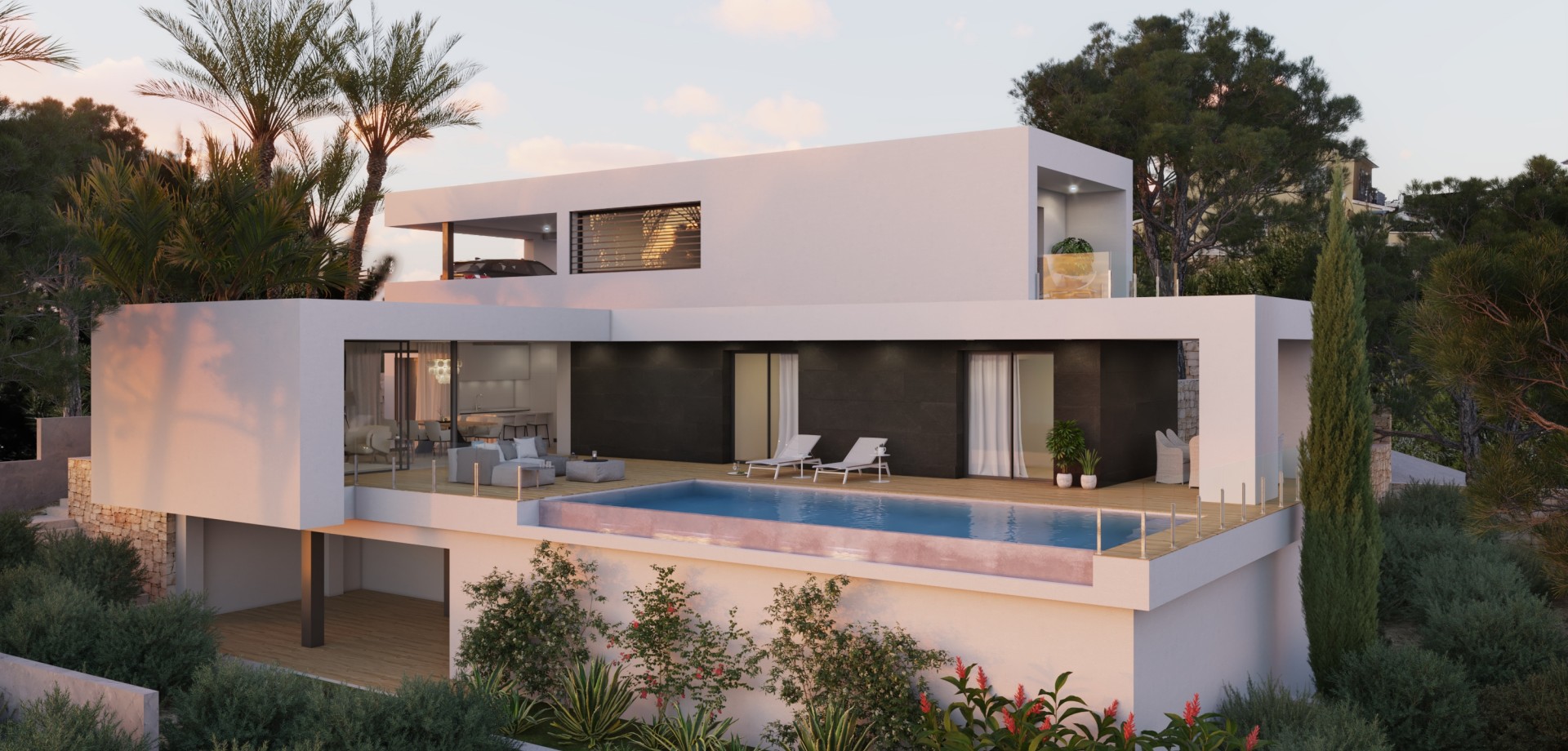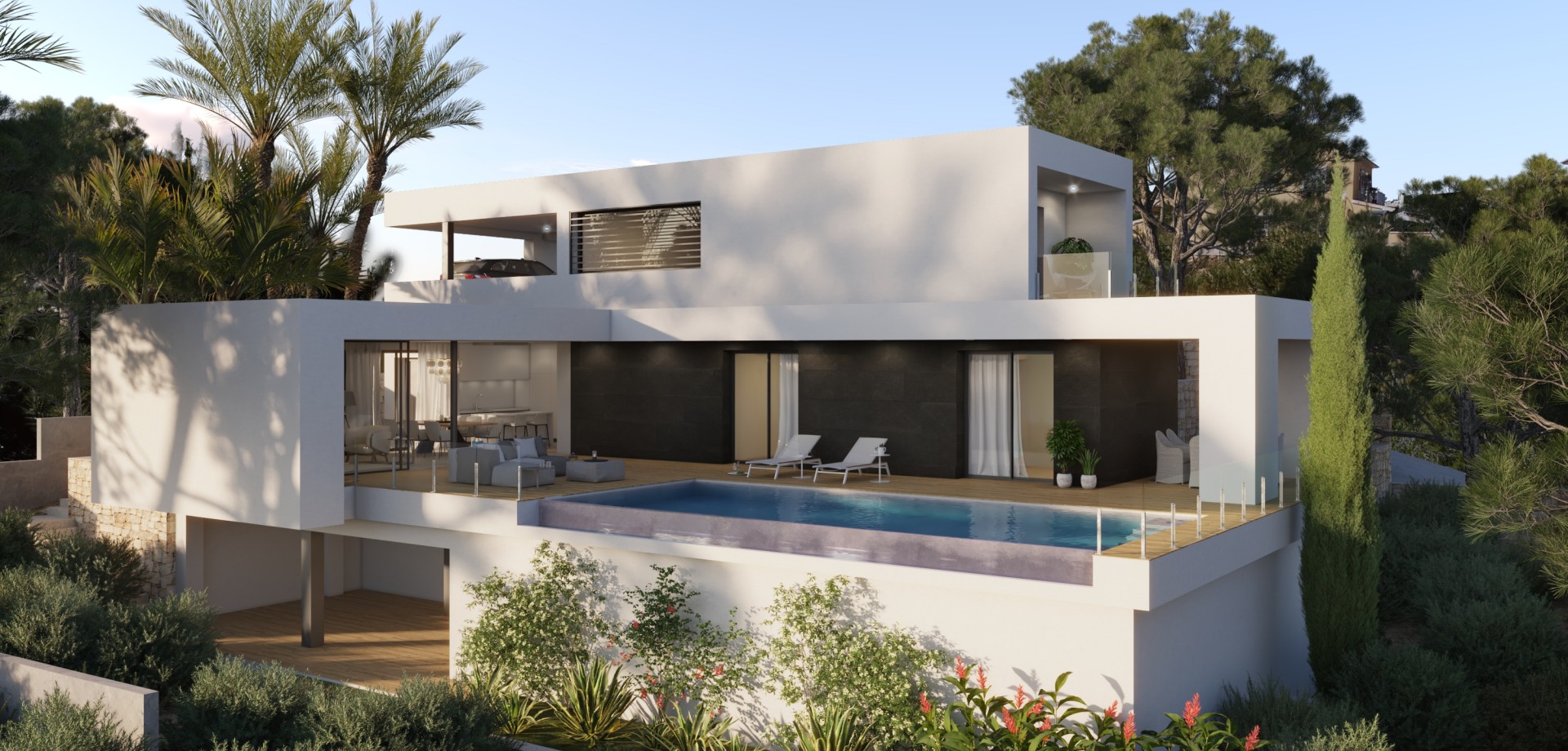 Villa Isora, located in residential Magnolias estate, offers a contemporary lifestyle overlooking the sea. Its clean and open design embraces the Mediterranean landscape, transforming every corner into a space of calm, beauty, and light. The interior has been designed to strengthen connections between the rooms and the house's surroundings. The living room's picture windows open onto a generous terrace with an infinity pool, creating a seamless sense of spaciousness. The open-plan kitchen, equipped with premium appliances, effortlessly combines functionality and style, suitable for both daily living and special occasions. The three spacious, private bedrooms offer tranquillity and foster a sense of peace, emphasising the calm that defines this home. The house is finished with a ground-floor porch that provides additional space for bedrooms, a leisure area, an office, or whatever the future owner desires. Villa Isora integrates technology and sustainability through systems such as aerothermal heating, heat recovery ventilation, underfloor heating, and alarm systems. The house is characterised by the use of high-quality materials carefully chosen to provide an efficient, comfortable, and visually harmonious living environment. Furthermore, it already holds a building permit, allowing construction to start immediately. The sea views, visible from every floor, are a defining feature of the house. The architecture frames the horizon, allowing you to enjoy the sunlight, silence, and beauty of the natural surroundings each day. Villa Isora is more than just a house: it is a place where life can be lived with serenity and style.