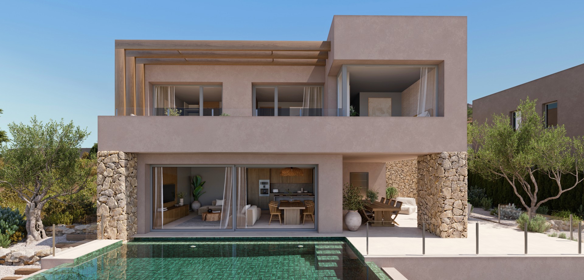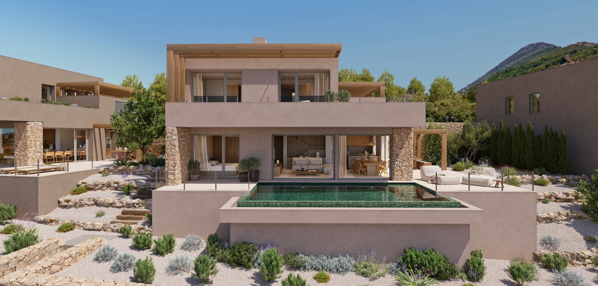 Discover Elements EcoResidences in Llíber, at the very heart of the Vall de Pop — a development that transcends architecture to offer a lifestyle in complete harmony with nature. Set amidst rolling mountains, lush vineyards, and villages steeped in tradition, this exclusive residential enclave reimagines Mediterranean living with a modern, sustainable approach, seamlessly blending with the breathtaking landscape. From its very foundations, the infrastructure has been designed using innovative and efficient techniques, aimed at creating a responsible and enduring environment. At Elements, every corner is crafted to enhance well-being and foster a sense of community: a social club with a restaurant, spa, and gym; community gardens that connect residents with the earth; outdoor sports facilities; and green spaces that invite you to enjoy fresh air and tranquillity. Within this setting, the Airen Collection emerges — the first phase of the project, featuring villas that perfectly blend authenticity, warmth, and modernity. The Airen A model is designed for those seeking ultimate comfort in everyday living. The main floor brings together all the essentials: a spacious living-dining area opening onto the terrace and pool, an open-plan designer kitchen, and a master bedroom with an en-suite bathroom. Upstairs, two additional bedrooms feature private terraces framing stunning valley views, ideal for family or guests. Outside, the experience is completed with a private pool, terraced gardens, and sun-soaked terraces that seamlessly integrate the home into the Mediterranean landscape. All of this is complemented by features that ensure both comfort and sustainability: aerothermal heating, underfloor heating, photovoltaic panels, a ventilation system with heat recovery, home automation, and an electric car charger. Airen A is more than a house — it is a home where every day is lived in harmony with nature, in an environment that invites you to savour the authentic.