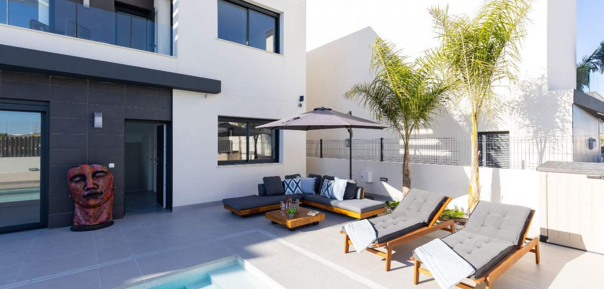For sale: Very Modern style villa with a spacious internal area of 150m2, located in the sought-after La Finca Golf area of Algorfa. This property offers three comfortable bedrooms and two modern bathrooms, making it ideal for families or those seeking extra space. The villa is unfurnished, giving you the perfect opportunity to design your dream home. Enjoy year-round comfort with a central air conditioning system. Step outside to your own private swimming pool, perfect for relaxing or entertaining guests. The home is close to local amenities, including shops, restaurants, and services, providing everything you need just a short distance away. Extra's include: electric shutters, alarm, private pool, electric gate, garage Algorfa, particularly the La Finca Golf area, is well-known for its tranquil surroundings, beautiful landscapes, and high-quality golf course. The region is popular with residents who value peace and outdoor activities while still wishing to remain close to vibrant towns and beaches. This villa is proudly offered for sale by Orange Casas. Do not miss your chance to enjoy the fantastic lifestyle that La Finca Golf offers. Contact us today for more information or to arrange a viewing.