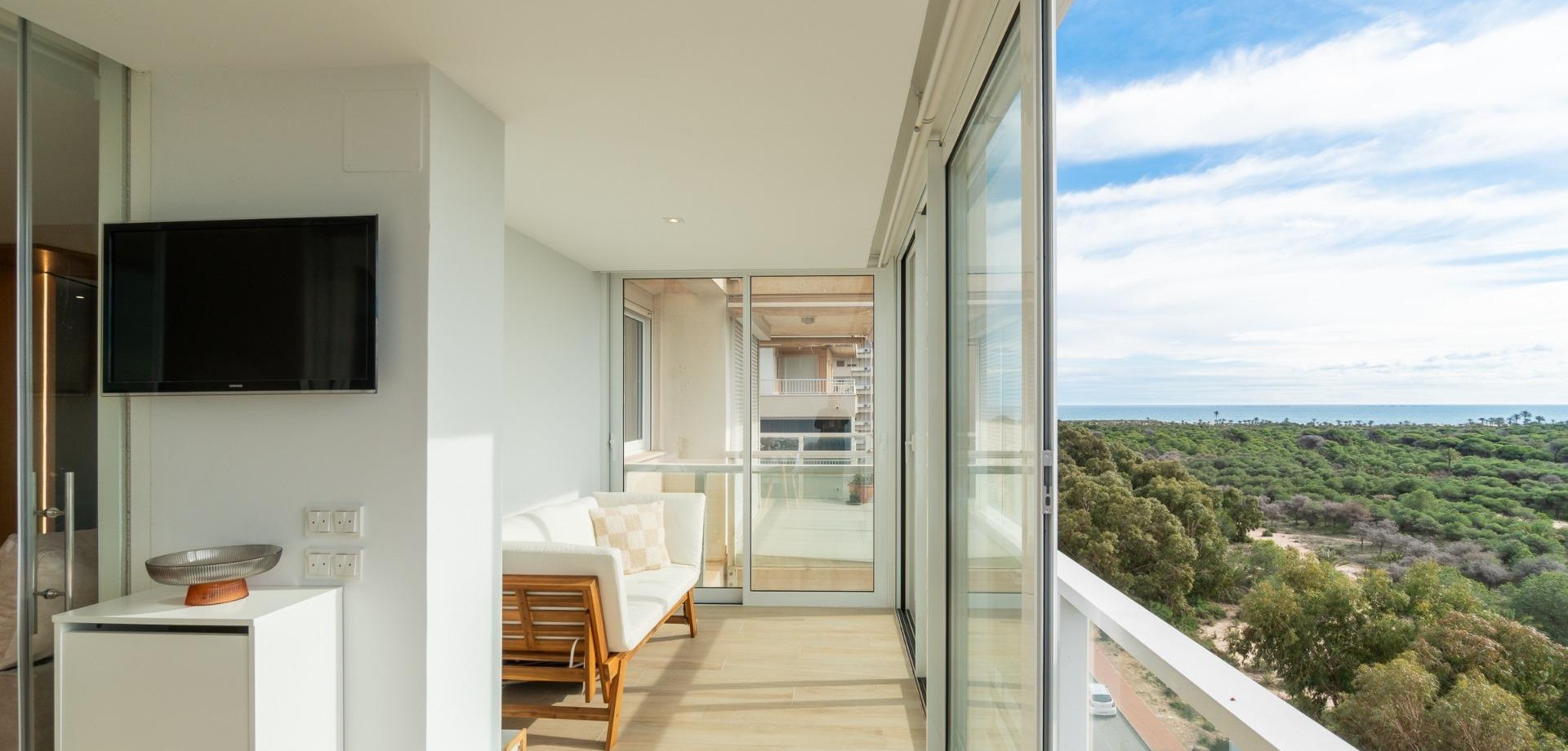 A UNIQUE INDULGENCE ON THE COSTA BLANCA. . Imagine waking up every day to views of the sea and the pine forest, breathing in the Mediterranean breeze and enjoying southern sunlight all year round.. This exclusive apartment in La Pinada, Guardamar is not just a property — it’s an experience.. . Fully renovated by an architect, featuring a carefully thought-out design that blends elegance, comfort, and functionality.. A true retreat just 600 metres from the beach, close to the marina, where every walk becomes a pleasure.. . Features to fall in love with:. . 3 spacious and bright double bedrooms. . 1 modern and stylish bathroom. . Open-plan kitchen, perfect for sharing special moments. . Stunning enclosed terrace, ideal for enjoying both winter and summer. . South-facing orientation, natural light throughout the day — a true luxury. . Sold fully furnished and equipped with appliances, ready to move in or start generating income from day one.. . Extras that make the difference:. . Communal swimming pool. . Private covered parking. . Storage room. . Privileged natural surroundings, absolute tranquility, and open views. . A smart investment:. Perfect for high-yield holiday rentals (you can set premium rates), long-term rental, or as your dream home by the sea.. . Living here means choosing quality of life, exclusivity, and authentic Mediterranean charm.. It’s not just an apartment… it’s the indulgence you deserve.