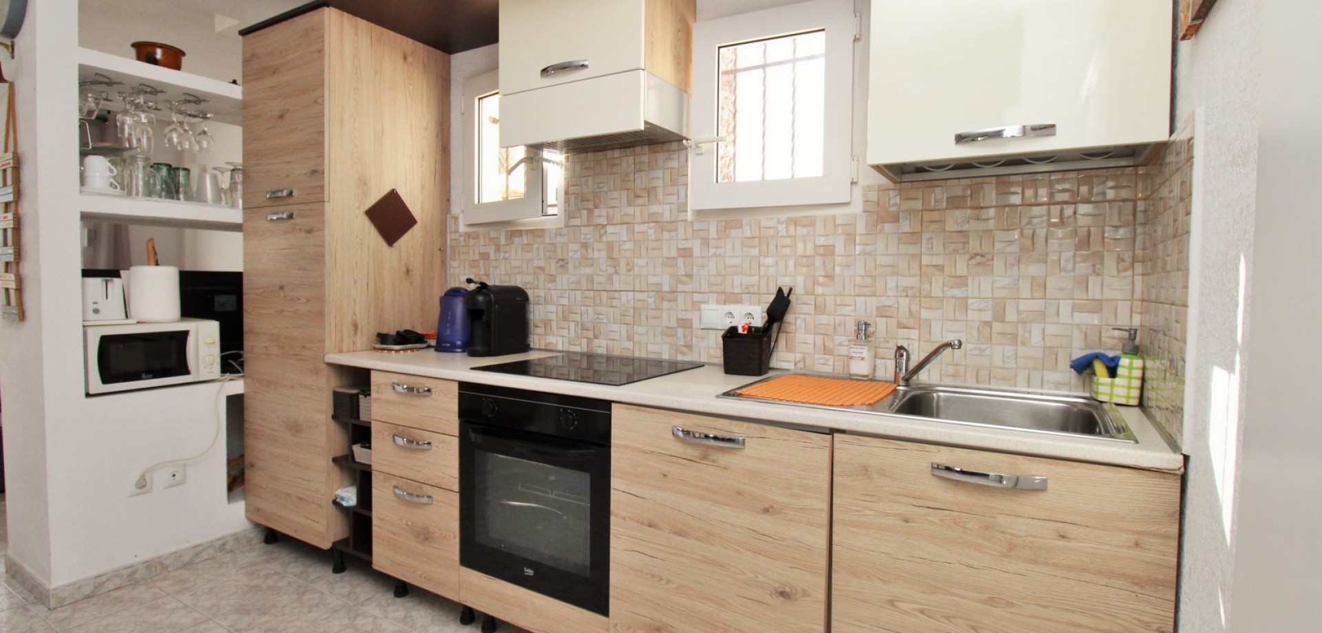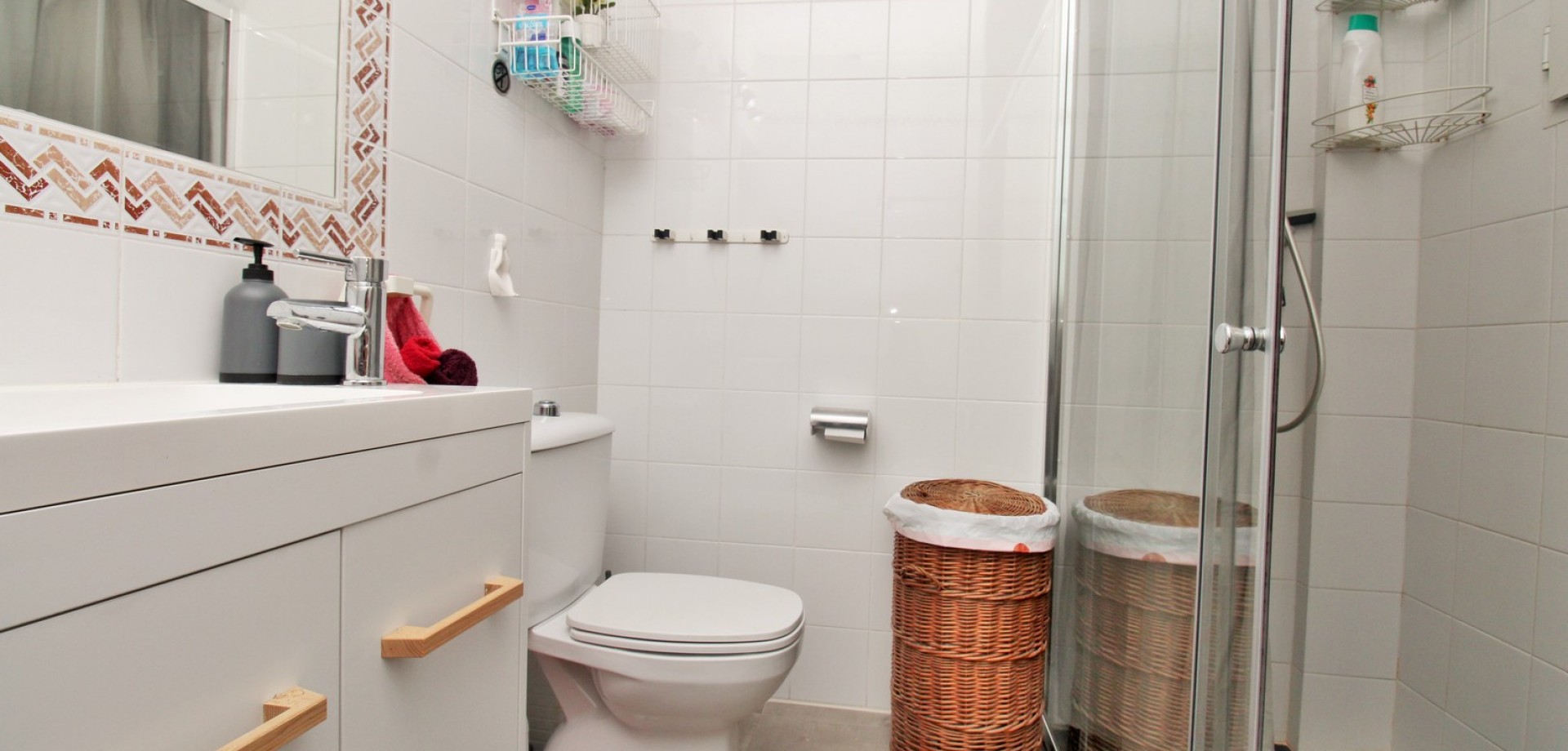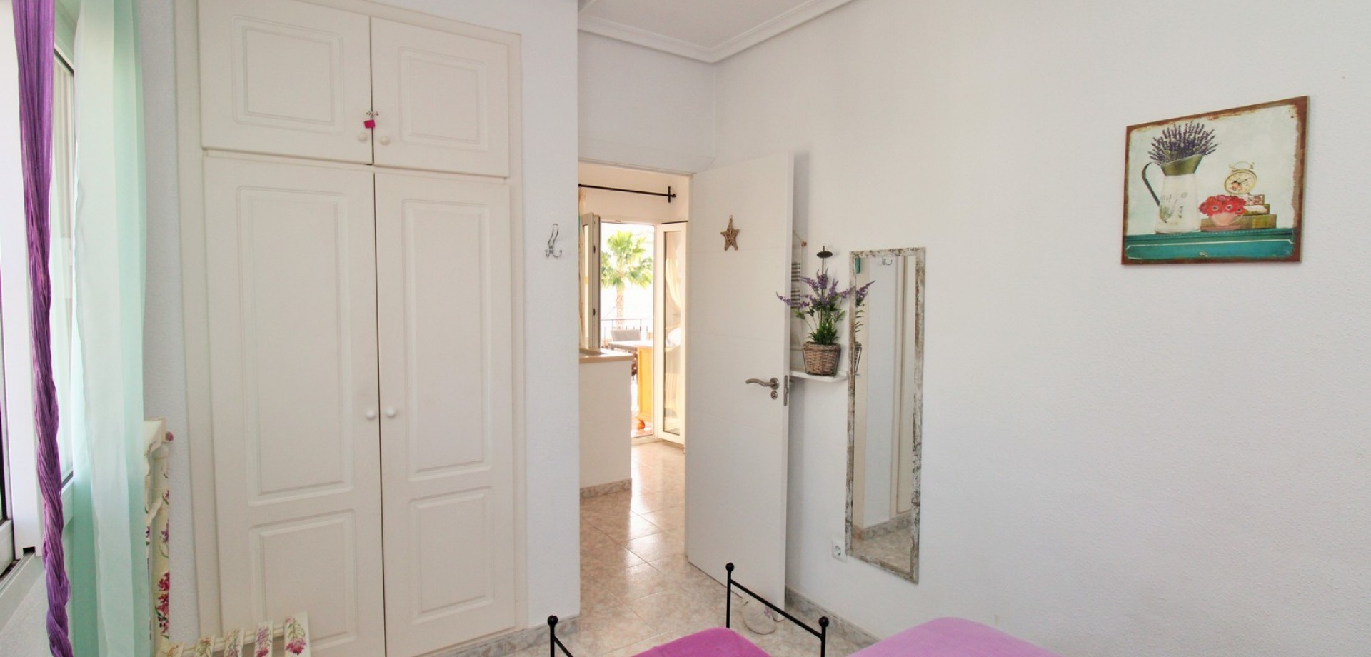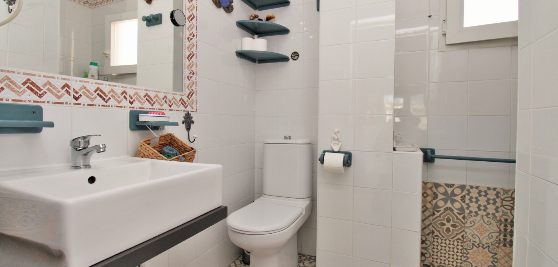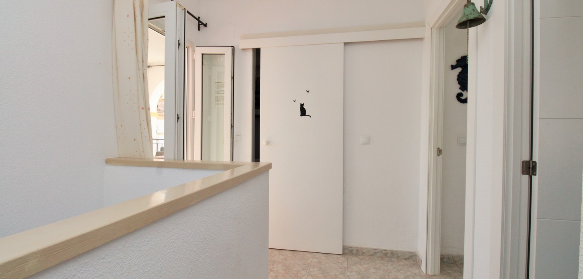 Set in the heart of highly sought-after Playa Flamenca, this beautifully presented duplex penthouse enjoys an exceptional location just under 700 metres from the sandy coves of Cala Estaca and Cala Mosca, and less than 200 metres from all daily amenities, including Mercadona supermarket, bars, restaurants, gym and the local town hall — everything you need is quite literally on your doorstep. Situated within a secure, gated urbanisation, residents benefit from immaculately maintained landscaped gardens and 2 stylish communal swimming pools, creating a peaceful Mediterranean setting despite being so close to the action. The property is designed to maximise outdoor living, offering multiple private terraces with open views of the pool and gardens—ideal for relaxing, dining, or entertaining in the sunshine. Inside, the main living level features a bright open-plan lounge, dining area and kitchen, flooded with natural light and opening directly onto a terrace overlooking the pool. This floor also includes a double bedroom with fitted wardrobes and a modern family bathroom with a walk-in shower, thoughtfully designed to accommodate utilities. The upper level comprises two additional double bedrooms and a second contemporary bathroom, both with walk-in showers. The home includes a private rooftop solarium with a built-in BBQ and beautiful views across the communal areas and the Mediterranean Sea — a perfect spot for evening sunsets or hosting friends. An ideal choice for those seeking a quality home in a prime coastal location, whether as a permanent residence, holiday retreat or investment, with the beaches, amenities and lifestyle of Playa Flamenca all within easy walking distance.