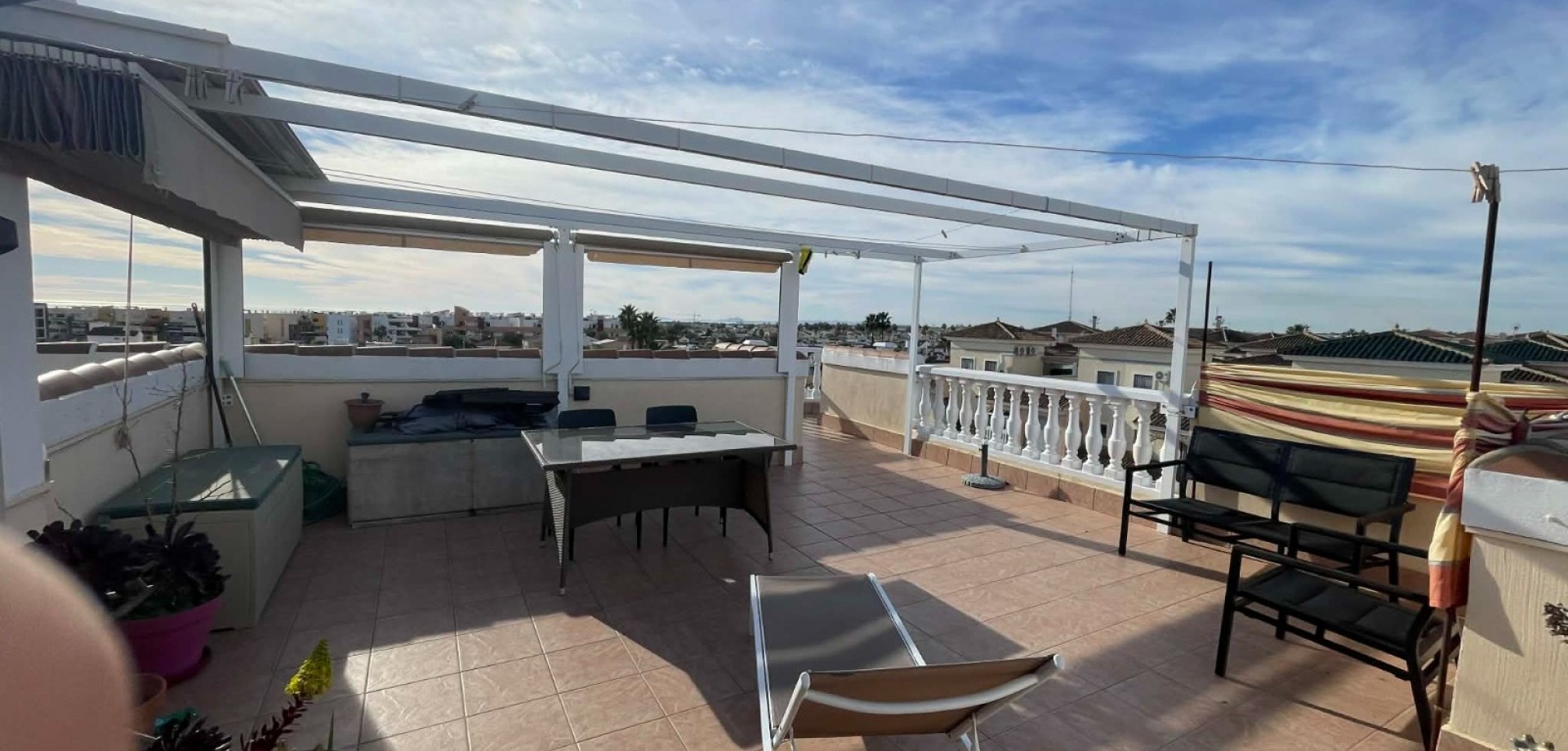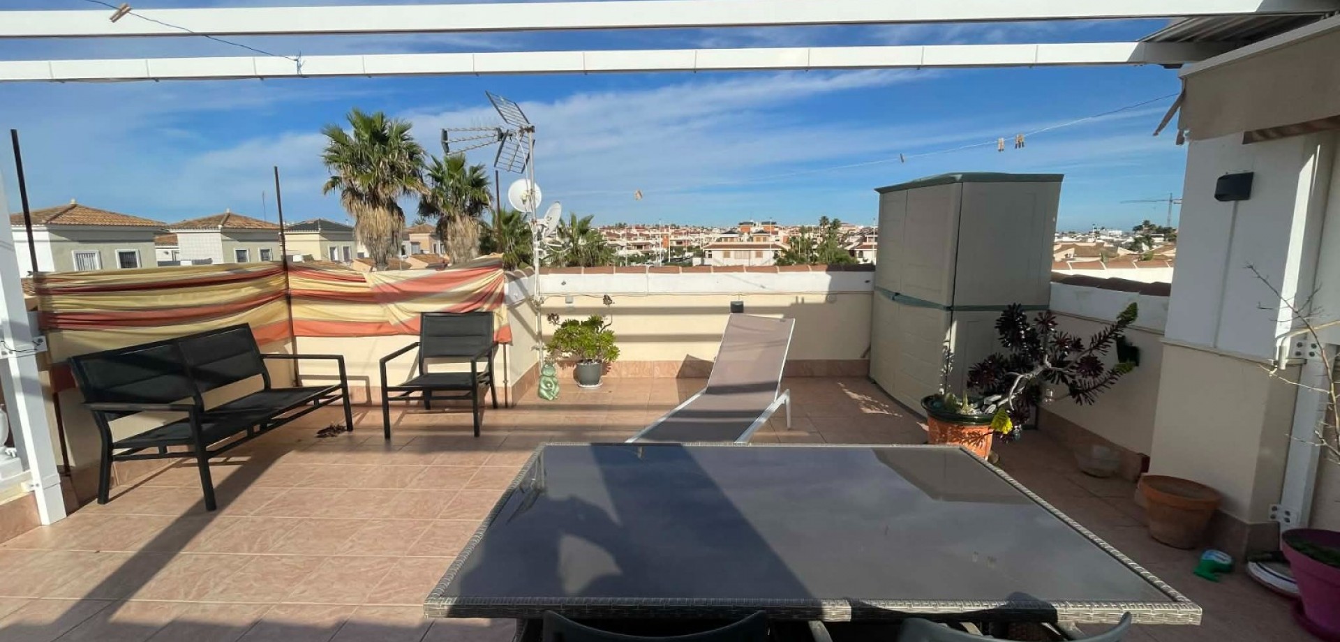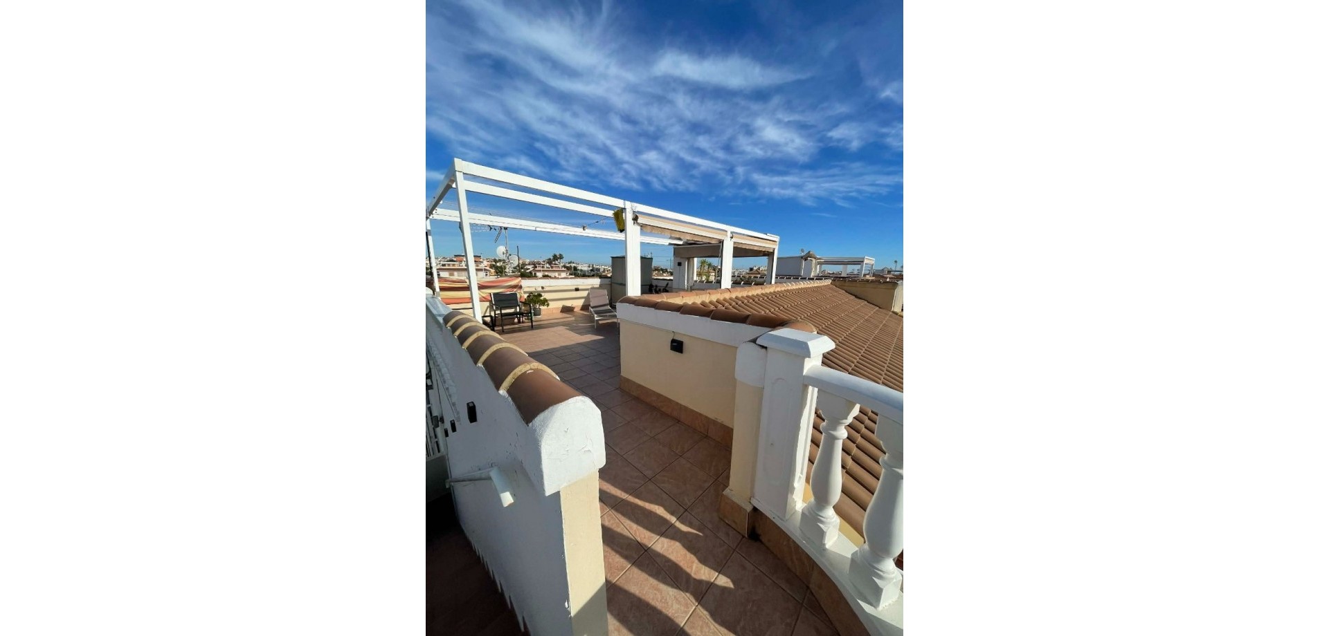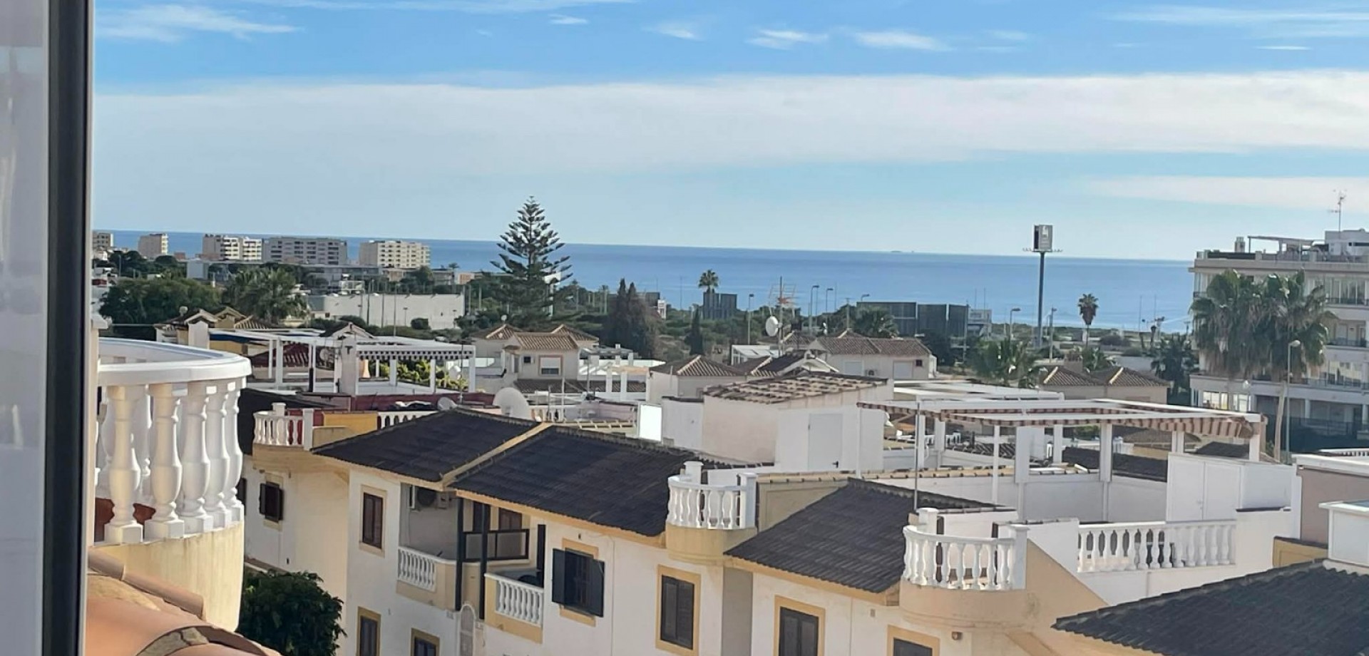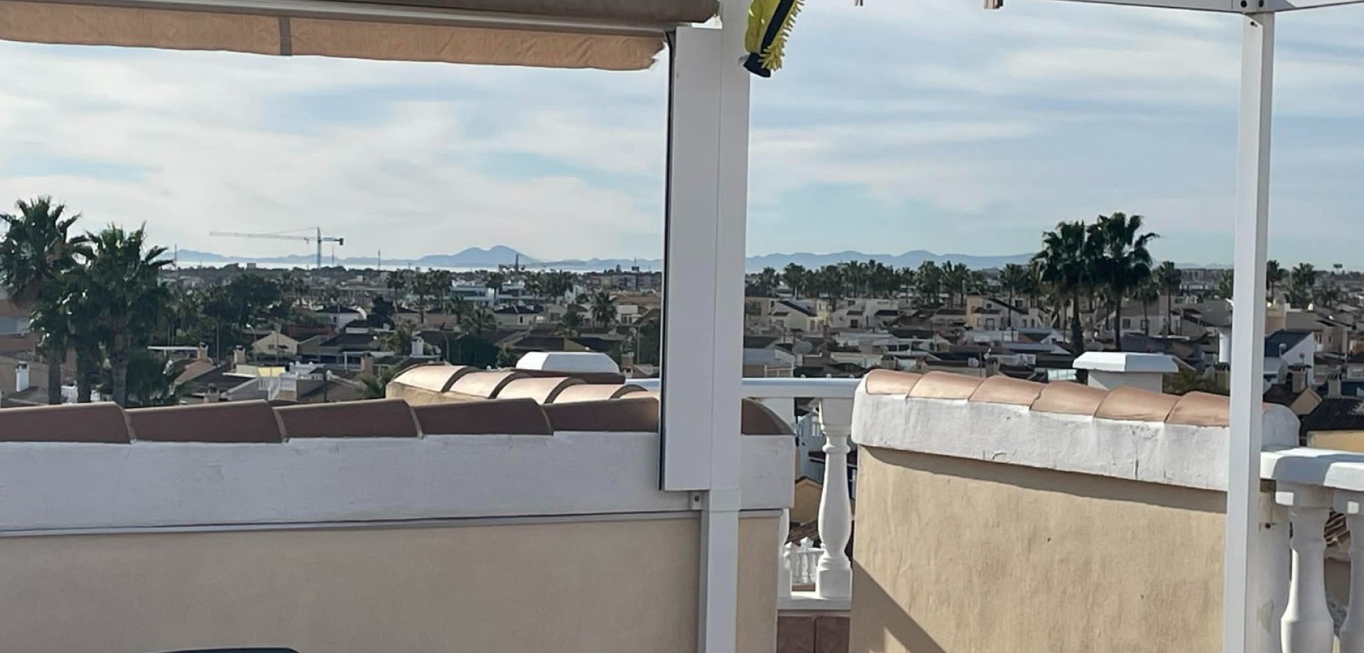 This ready-to-move-in apartment offers 2 bedrooms and 1 bathroom and is located in the highly sought-after area of Orihuela Costa – Los Altos. The property features an open-plan kitchen seamlessly connected to a cozy living area, perfect for relaxing and entertaining. The highlight of this apartment is the large private rooftop terrace, boasting breathtaking panoramic views from La Manga to Torrevieja