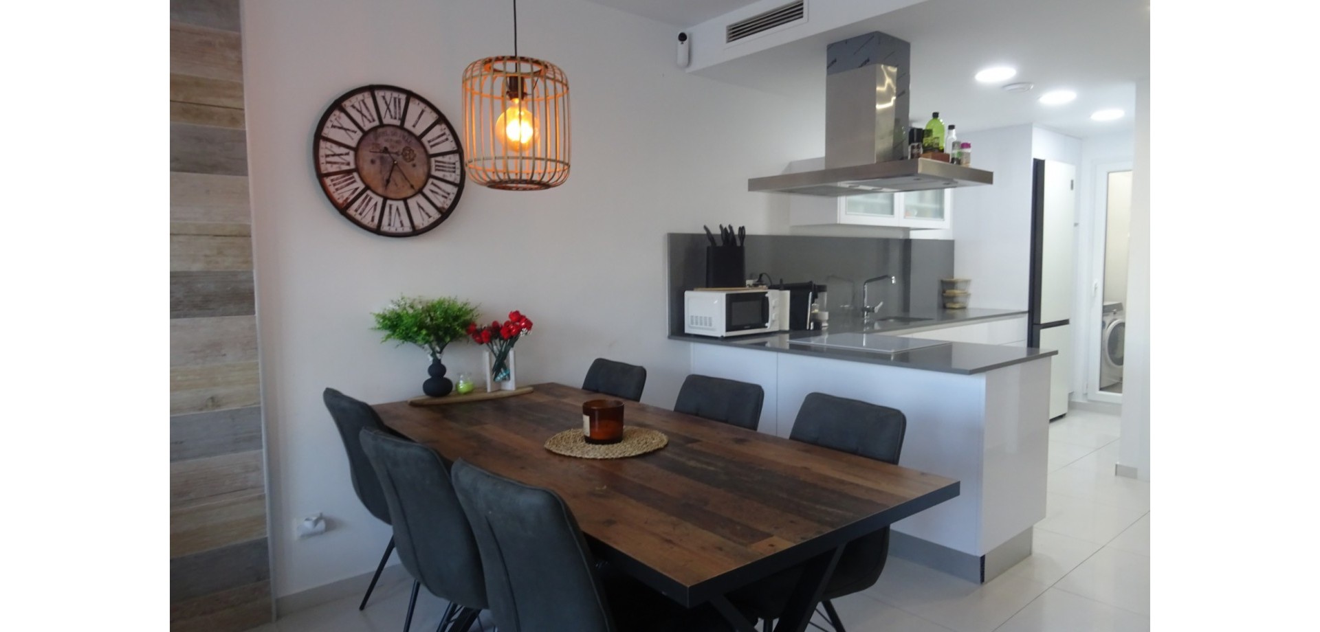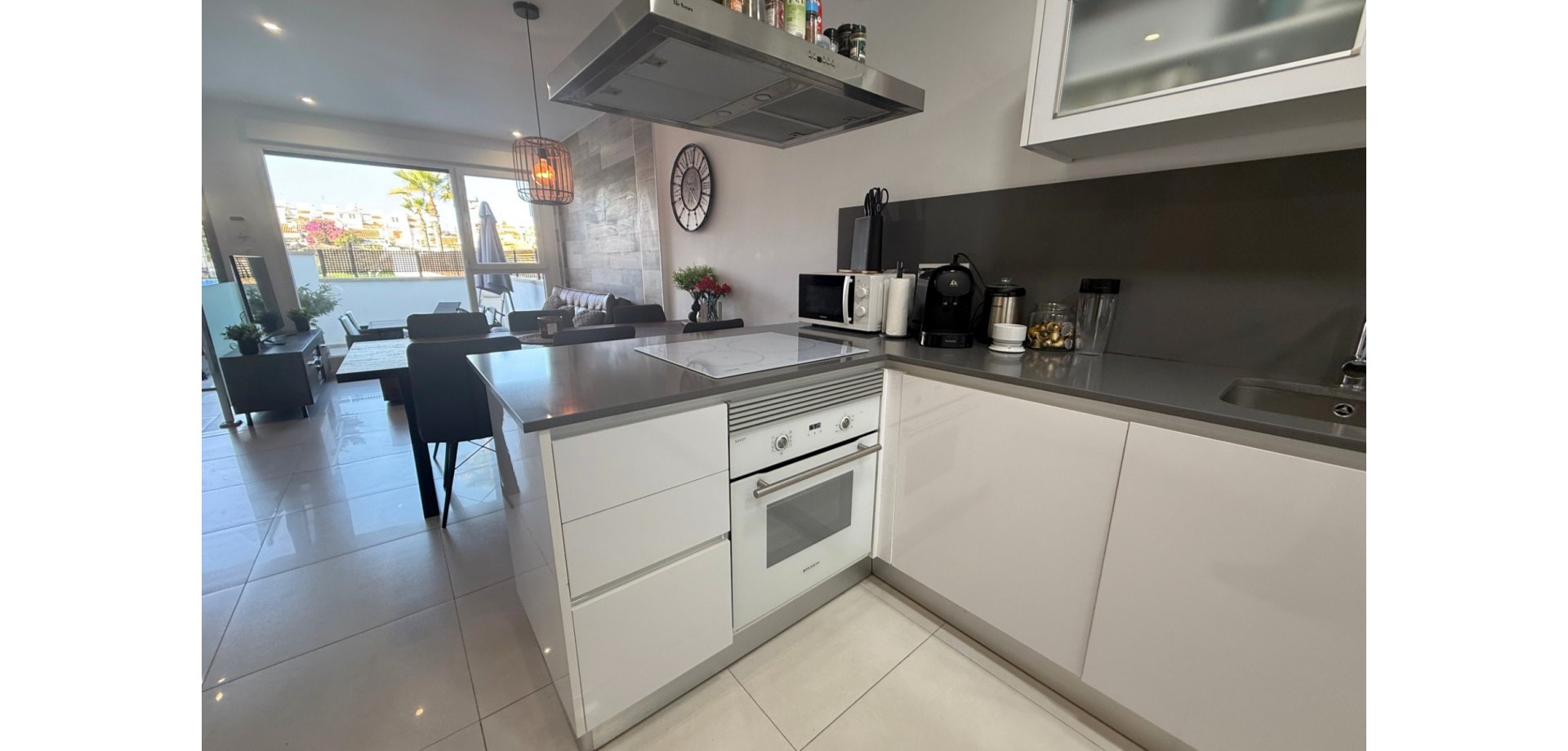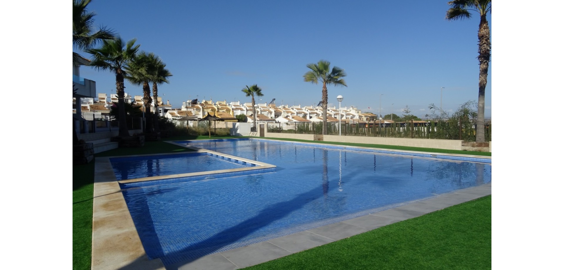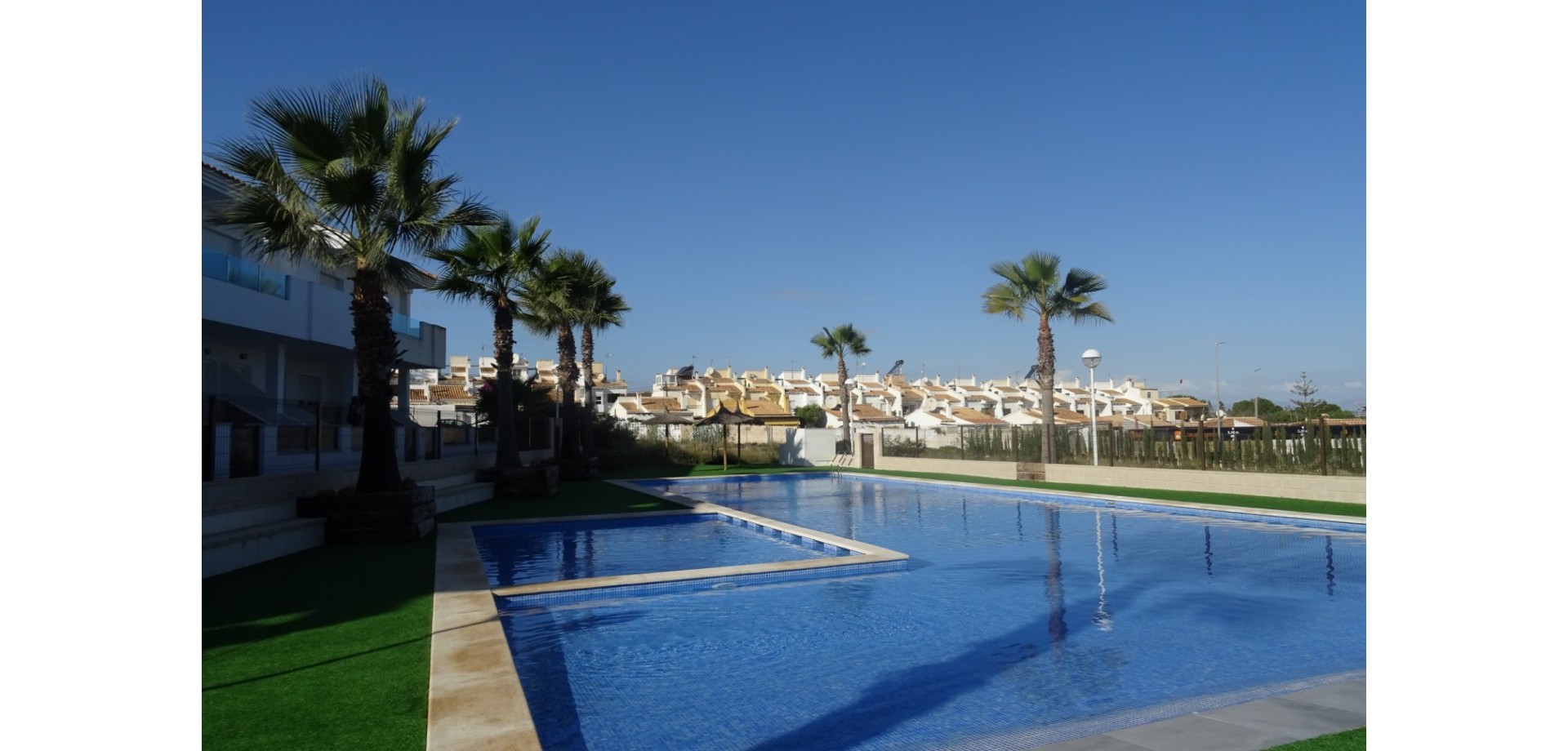 A stylish and well-designed townhouse in Los Balcones on the Costa Blanca, sold fully furnished. The property is arranged over two floors and offers three spacious bedrooms, three fully equipped bathrooms, and a bright open-plan kitchen connected to a cozy living area. There is access to a terrace as well as a rooftop solarium where you can enjoy the sun and views. The complex features a well-maintained communal swimming pool, and the property includes a designated parking space. Los Balcones is a popular residential area on the Costa Blanca, located just south of Torrevieja, known for its peaceful atmosphere, excellent services, and great location. The area offers a wide range of shops, restaurants, cafés, pharmacies, and other everyday services within walking distance, as well as close proximity to schools and healthcare. Nature lovers will appreciate the nearby Torrevieja salt lakes, famous for their scenic walking paths. Los Balcones is only a short drive from Mediterranean beaches, golf courses, and the center of Torrevieja, with good transport connections and easy access to Alicante Airport. Contact us for more information about this wonderful property!