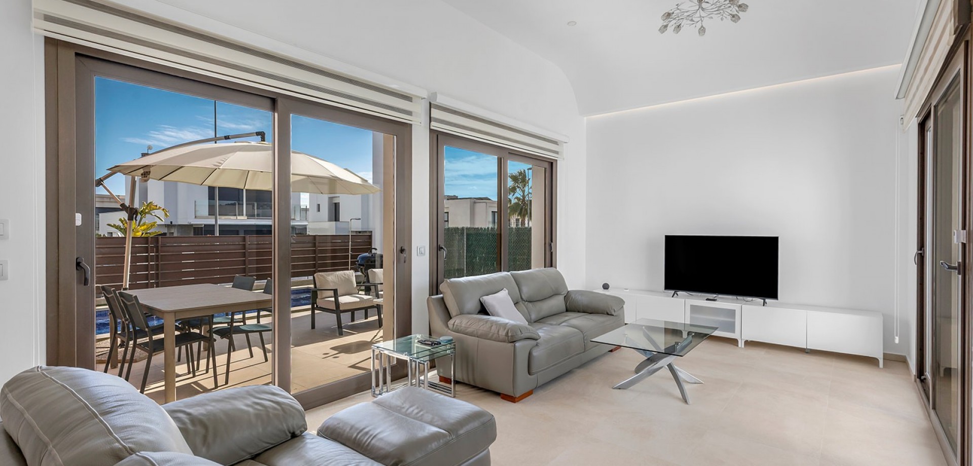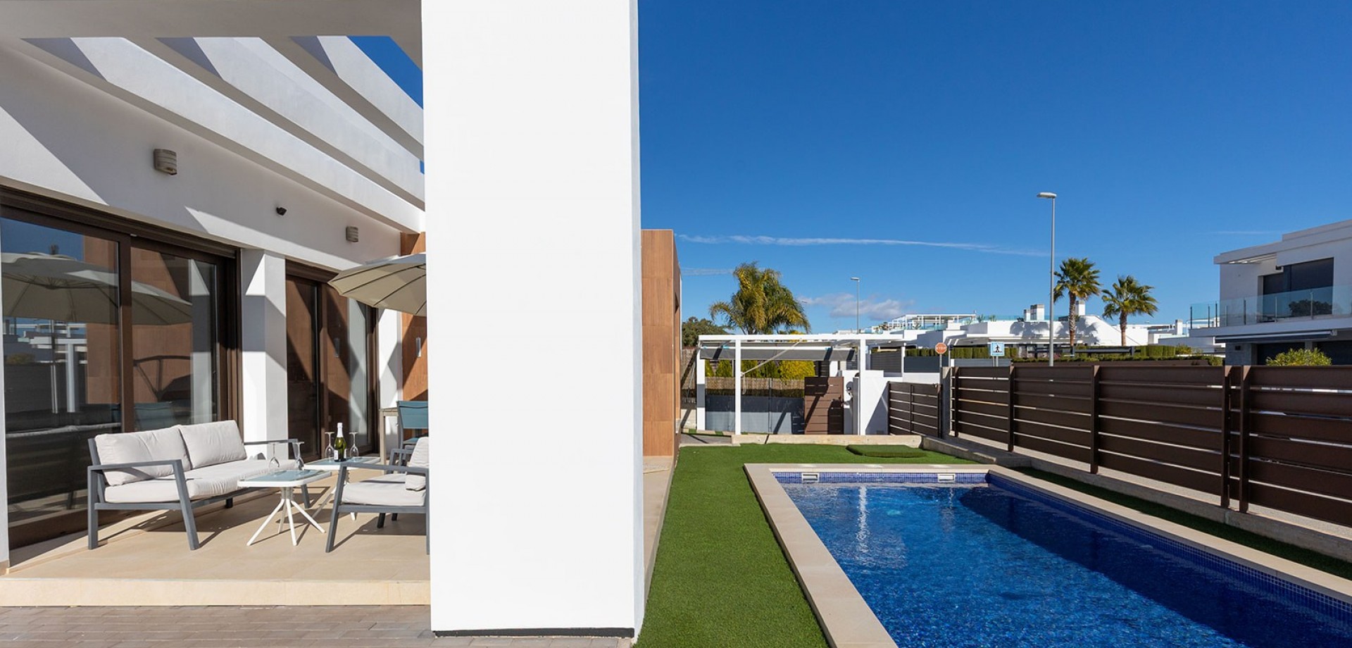 Discover this exclusive villa for sale in the prestigious Vistabella Golf resort, offering the perfect combination of modern comfort, privacy and Mediterranean lifestyle. The property features three spacious bedrooms and two contemporary bathrooms, making it ideal as a permanent residence, holiday home or investment opportunity on the Costa Blanca.