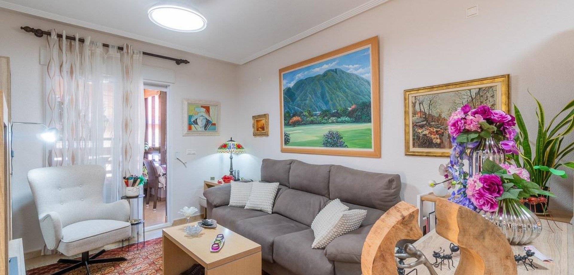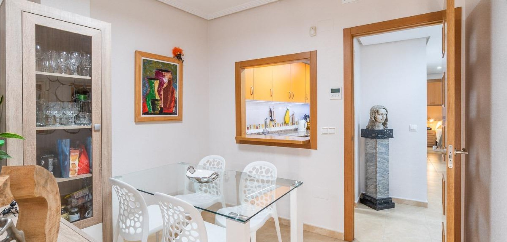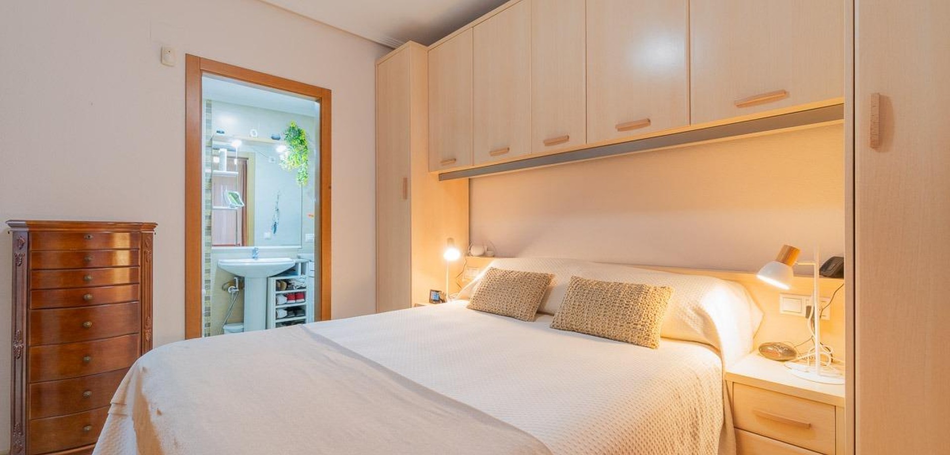 Discover this magnificent apartment located in the heart of Torrevieja, just 520 meters from the sea, very close to the seafront promenade and the beaches, with all amenities within walking distance — no car needed for everyday life.. . The property offers 89 m2 of built area and a pleasant west-facing orientation, ideal for enjoying natural light and beautiful sunsets. It is ready to move into, meticulously maintained and finished with excellent qualities.. . It features two spacious double bedrooms, both with built-in wardrobes, one of them with an en-suite bathroom, providing extra comfort and privacy. In total, the apartment has two full bathrooms, perfect for daily living and hosting guests.. . The kitchen is delivered fully equipped with appliances included, ready for immediate use. The living room opens onto a closed balcony, a versatile additional space ideal as a relaxation area, home office, or reading corner all year round.. . In terms of comfort and features, the property includes:. ✔️ Hot and cold air conditioning system. ✔️ Water softener. ✔️ Alarm system. ✔️ Reinforced security door. . The building also offers a communal rooftop solarium, where you can enjoy magnificent views, perfect for relaxing outdoors and soaking up the Mediterranean sun.. . Located in a lively area surrounded by amenities:. Shopping centers and all kinds of shops. Schools. Medical centers. Green areas and tree-lined surroundings. Children’s play areas. . Excellent public transport connections are available, with nearby bus stops providing easy access throughout the city.. . An ideal home for year-round living or holiday enjoyment by the sea, with beaches, leisure, services, and the city center just a short walk away.