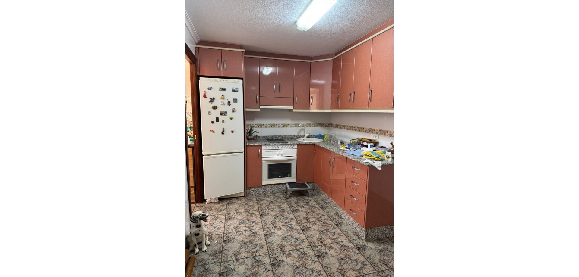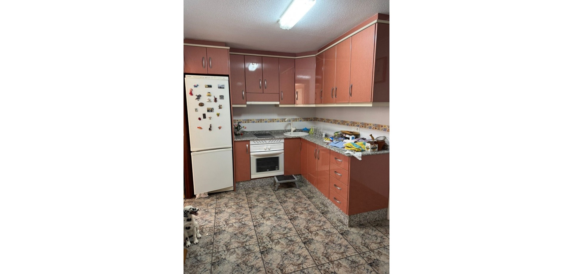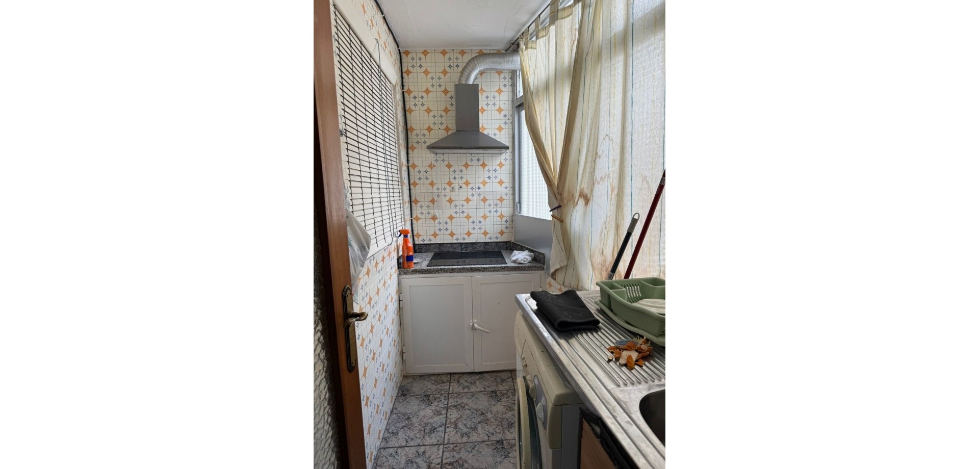 The independent kitchen is spacious and practical, offering plenty of storage and work surfaces. From here, you access a closed gallery, a versatile area that can serve as a laundry room, secondary kitchen, or additional storage space.