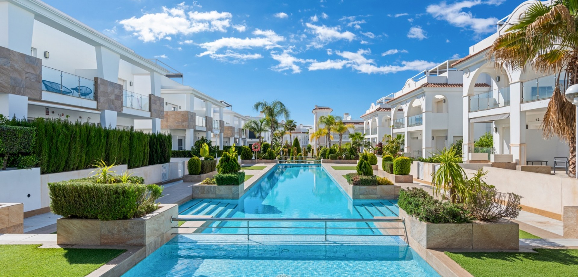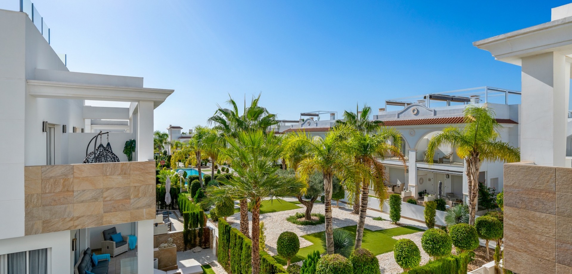 The entire development stands out for its high-quality finishes – modern interiors, elegant materials, full equipment, and carefully selected furniture create an atmosphere of luxury and comfort. Residents can enjoy a beautiful communal swimming pool, surrounded by well-maintained gardens and relaxing leisure areas, ideal for soaking up the Mediterranean lifestyle.