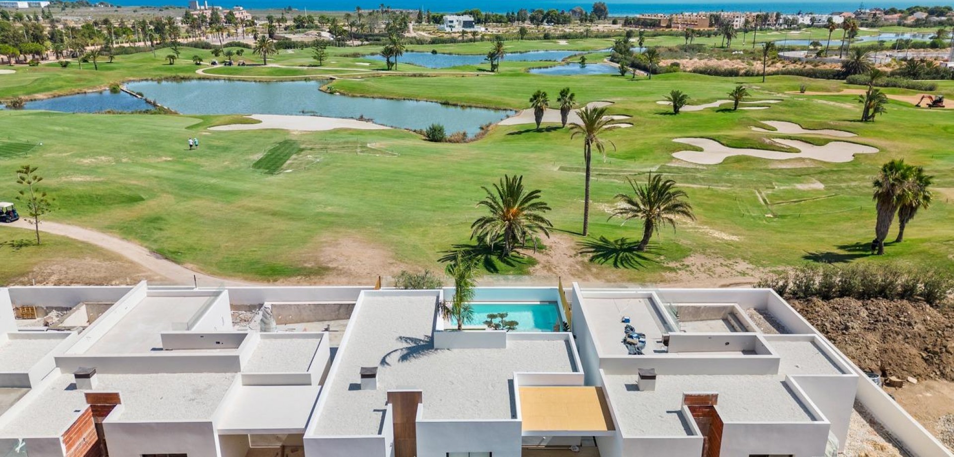 New Build Villas and Apartments in Los Alcázares Discover a new residential complex in Los Alcázares, Murcia, featuring 16 modern apartments and penthouses with 2 or 3 bedrooms, alongside 8 exclusive villas. This development perfectly blends contemporary design, high quality, and functionality. Its unbeatable location offers stunning views of La Serena Golf and the Mar Menor. Luxurious Villas with Modern Amenities The villas include 3 spacious bedrooms, 2 bathrooms, an open-plan kitchen integrated with the living room, fitted wardrobes, a large terrace, a private pool, and a parking space. Some units also feature a basement, and a solarium is available as an option. Prime Location by La Serena Golf Course Located in the heart of the prestigious La Serena Golf course, known for its unique combination of lakes and lush greenery, the residential area offers a tranquil lifestyle. The golf course's strategic design incorporates water features in 16 of its 18 holes, providing a challenging yet enjoyable experience for golfers. Uniquely, the course is within walking distance of Los Alcázares town center, offering the perfect balance of peace and accessibility to local services. Nearby Points of Interest La Serena Golf: 0 km Mar Menor Beach: 1 km Murcia Airport: 25 km Cartagena: 21 km Local Shopping Center: 4 km Alicante Airport: 55 km