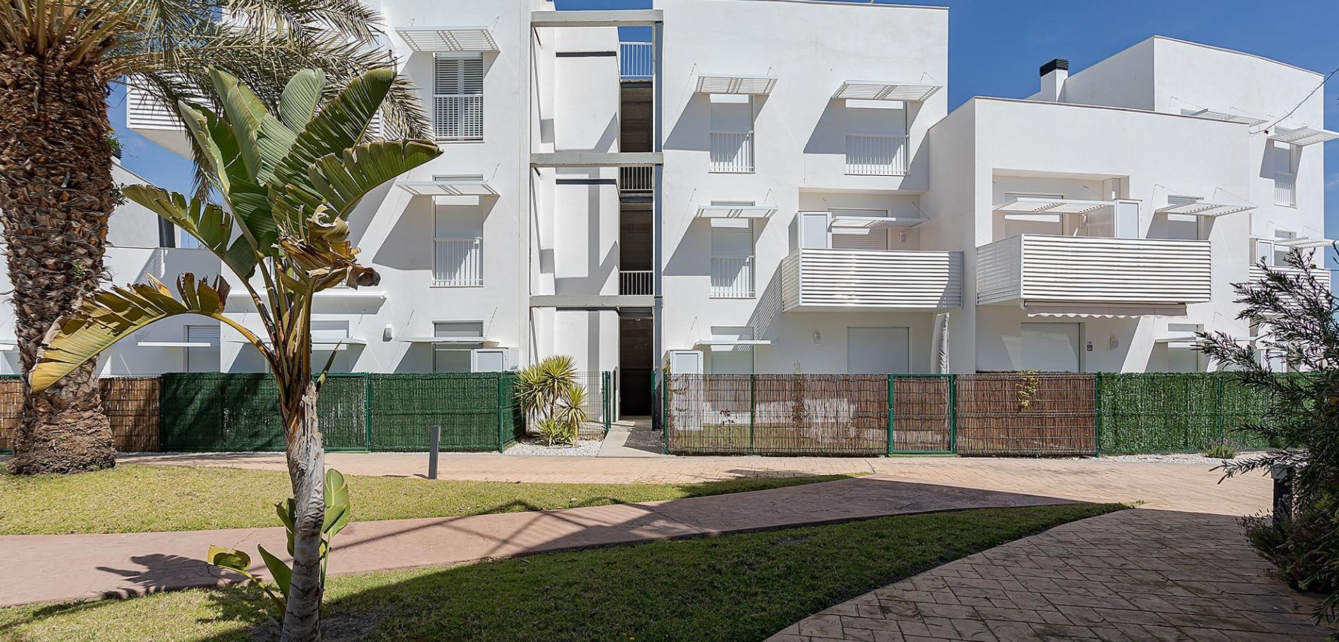 NEW BUILD RESIDENTIAL COMPLEX IN VERA New Build residential of apartments in Vera just 400m from the huge Vera beach named "El Playazo". The typologies are ground floor with two private gardens, one in each orientation, which allows you to enjoy sun or shade whenever you want depending on the time of day or the season of the year. The first floors have terraces and the penthouses have large solariums. All the apartments have extra height ceilings (2.95 m) providing a great feeling of spaciousness. The kitchen comes fully furnished and equipped integrated with the living-dining area with a bar area. The doors and fitted wardrobes are lacquered in white and the floor is made of laminated wood. The hot-cold air conditioning and the hot water are generated by a state-of-the-art DAIKIN Aerothermal device, a technology that saves up to 70% of electricity consumption compared to traditional systems. All bathrooms come with a shower instead of a bathtub, with recessed mirrors and also with a stone countertop and glass partition in the main bathroom. The blinds in the living room and master bedroom are electric, hermetically sealed and with adjustable slats. The gardens and solarium are delivered with the floors finished combining artificial grass and a beautiful paving imitating wood. Each house includes a private outdoor parking space. Each block of the promotion has an independent elevator. Both the buildings and the apartments have a series of bioclimatic architecture characteristics (orientation, insulation, windows and shutters, pergolas) that allow optimal natural regulation of ventilation, temperature and light throughout the different seasons of the year. The communal areas are made up of pedestrian squares and green areas, with a large swimming pool for adults and another for children in the central square. The entire urbanization is free of architectural barriers for the disabled. Here tranquillity and relaxation are guaranteed. Vera is one of the best naturist places in Europe, recognized for the quality and purity of their waters. It offers six kilometres of beaches (Las Marinas-Bolaga, Puerto Rey, El Playazo, Quitapellejos). Vera bordering with the famous tourist destinations such as Mojacar and the Almanzora Caves. Residential complex located about 1,5 hour drive away from Murcia - Corvera airport and about 2 hours away from Alicante airport.