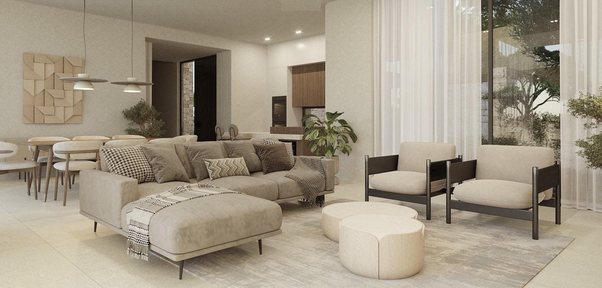 Luxury New Build Villa with Sea Views in San Jaime, Benissa Exclusive Residence in a Prime Costa Blanca Location Located in the prestigious San Jaime area of Benissa, this exceptional new build villa offers sea views, privacy and contemporary Mediterranean design just 2 km from the beach. Set on a quiet cul de sac, the property guarantees tranquility while remaining close to essential services and leisure facilities on the Northern Costa Blanca. San Jaime is one of the most sought after residential zones in Benissa Costa, known for its elegant villas, green surroundings and proximity to golf courses, beaches and charming coastal towns. The villa sits on a generous 1021 m2 plot with a total built area of 351 m2 and is currently under construction with the structure completed. Thoughtfully Designed Over Three Levels This modern villa is distributed across three carefully planned floors, combining functionality with refined aesthetics. The entrance level integrates a private garage, laundry area and technical room, ensuring that practical spaces are discreetly incorporated into the overall design. On the main floor, the open plan living and dining area connects seamlessly with a fully equipped kitchen, creating a bright and welcoming atmosphere ideal for everyday living and entertaining. This level also features two spacious bedrooms, each with its own en suite bathroom. The outdoor terrace and private swimming pool extend the living space, offering an ideal setting to relax, dine and enjoy the Mediterranean climate with beautiful sea views. The upper floor is dedicated to the master suite, complete with en suite bathroom and direct access to a large open terrace where you can enjoy panoramic views and peaceful sunsets. Premium Specifications and Modern Comfort The villa is delivered with high quality finishes and advanced systems to ensure maximum comfort and efficiency, including: Fully furnished kitchen with appliances Designer bathrooms with furniture Electric blinds Video intercom and alarm system Aerothermal system for hot water and underfloor heating Fully installed ducted air conditioning Prime Location Near Golf, Beaches and Services The property is located next to Club de Golf Ifach and close to the popular Pepe La Sal supermarket. The coastline and coves of Benissa Costa are just 2 km away. Distances to Key Points of Interest Beach 2 km Moraira 5 km Calpe 8 km Club de Golf Ifach 0.5 km Alicante Airport 80 km Valencia Airport 110 km Secure Your Dream Villa in Benissa Costa This outstanding villa combines modern architecture, sea views and a privileged location in San Jaime. Contact us today for more information or to arrange a private viewing of this exclusive new build property in Benissa.
