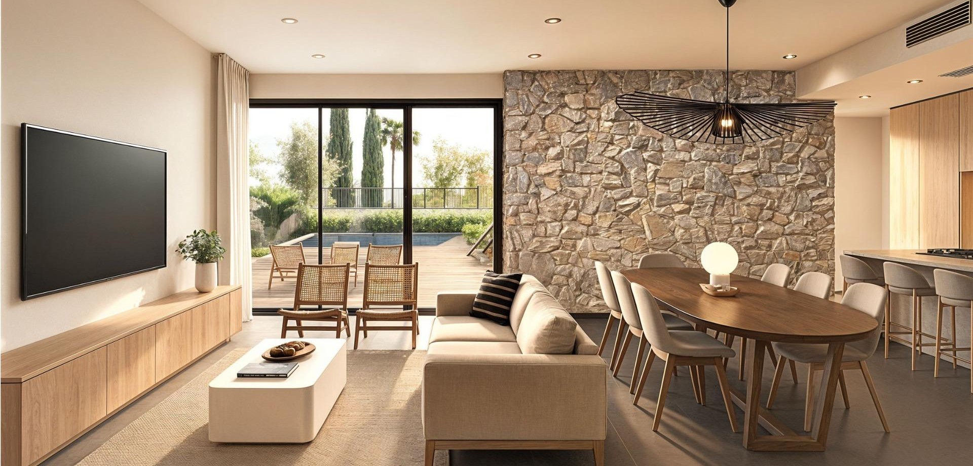 New-Build Villas in Santa Rosalia Lake and Life Resort – Exclusive Living in Murcia Prime Location Near the Mar Menor These newly built villas are located in the prestigious Santa Rosalia Lake and Life Resort, a private gated community in the Region of Murcia. Surrounded by top-class golf courses and just 4 km from the golden beaches of the Mar Menor, the development offers a perfect combination of privacy, nature, and luxury living. The lively coastal town of Los Alcázares is only a 5-minute drive away, while the historic city of Cartagena is 15 minutes away. Murcia International Airport can be reached in approximately 22 km, ensuring easy access from major European cities. Contemporary Villas Designed for Comfort Each villa features a modern, open-plan design with 3 bedrooms, 2 bathrooms, and a guest toilet. The bright and spacious living area integrates a fully equipped kitchen with a dining and lounge space, leading out to a landscaped private garden with a swimming pool. A private off-road parking space is also included. On the lower level, a finished basement of 136 m² with smooth walls, water, and electricity connections provides a versatile space for additional bedrooms, an office, gym, cinema room, or children’s play area. High-Quality Finishes and Sustainable Features Attention to detail is evident in every aspect of these homes. Highlights include a reinforced security door, motorized shutters in the bedrooms, built-in wardrobes, and a kitchen furnished with appliances. Sustainable living is ensured by six installed photovoltaic solar panels. The garden is fully finished with artificial grass, palm tree, automatic irrigation, and decorative shrubs. An efficient ducted air conditioning system ensures year-round comfort. Santa Rosalia Lake and Life Resort – A Caribbean-Style Oasis The resort boasts 126,000 m² of beautifully landscaped green areas with walking and cycling paths, sports facilities, paddle and tennis courts, mini-golf, dog parks, leisure spaces, and a clubhouse. The centerpiece is a spectacular 17,000 m² crystal-clear lagoon with white sandy beaches and palm trees, creating a true Caribbean atmosphere. Two islands feature leisure areas, including a bar and charming beach clubs scattered around the lake. Ideal for Relaxation, Sports, and Investment This unique development is perfect for those seeking a primary residence, a holiday home, or a high-return investment. Its strategic location provides easy access to cultural, gastronomic, and recreational attractions, making it an exceptional choice for families and golf enthusiasts alike. Contact us today to secure your new villa in Santa Rosalia Lake and Life Resort and start enjoying the Mediterranean lifestyle.