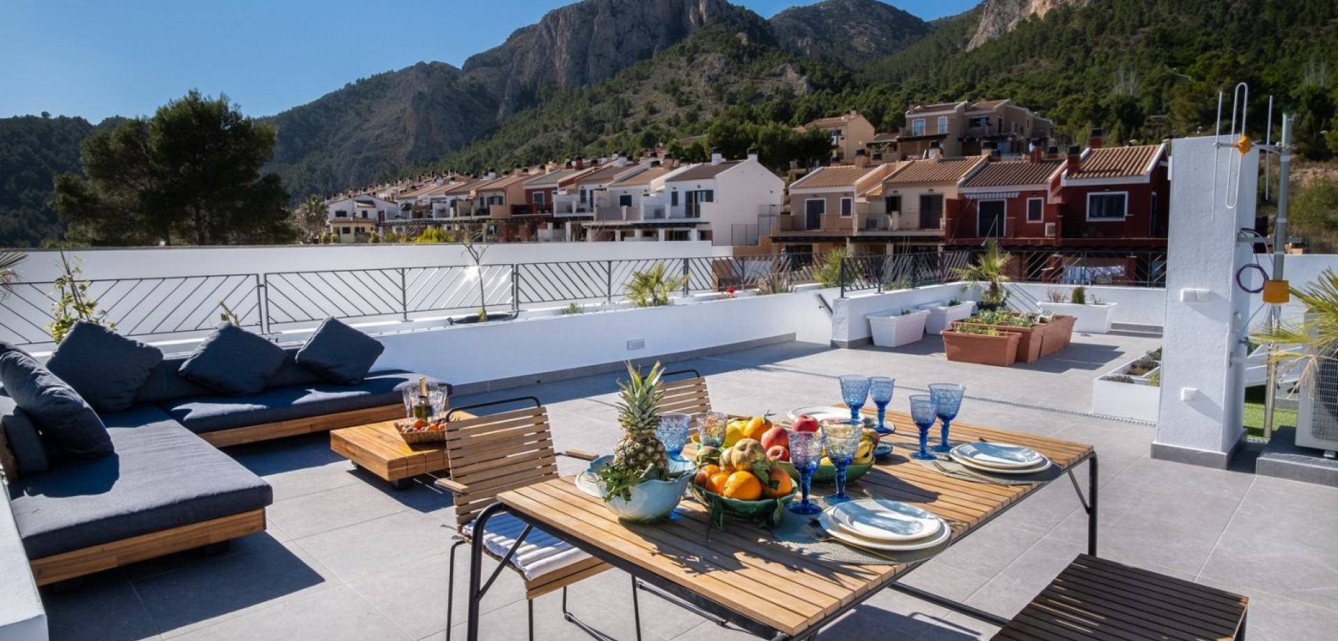 Brand new independent villas with sea views at Polop (Alicante province) Located 10km away from Benidorm beaches and night life and romantic Altea village. This residential benefits from wonderful sea views, comunal pool and social area and houses can be personalized with some extras like private pool, private solarium, underground garage, etc. Different models to choose from depending on your needs and budget, with 2 or 3 bedrooms. Residential has been designed with most of the houses in one level so we avoid stairs inside the houses and make them more comfortable to live in.