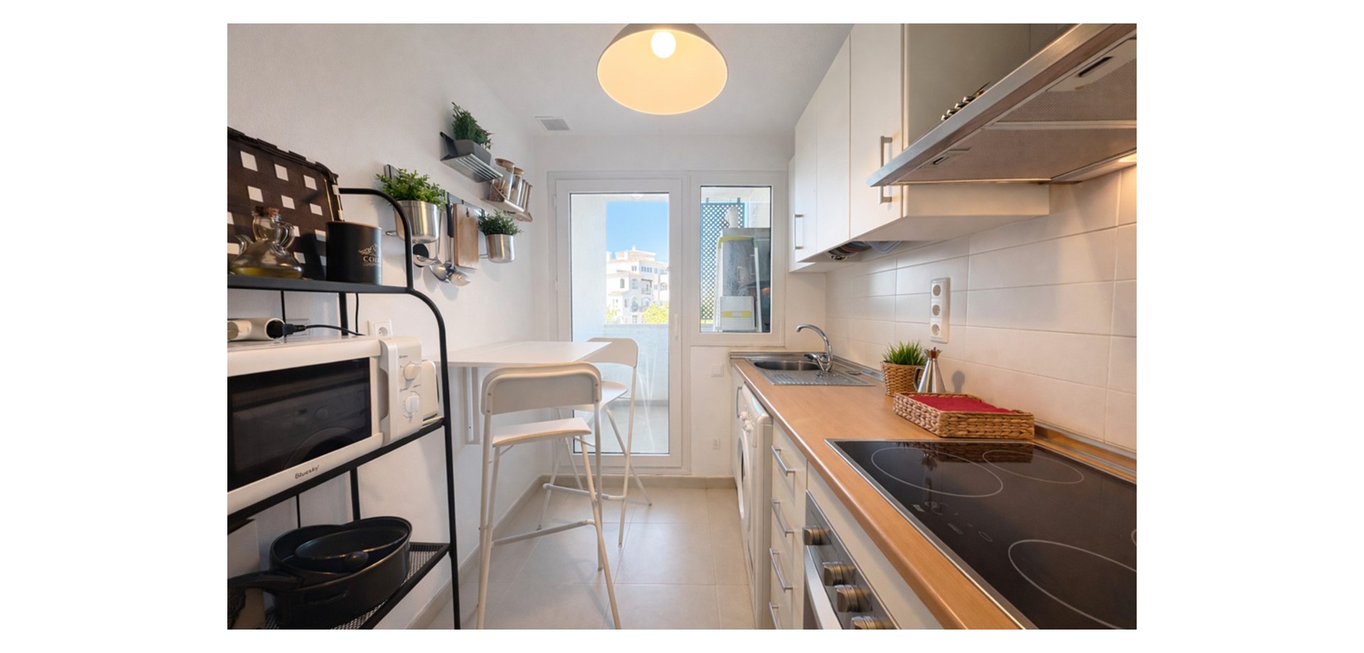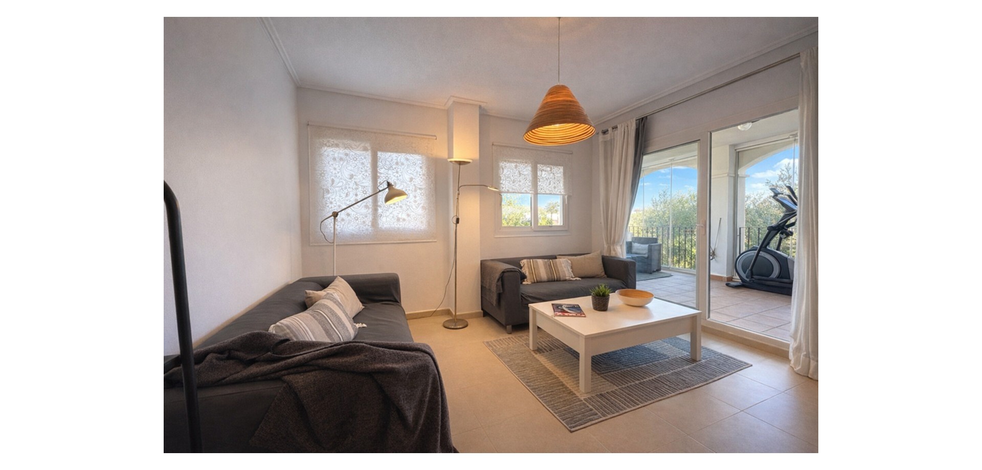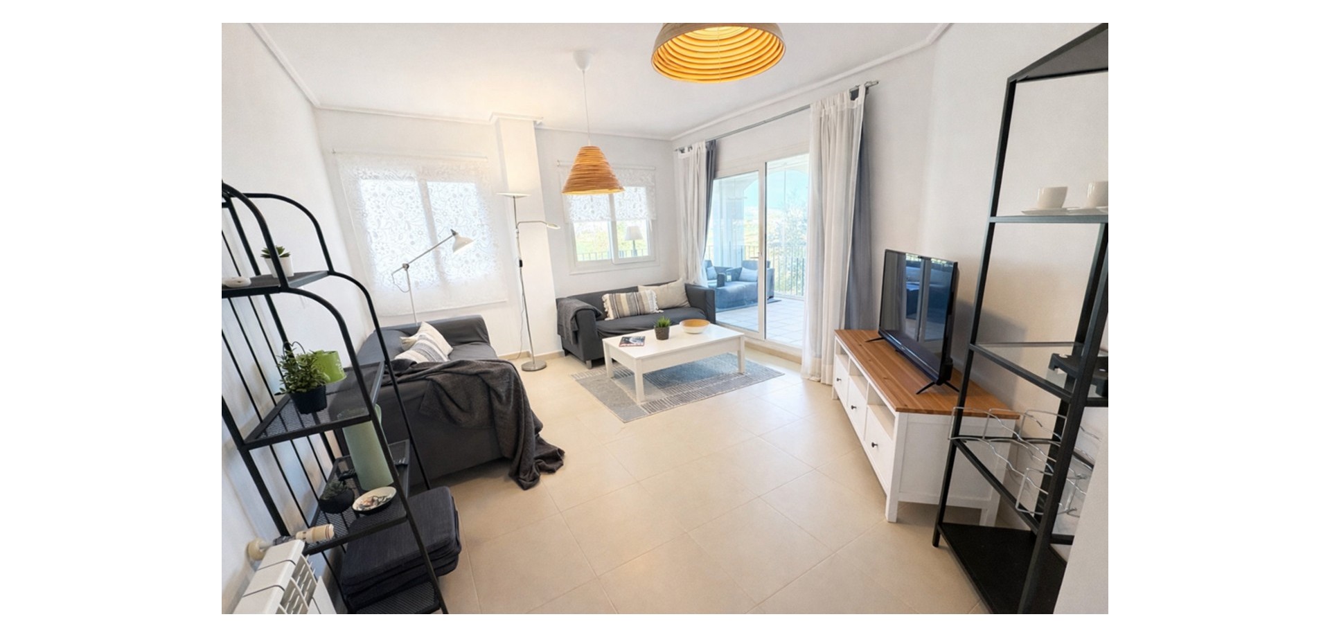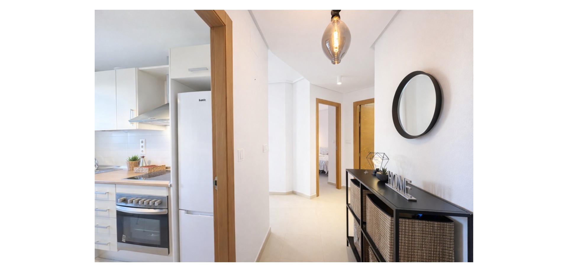 From the moment you enter, the apartment feels bright and welcoming. It offers a fully fitted kitchen with a utility room, a spacious living-dining area, two double bedrooms, and a family bathroom.