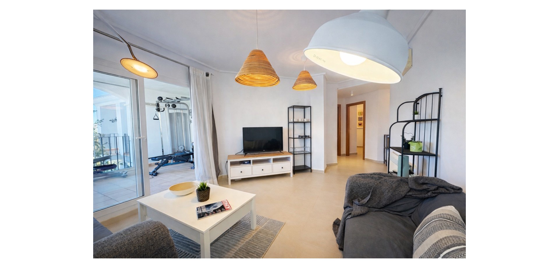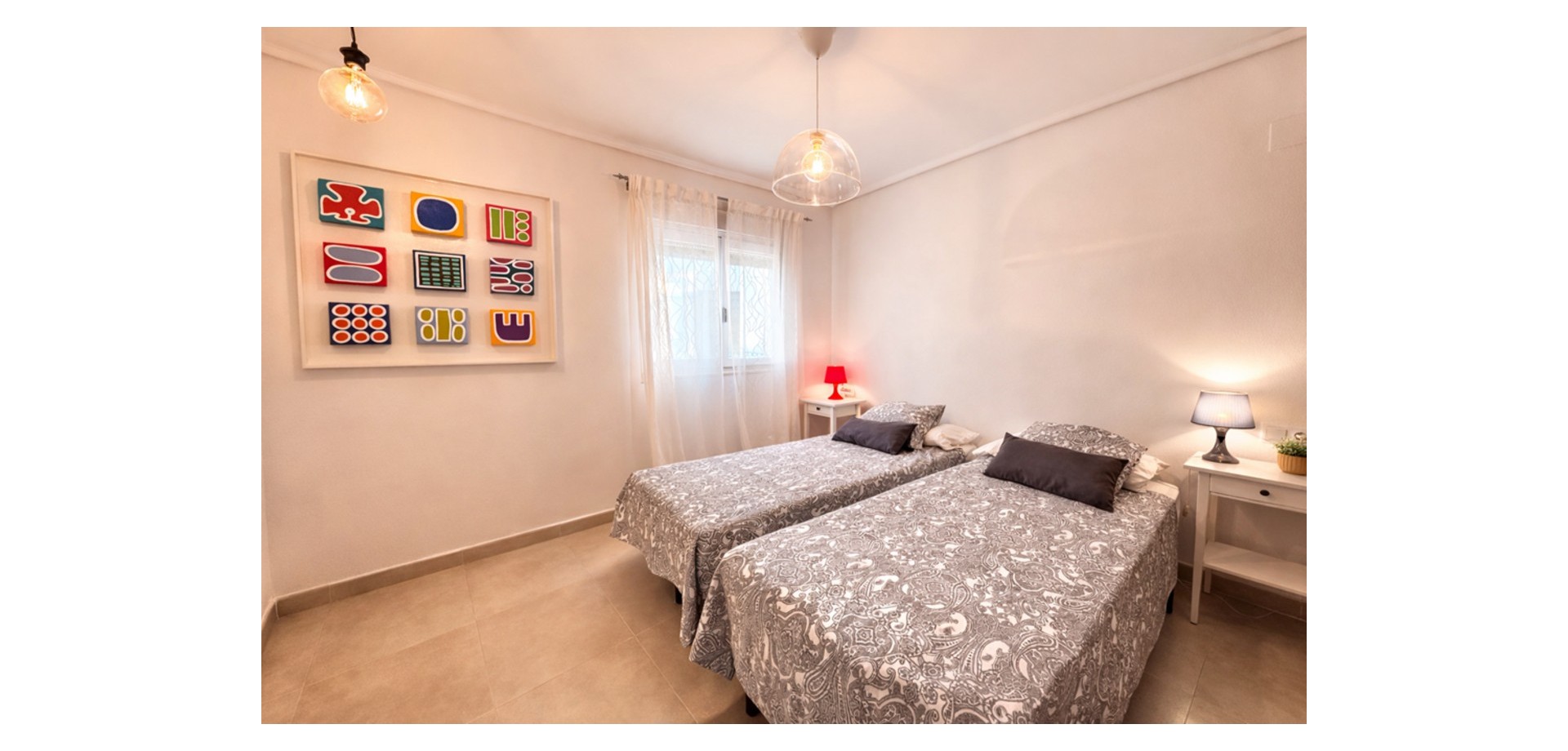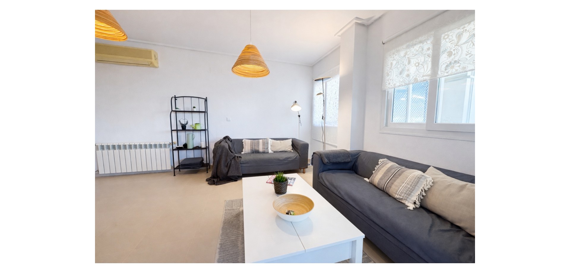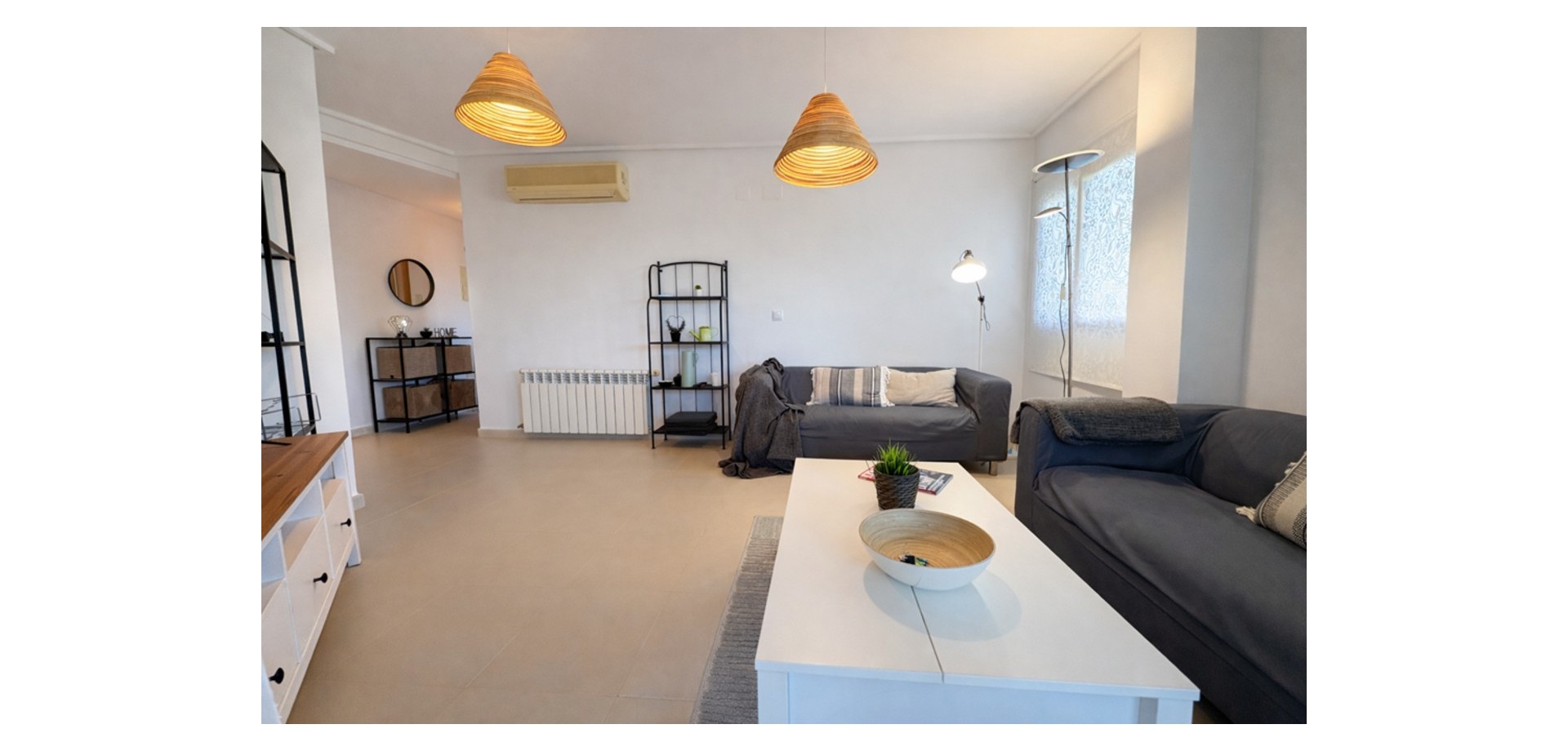 From the moment you enter, the apartment feels bright and welcoming. It offers a fully fitted kitchen with a utility room, a spacious living-dining area, two double bedrooms, and a family bathroom.
