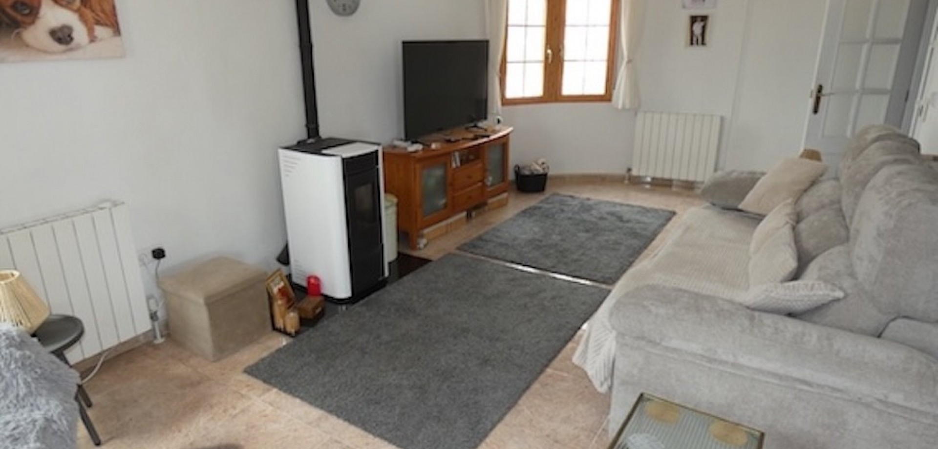 p Entering into the villa, via the front terrace, you are greeted with a hallway. Turning right into the living area, which has air-conditioning, ceiling fans and also a pellet burner. From the living area, there is access to the side terrace. The kitchen has a good useable space, benefitting from a serving hatch and is fully operational. Through the hallway, there is a family bathroom, with a new shower, two bedrooms and the master bedroom with an en-suite bathroom, again, which has been renovated with a walk-in shower. All of the rooms have gas radiators, which were installed by the current owners. The villa flows nicely, allowing access to the garden from two separate area´s. /p